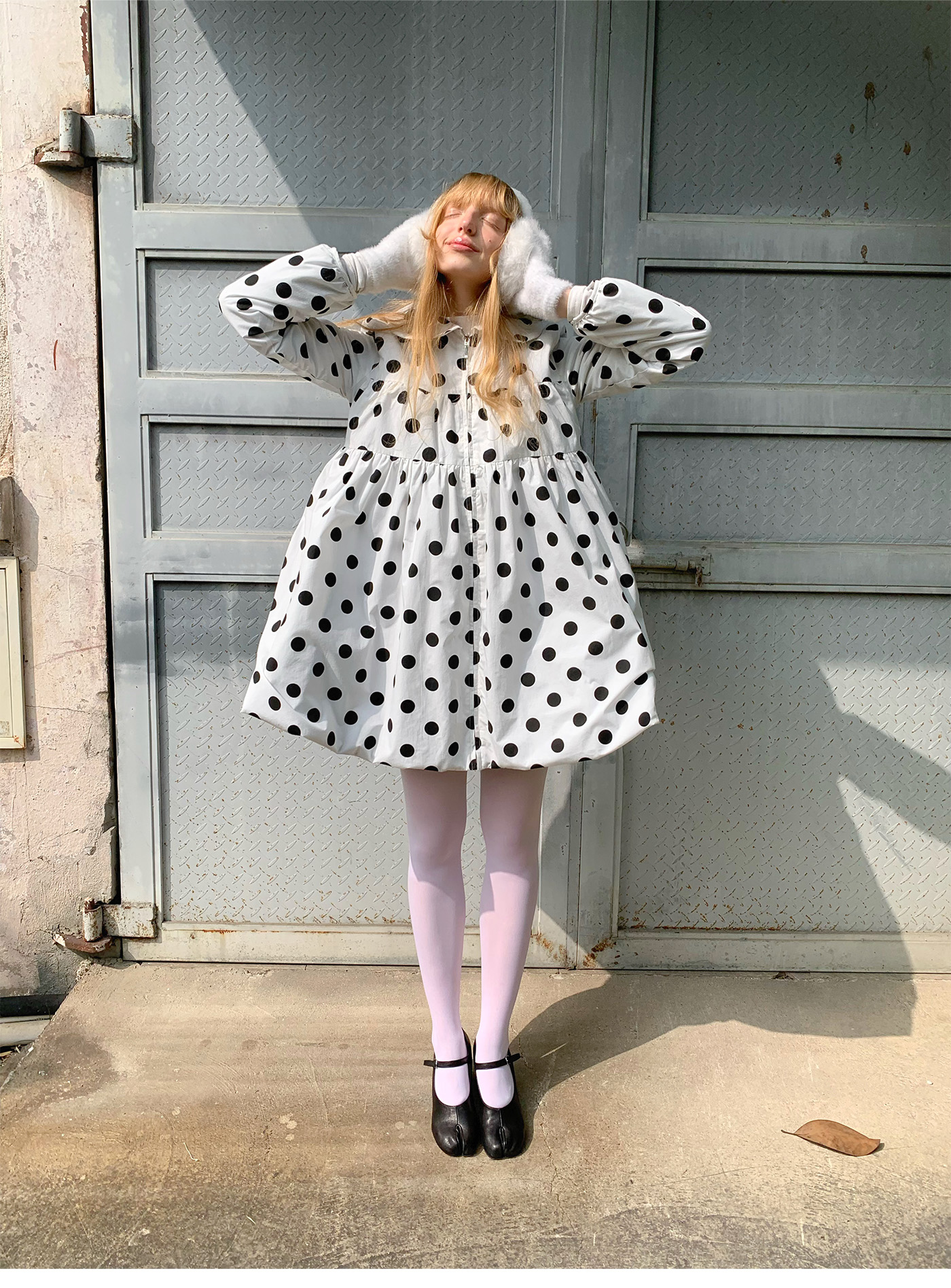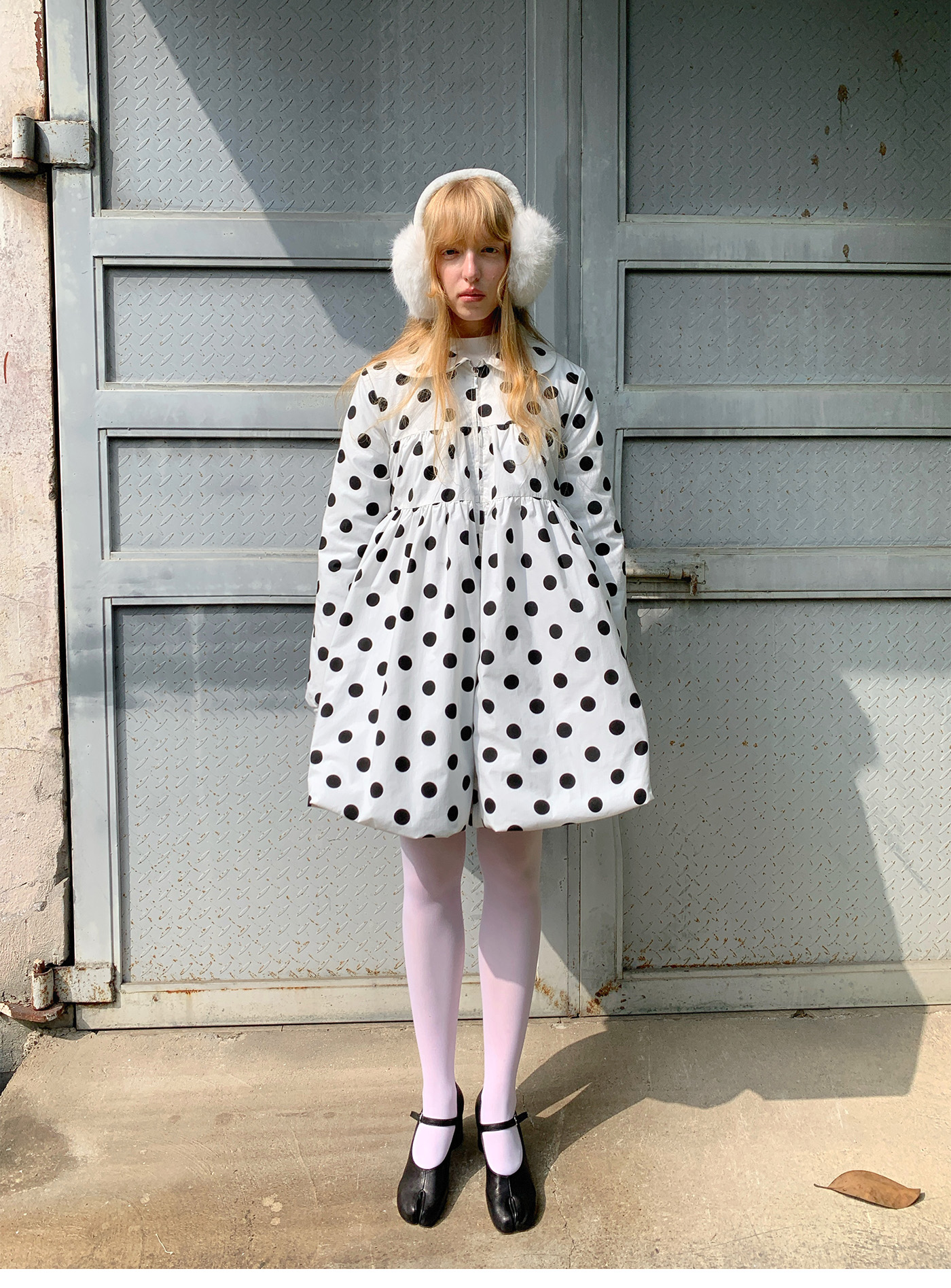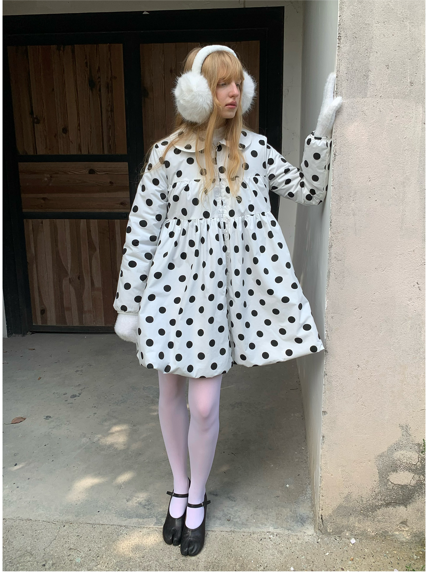 SOO black and white polka dot cute doll collar fluffy dress coat