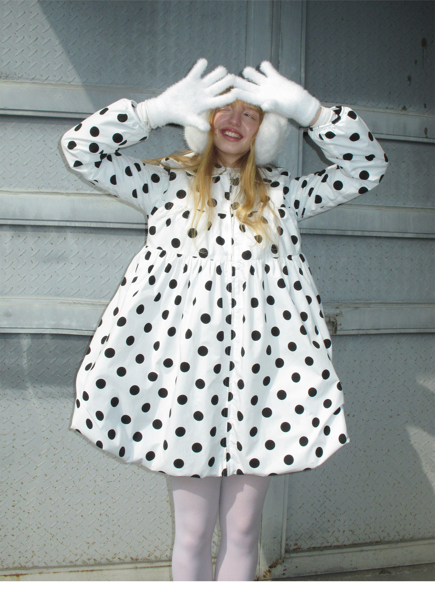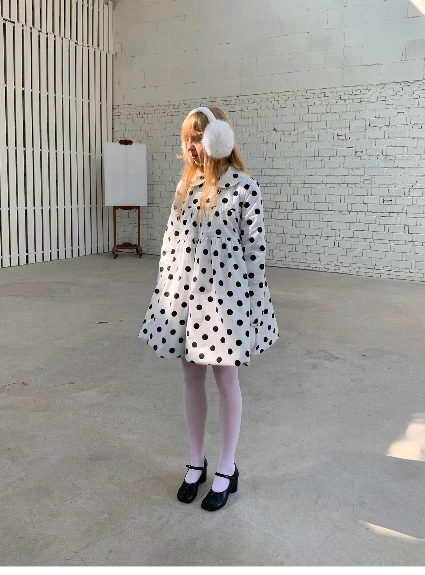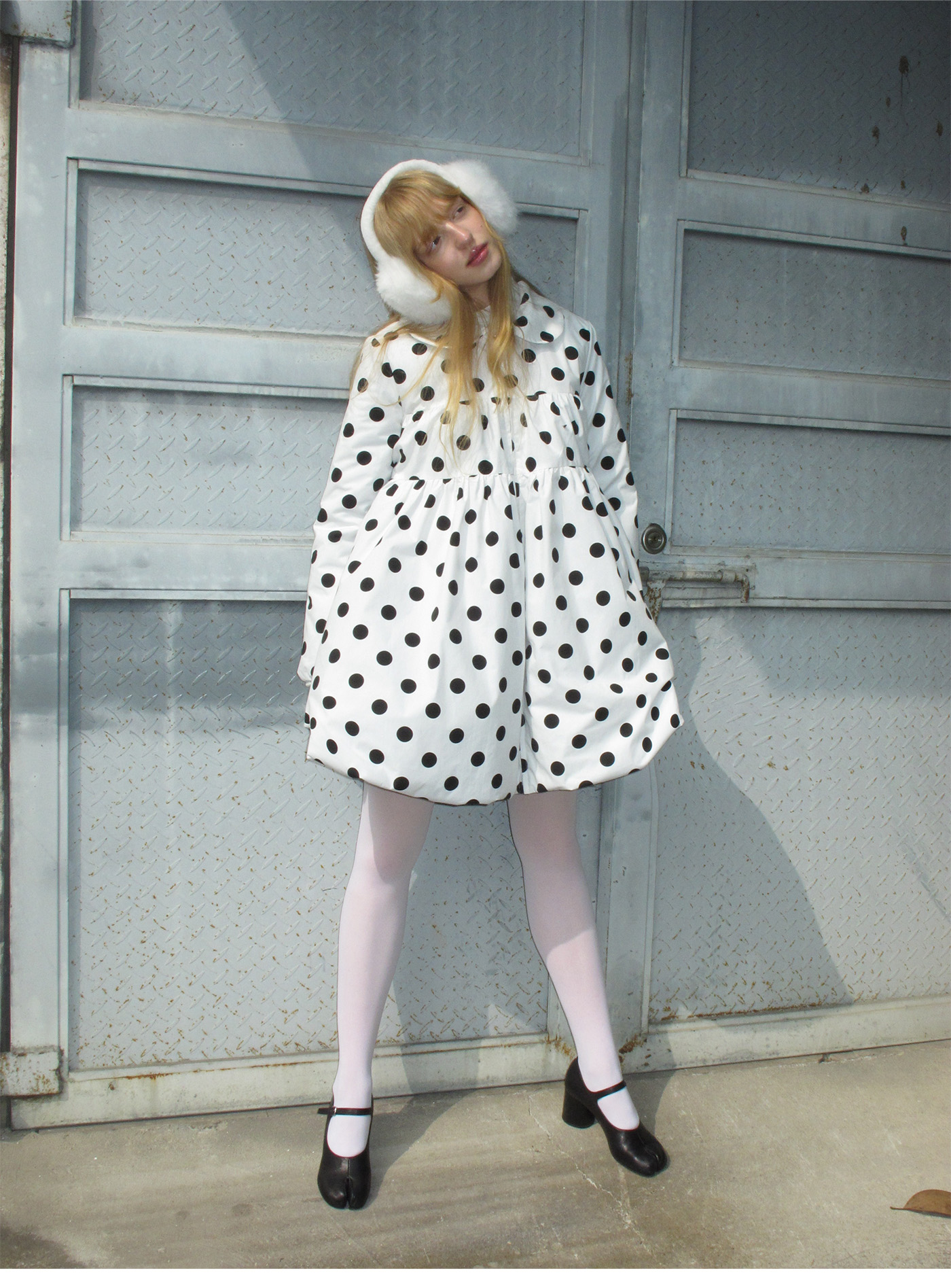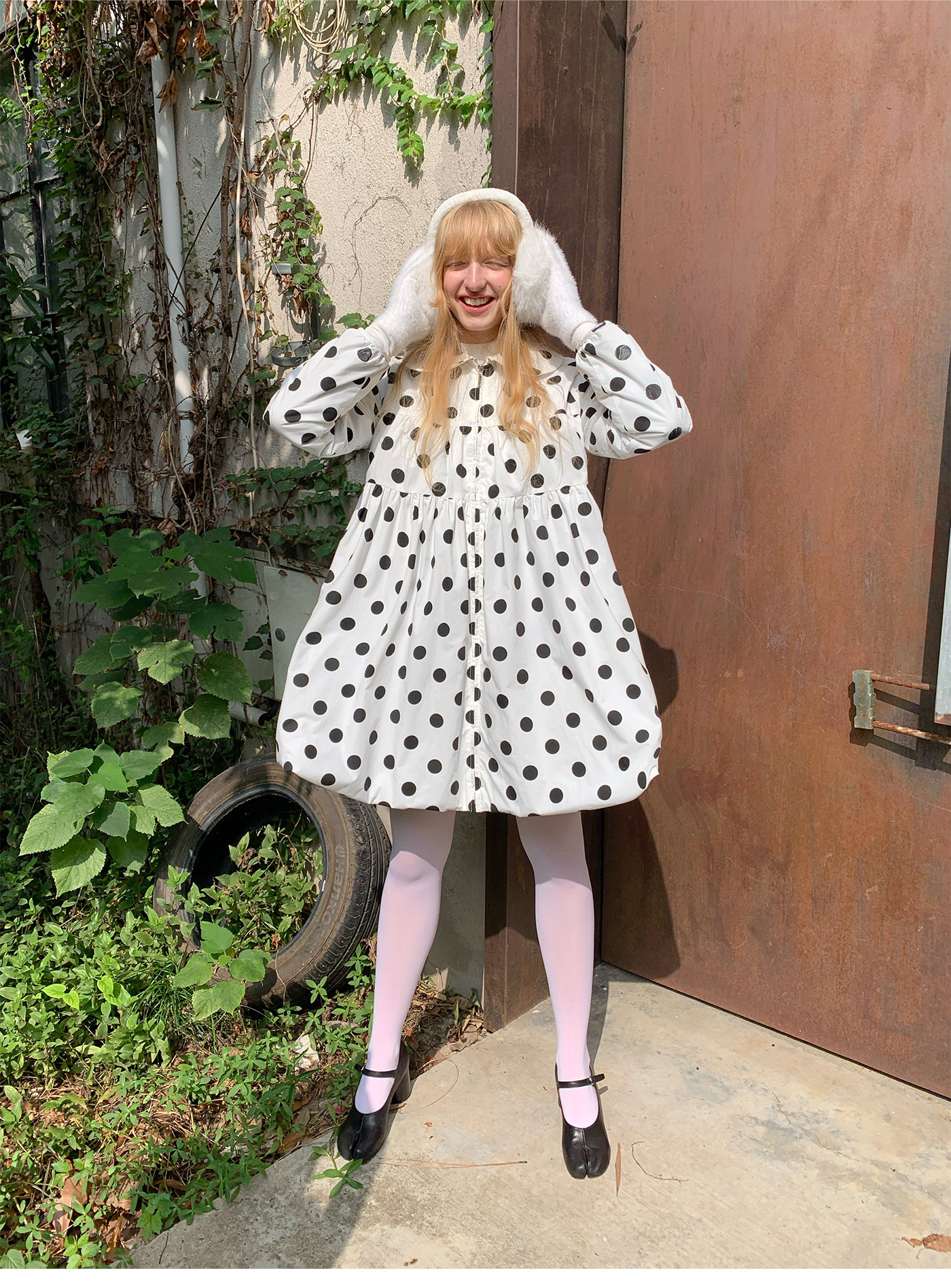 SOO black and white polka dot cute doll collar fluffy dress coat