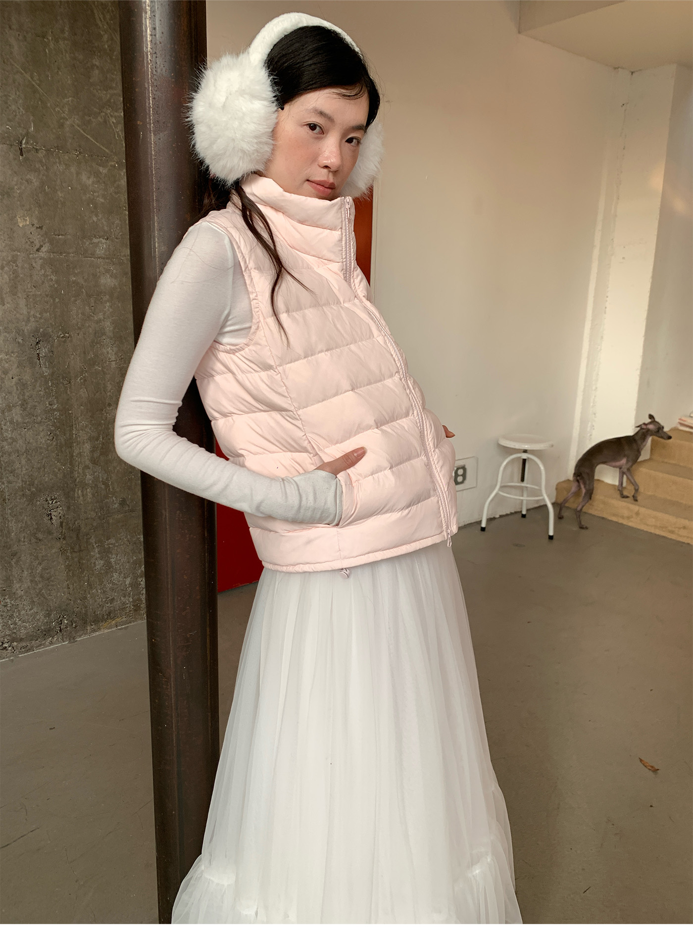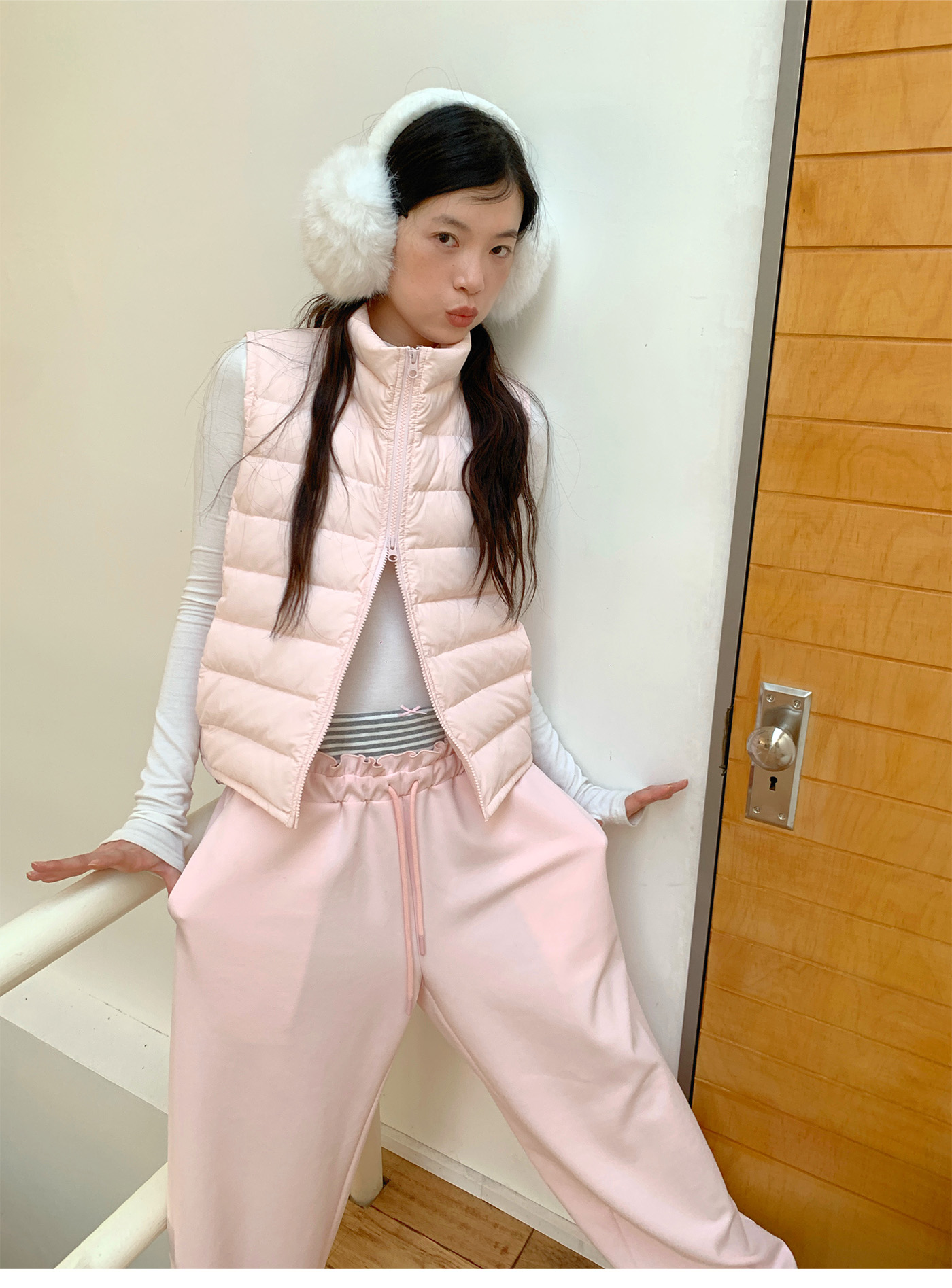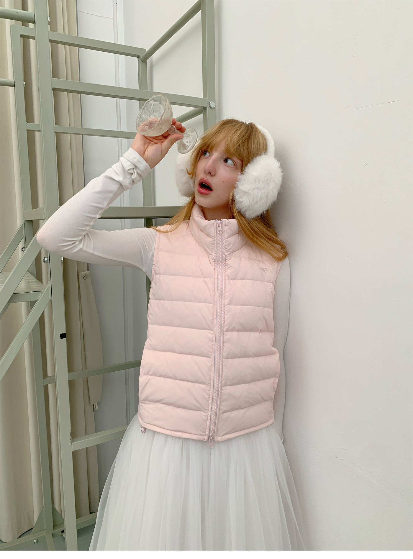 SOO Cute Zipper White Duck Down Pink Vest Jacket