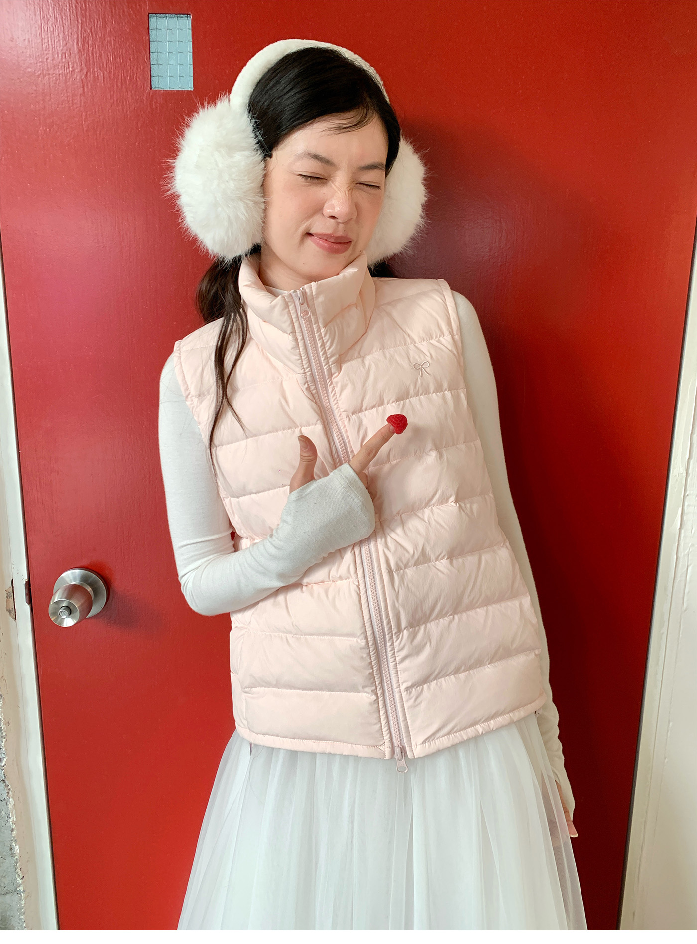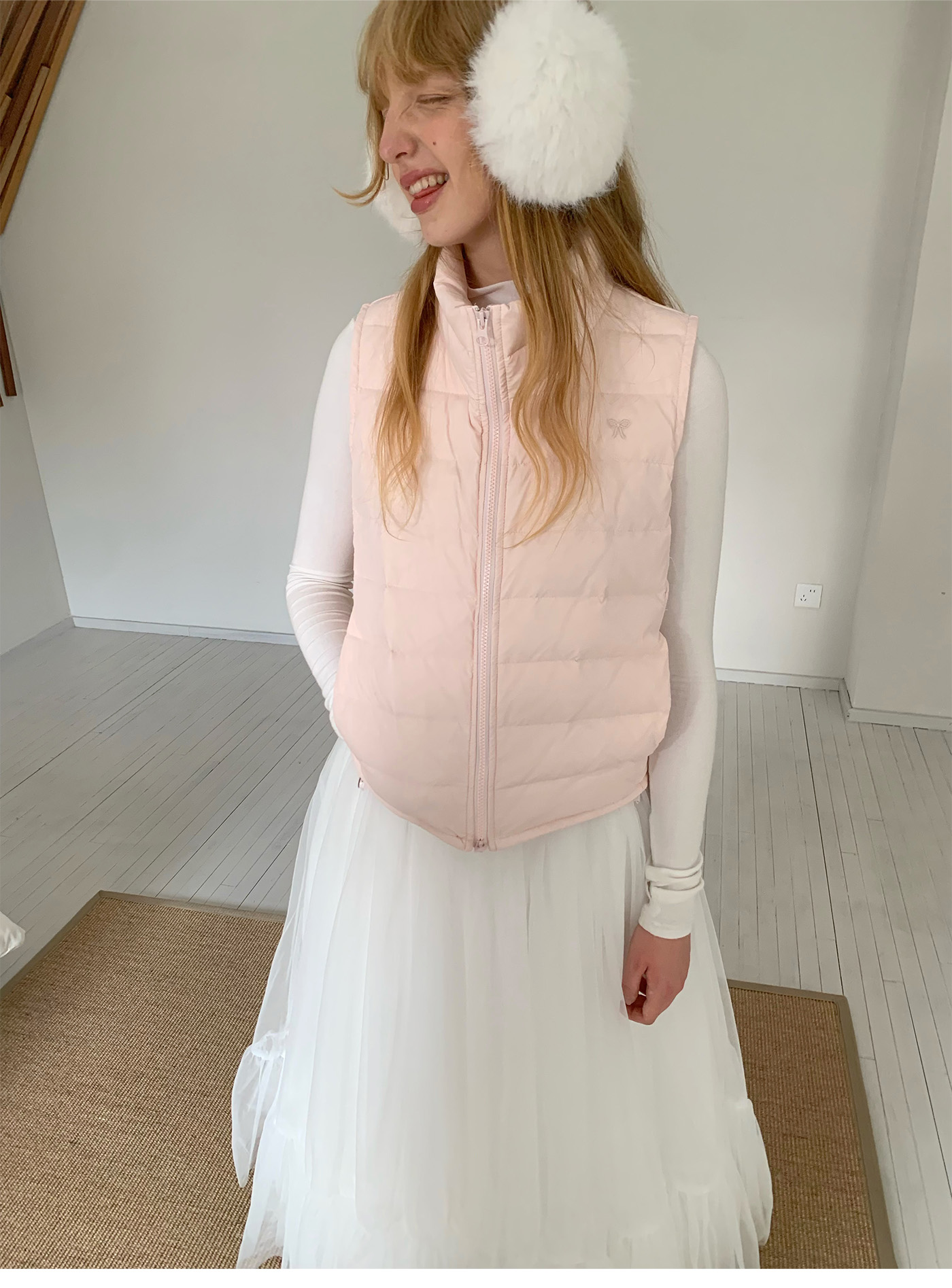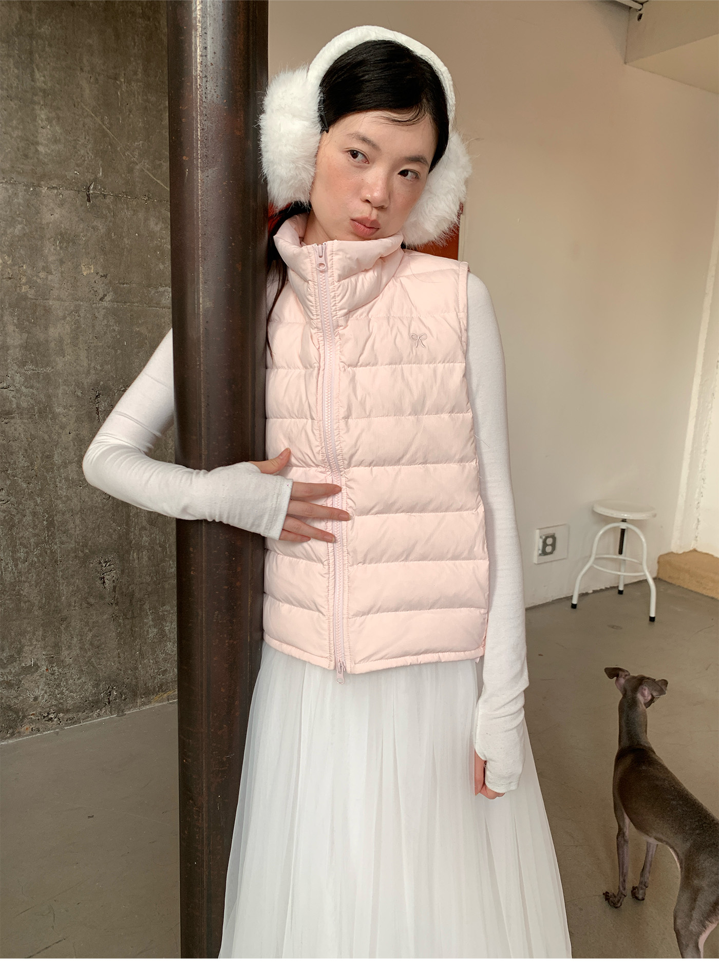 SOO Cute Zipper White Duck Down Pink Vest Jacket
