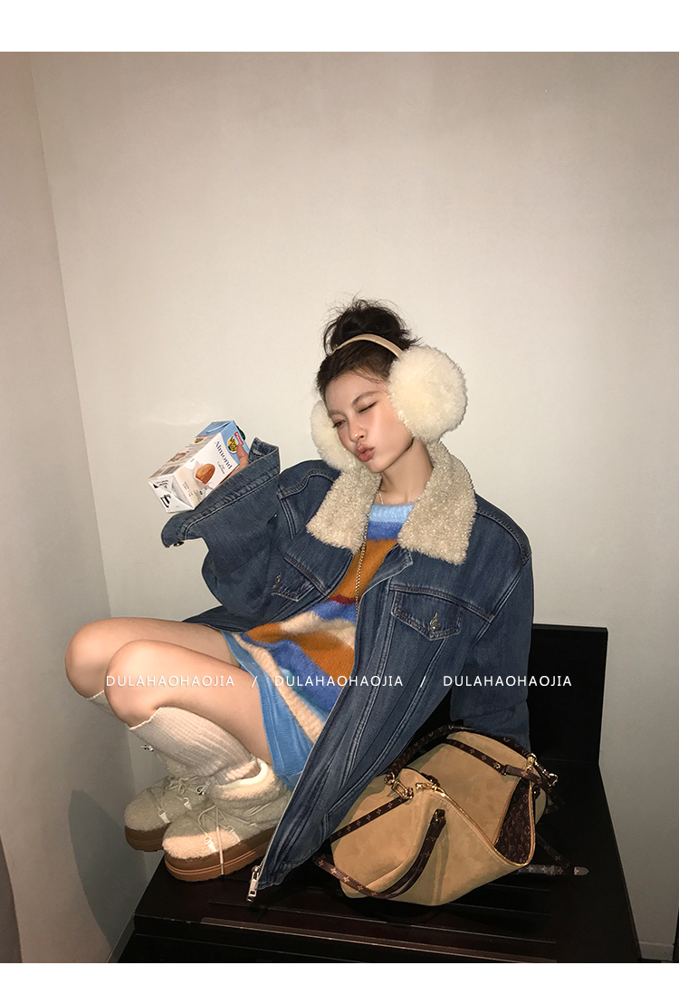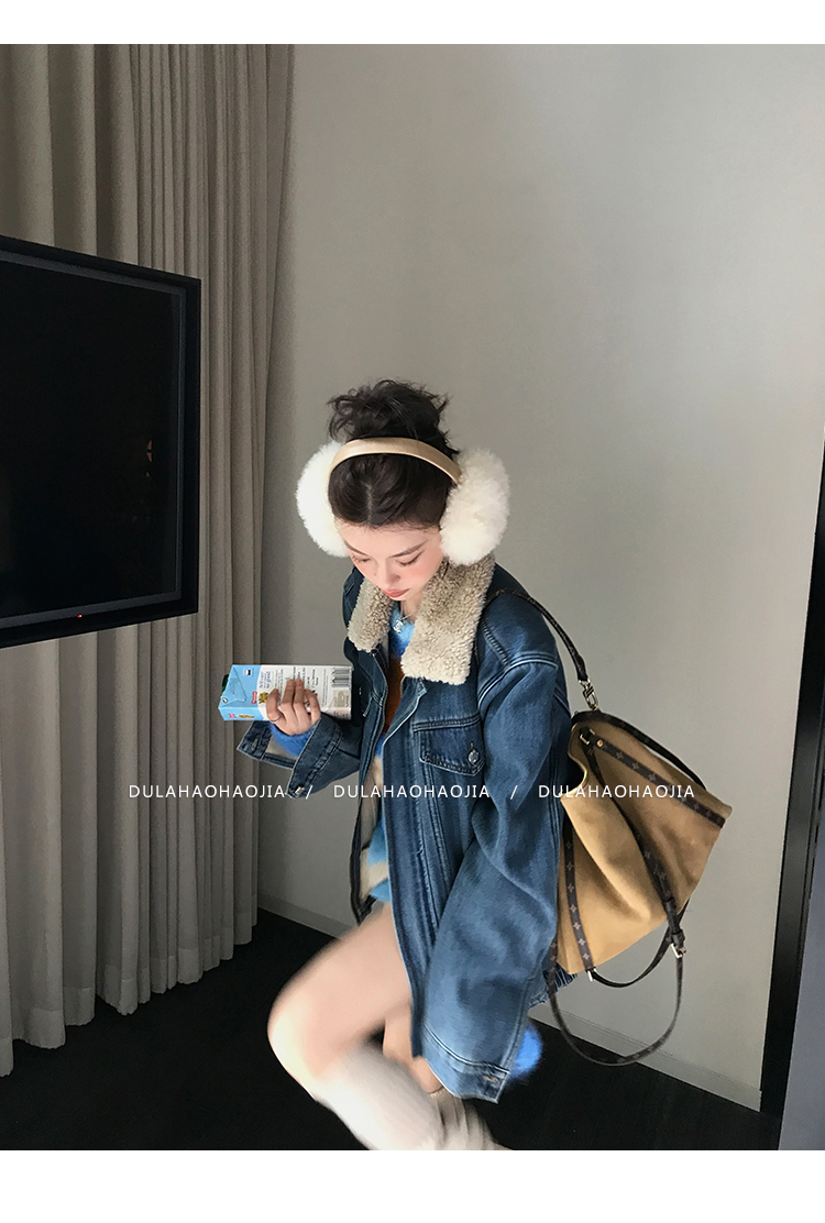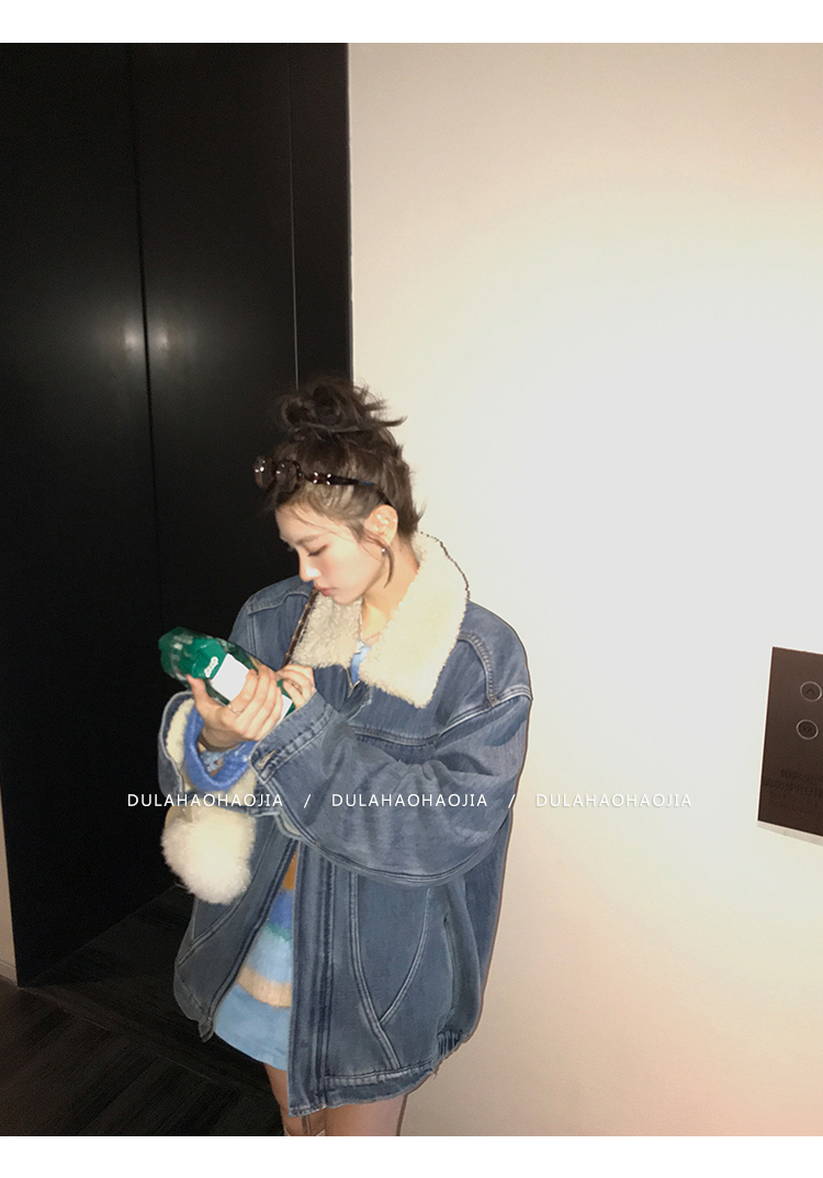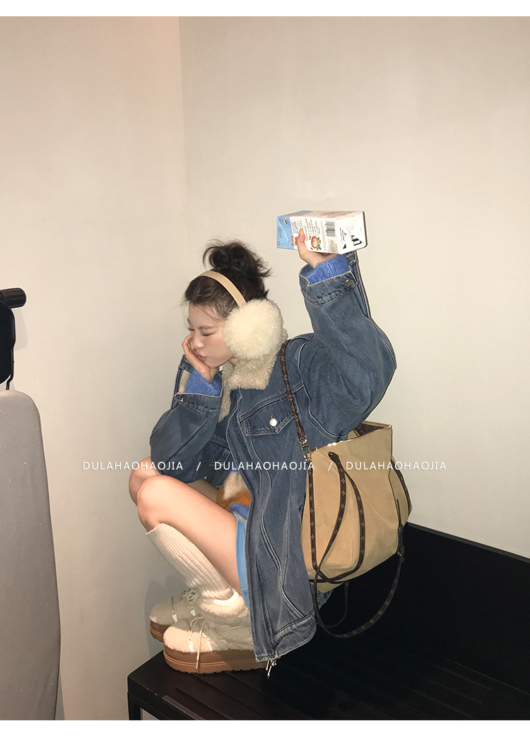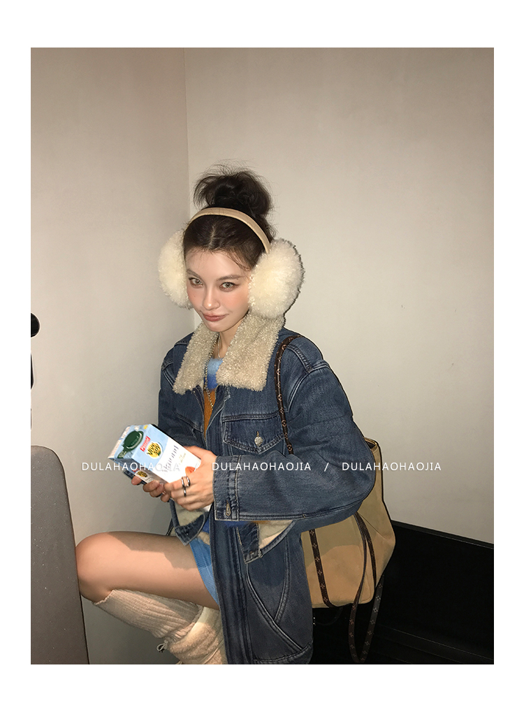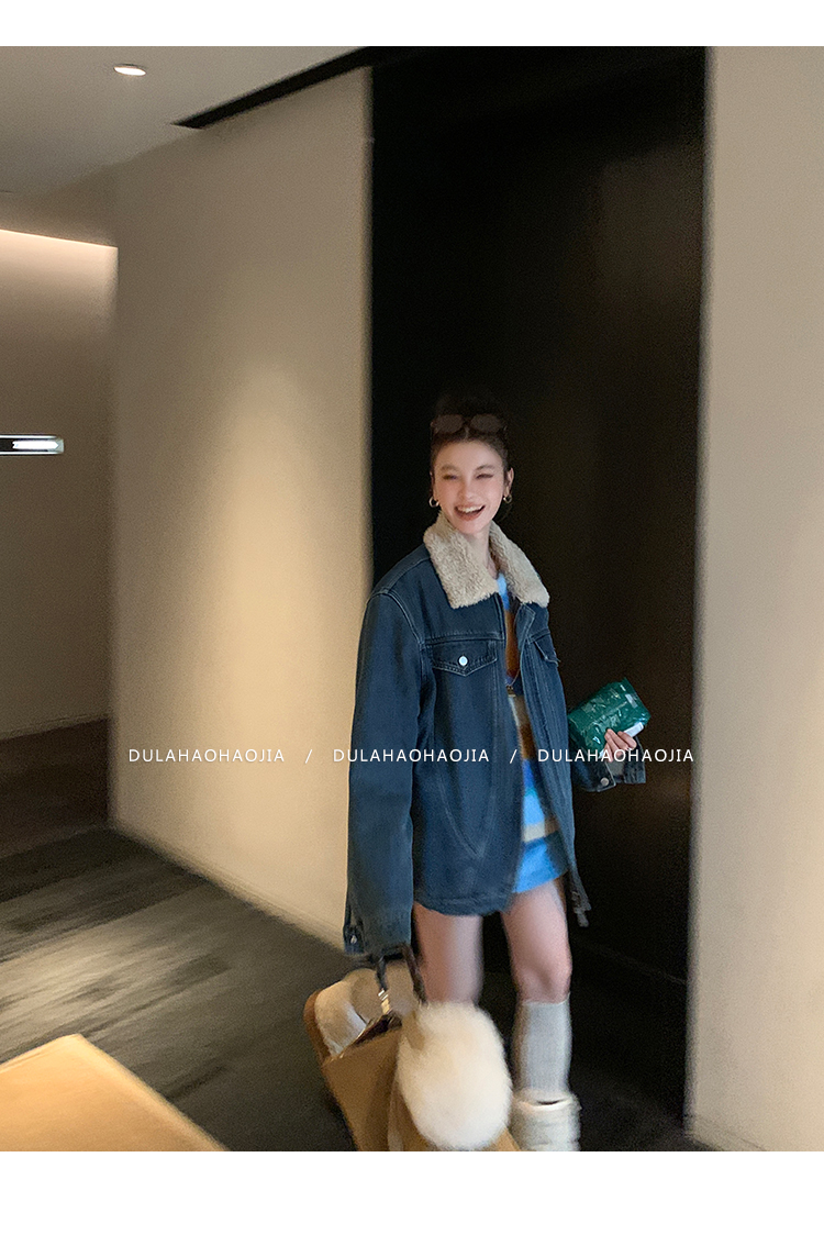 DULA Fur Collar Fleece Denim Jacket