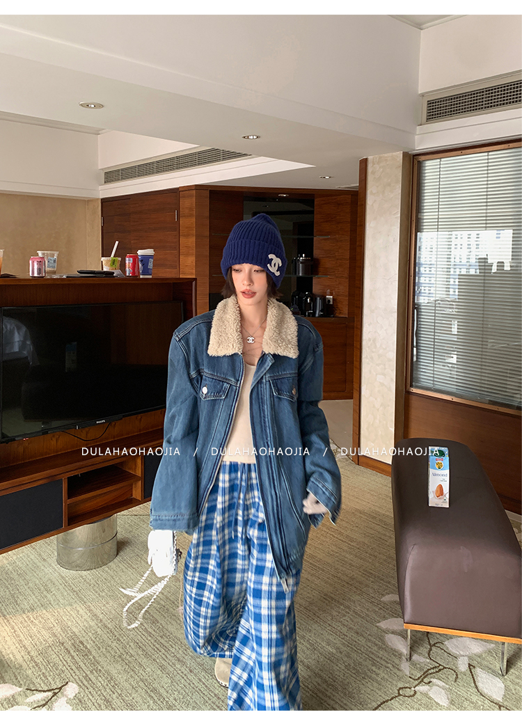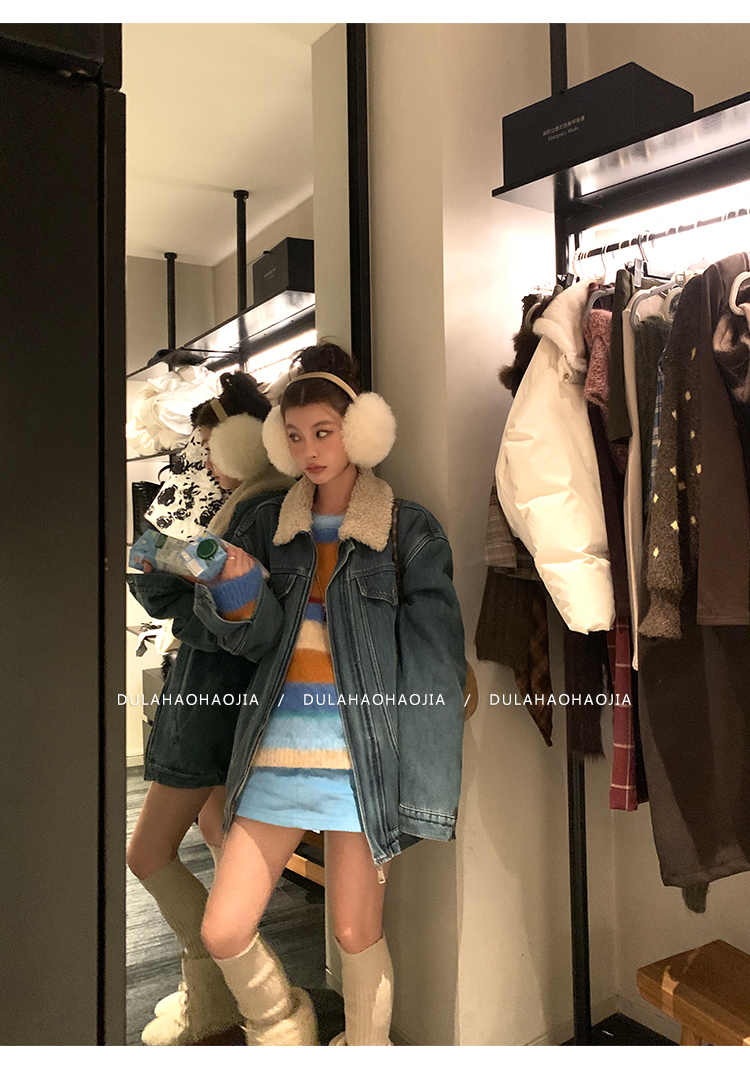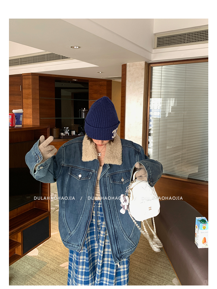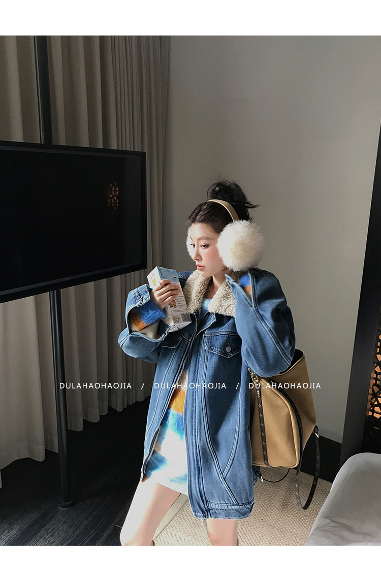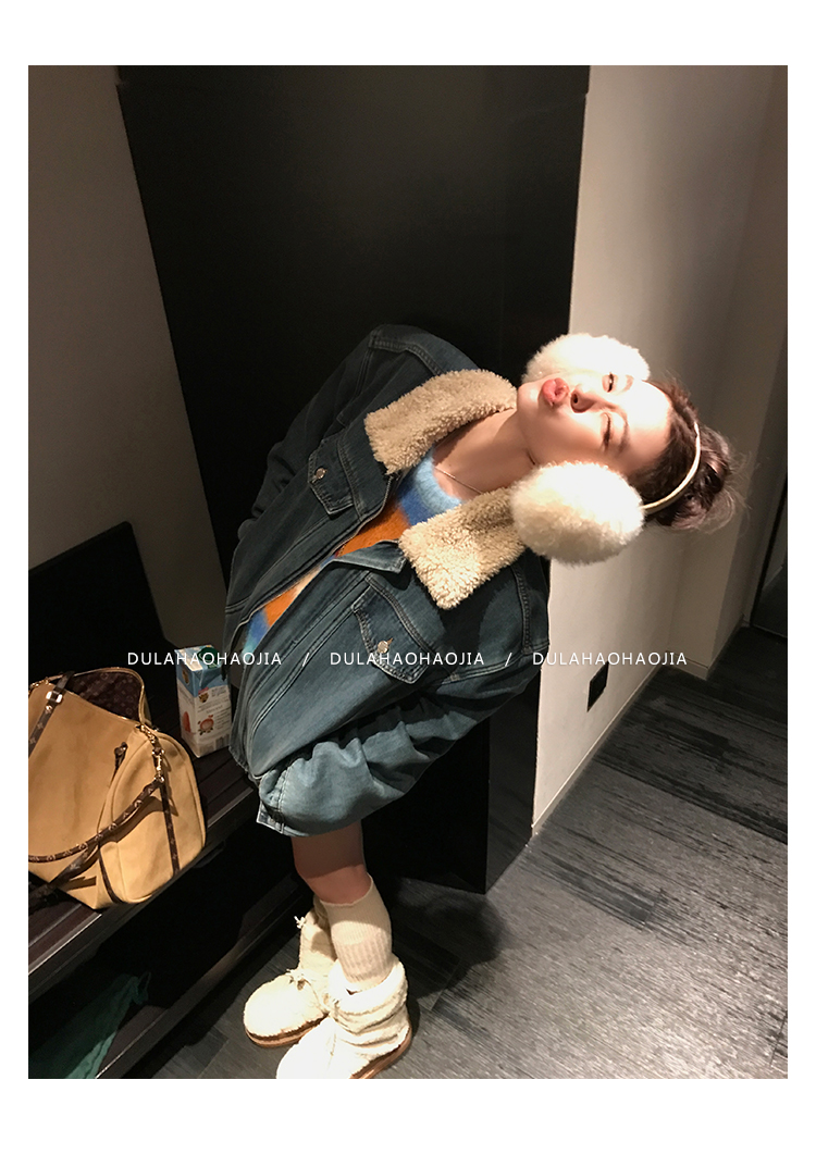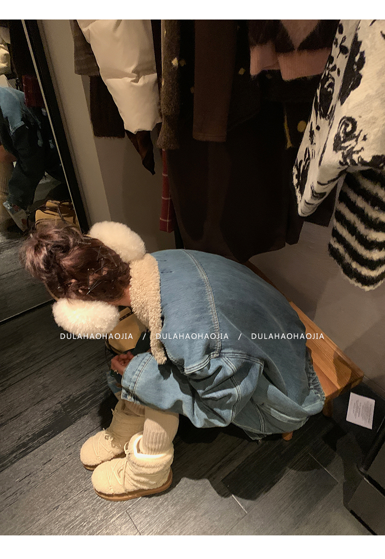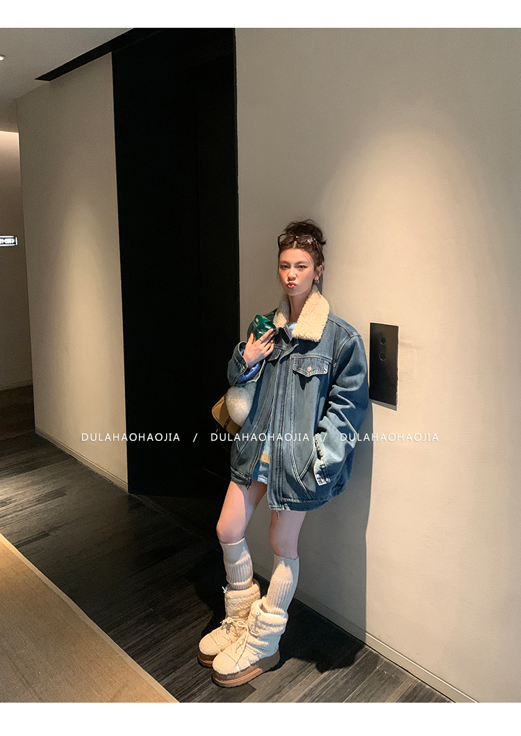 DULA Fur Collar Fleece Denim Jacket
