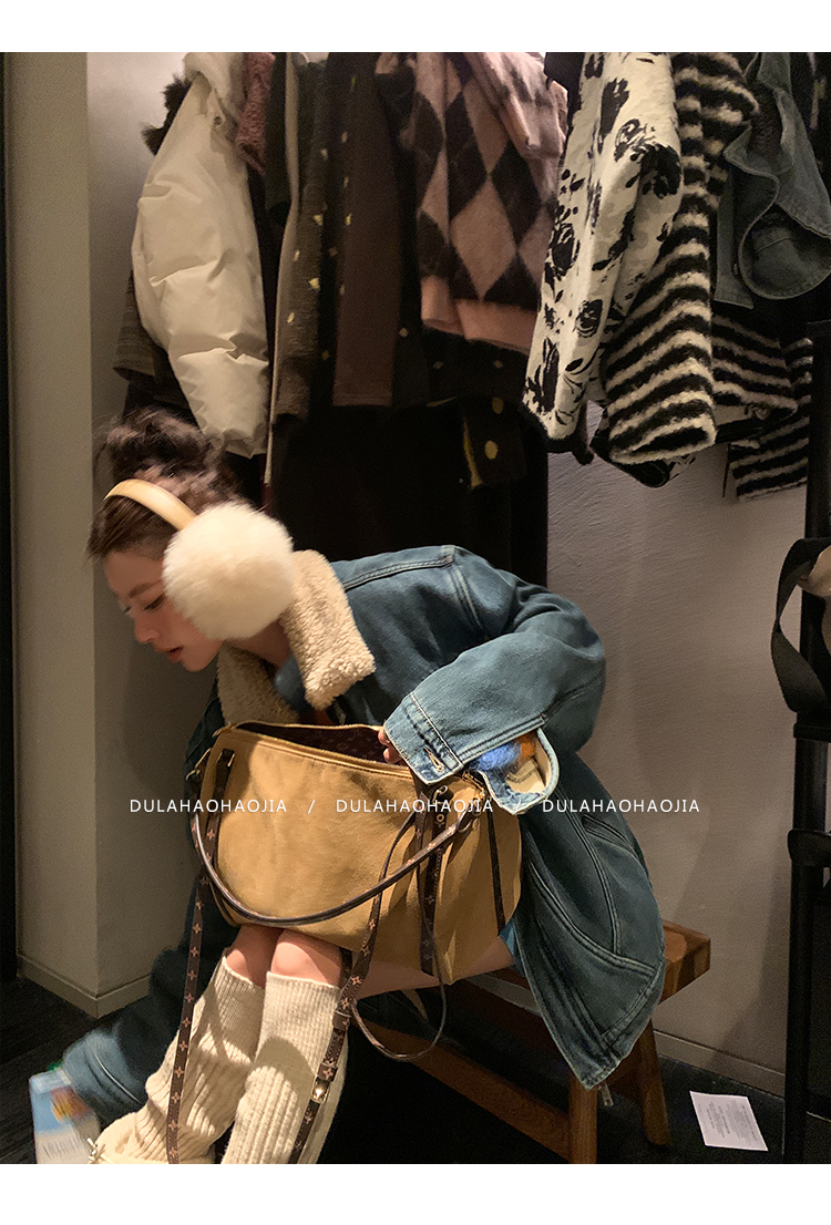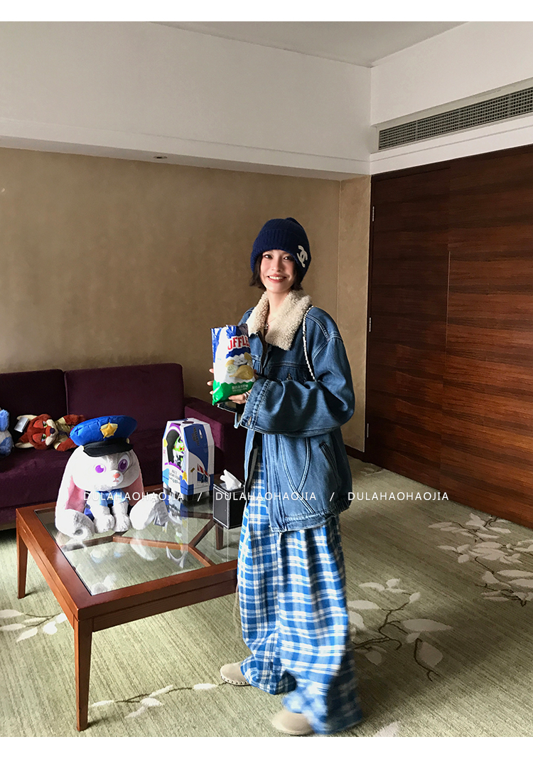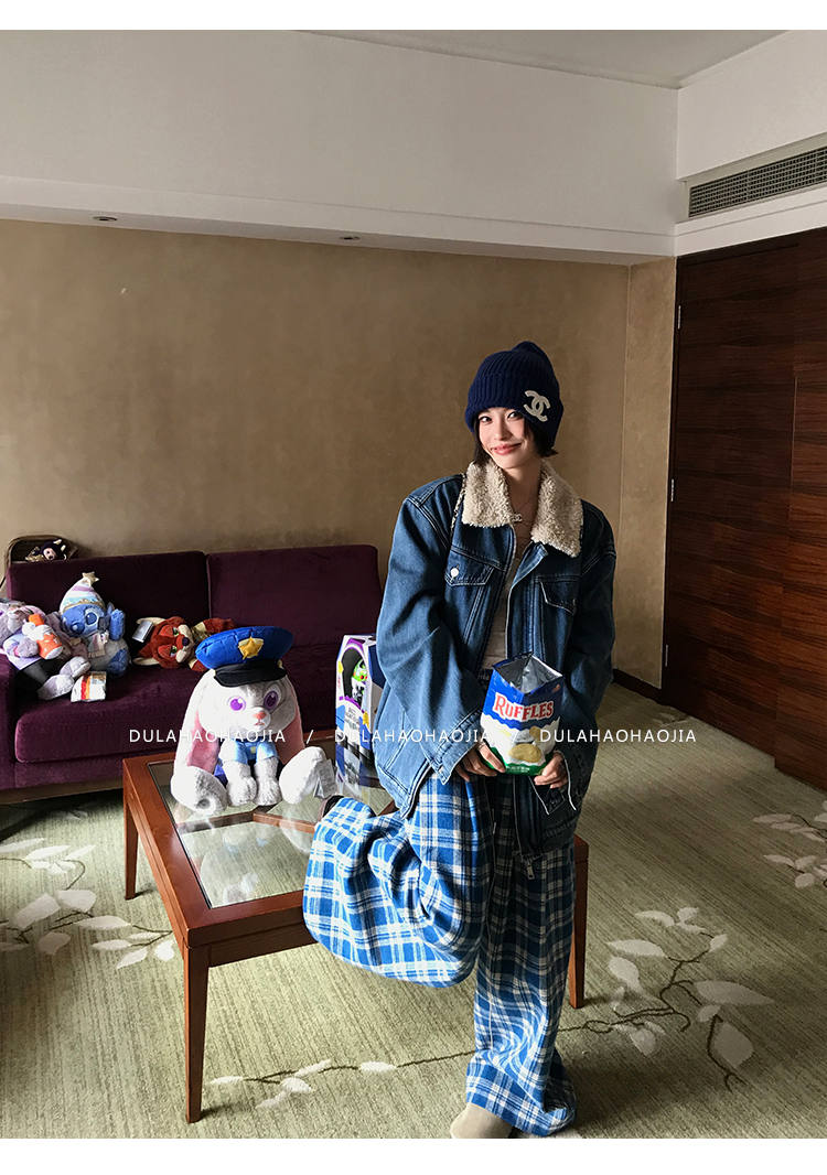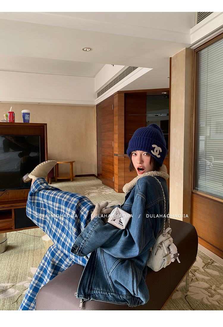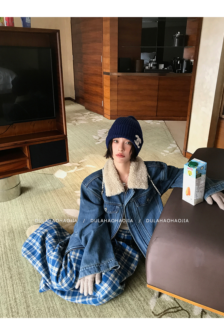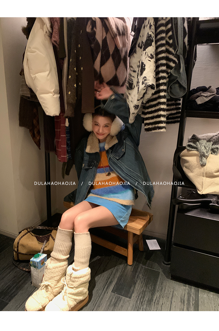 DULA Fur Collar Fleece Denim Jacket