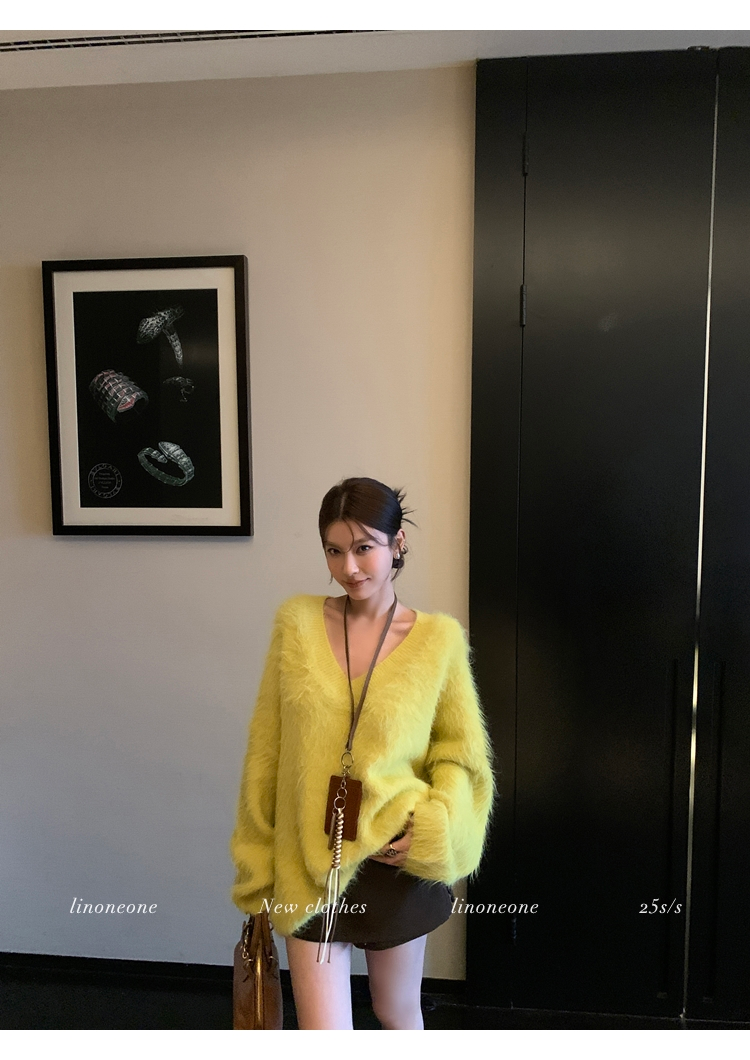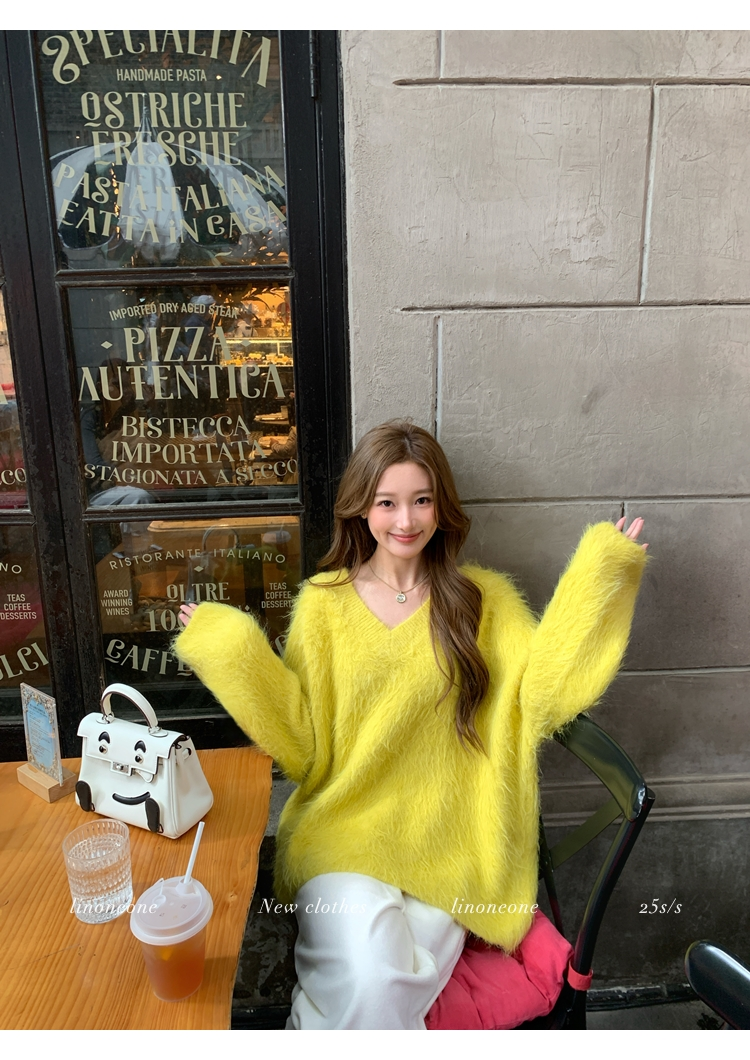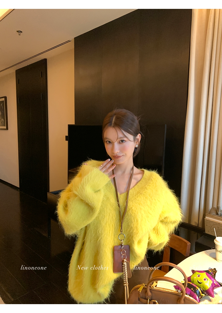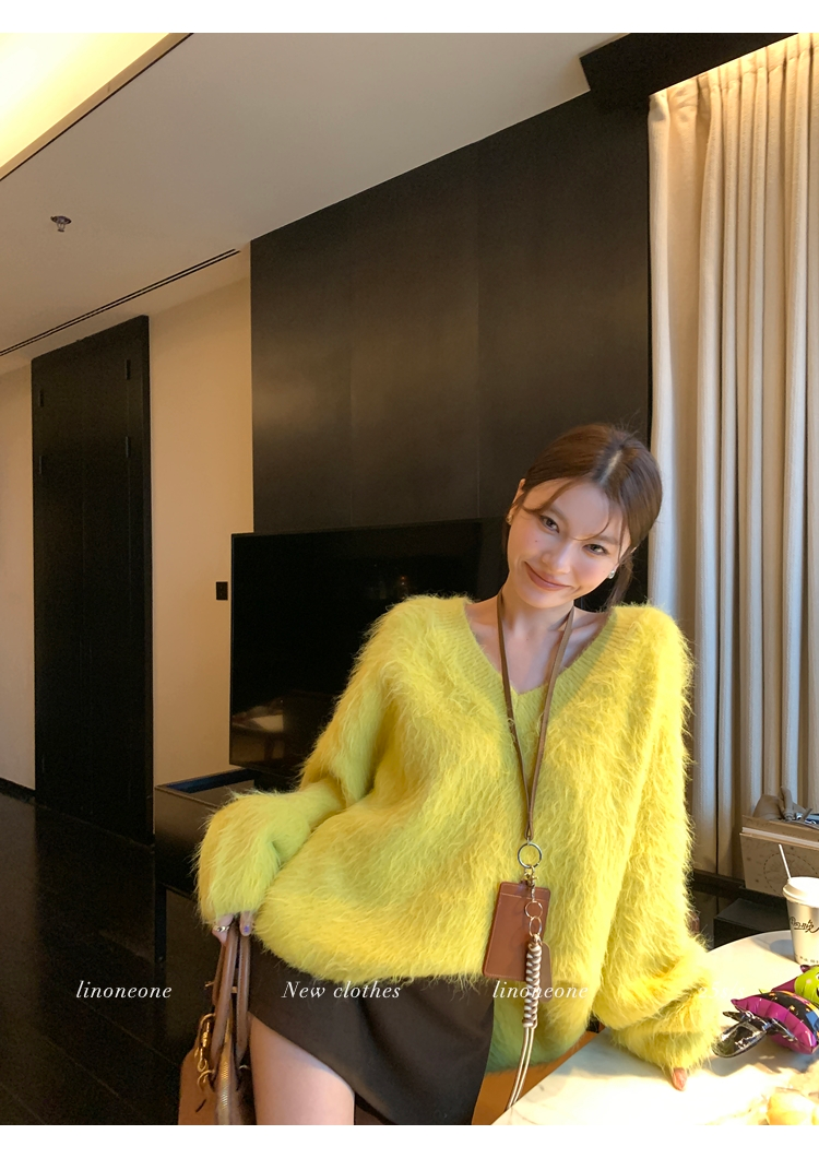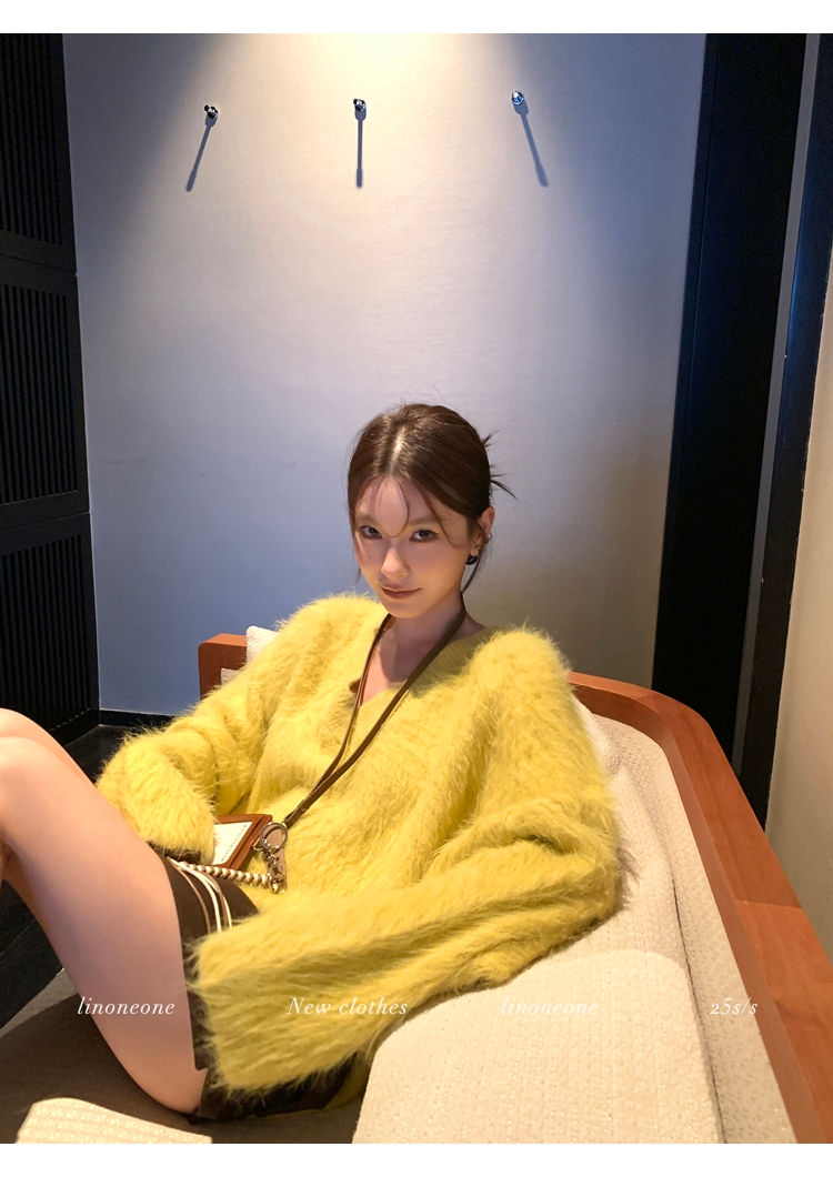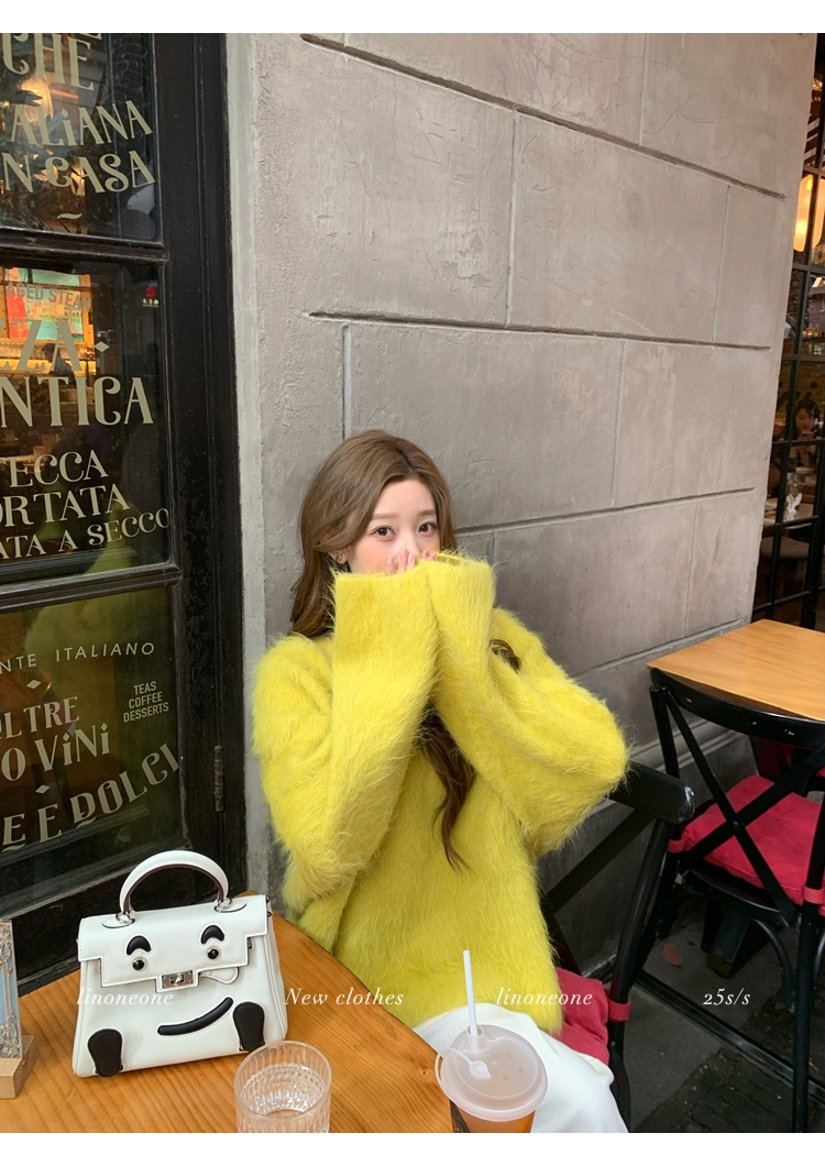 LIN Sunlight Fleece Mink Lazy Wind Knit SweaterNEW