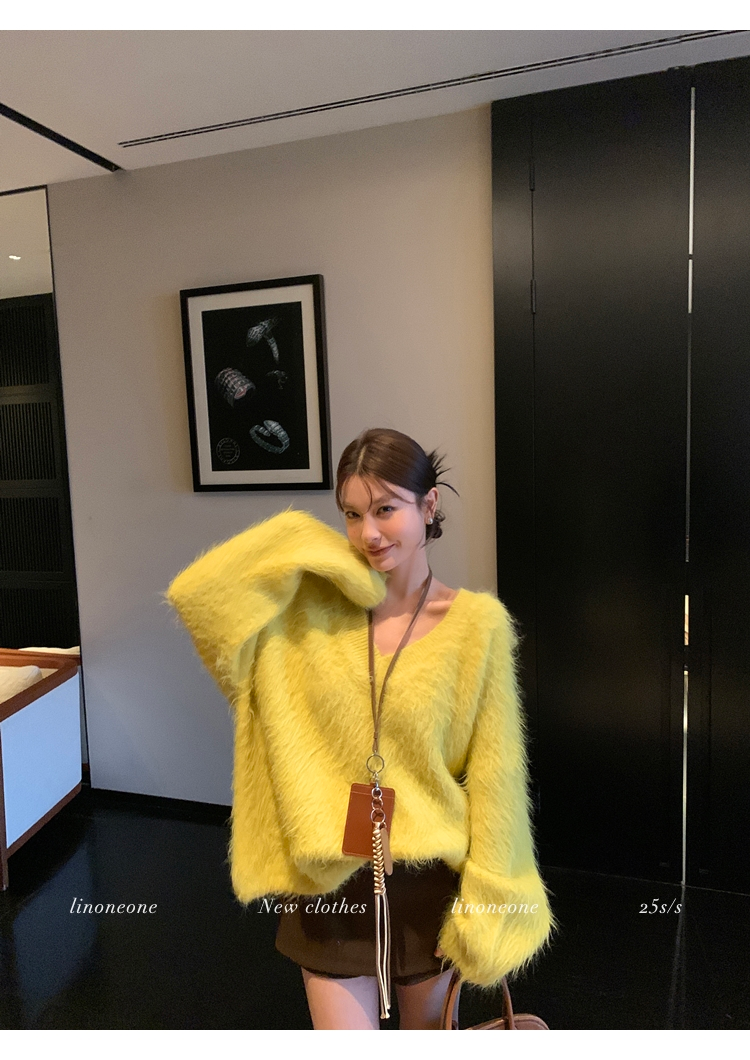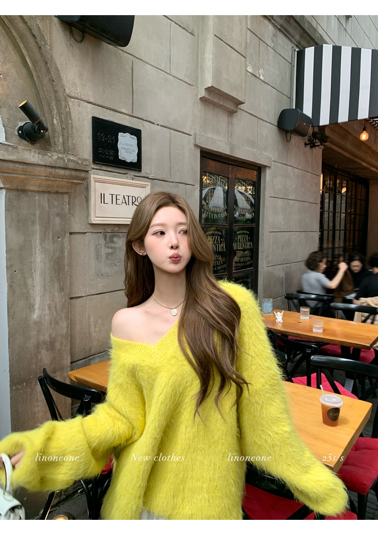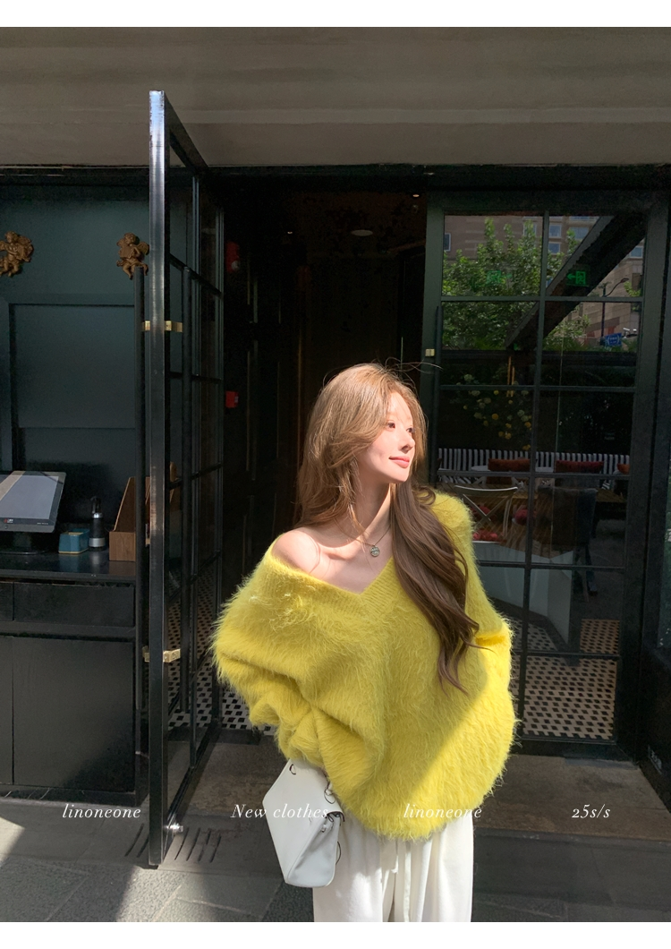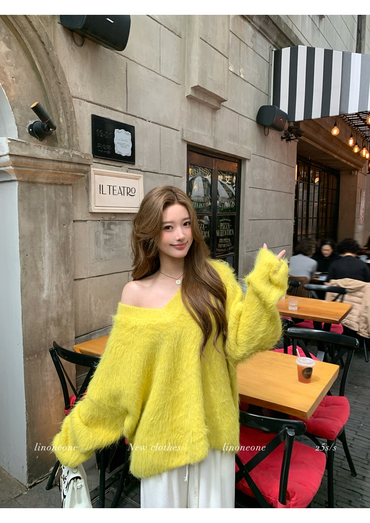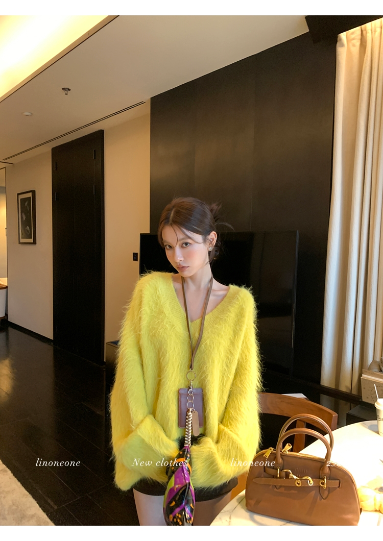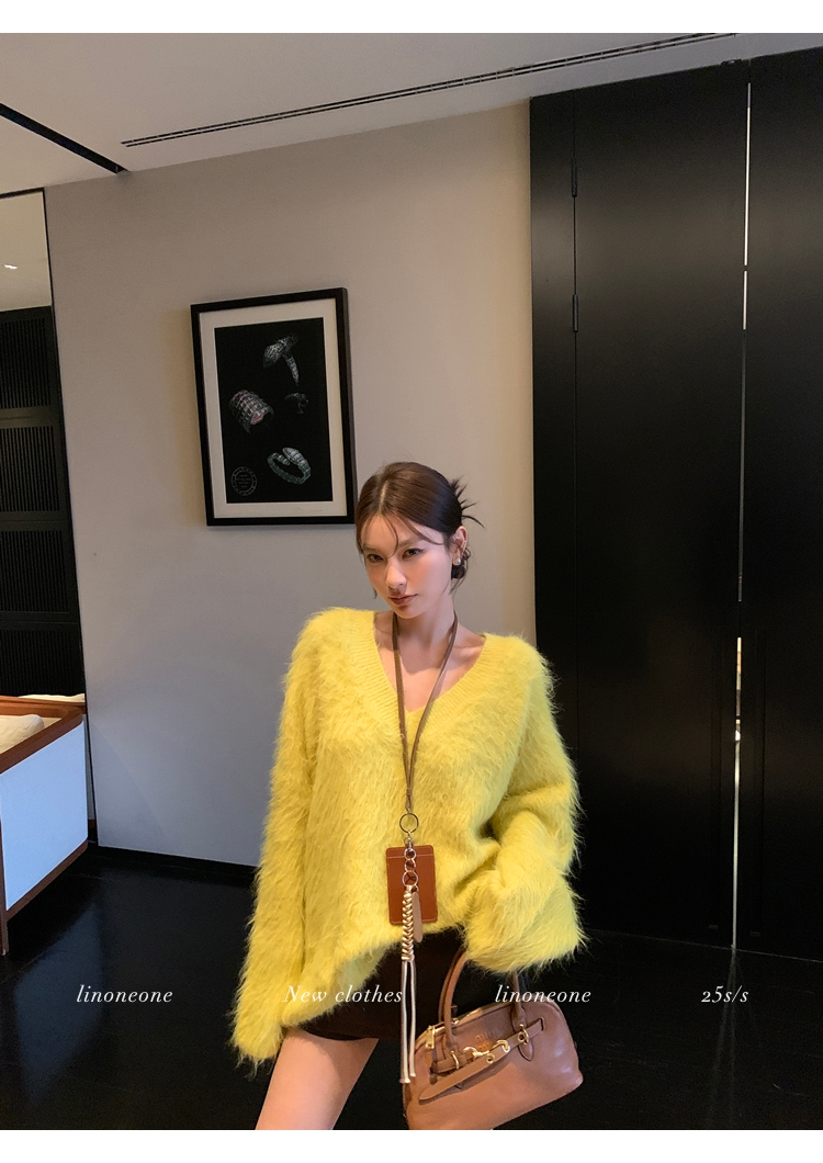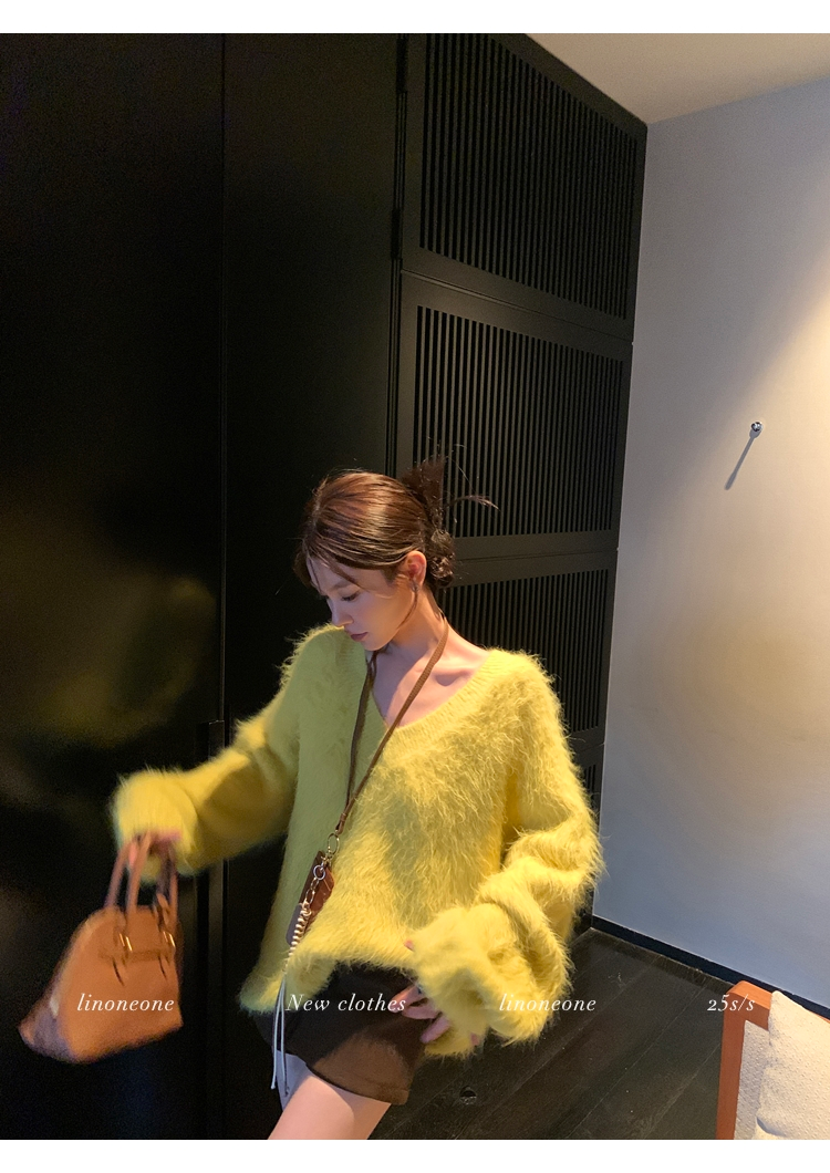 LIN Sunlight Fleece Mink Lazy Wind Knit SweaterNEW