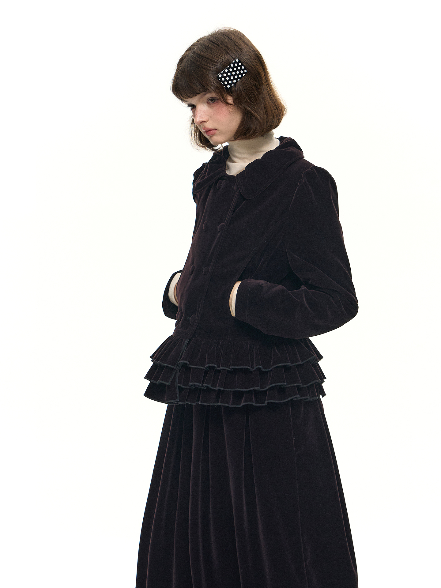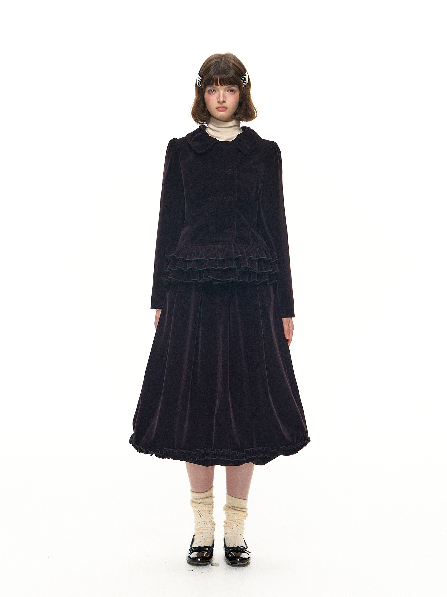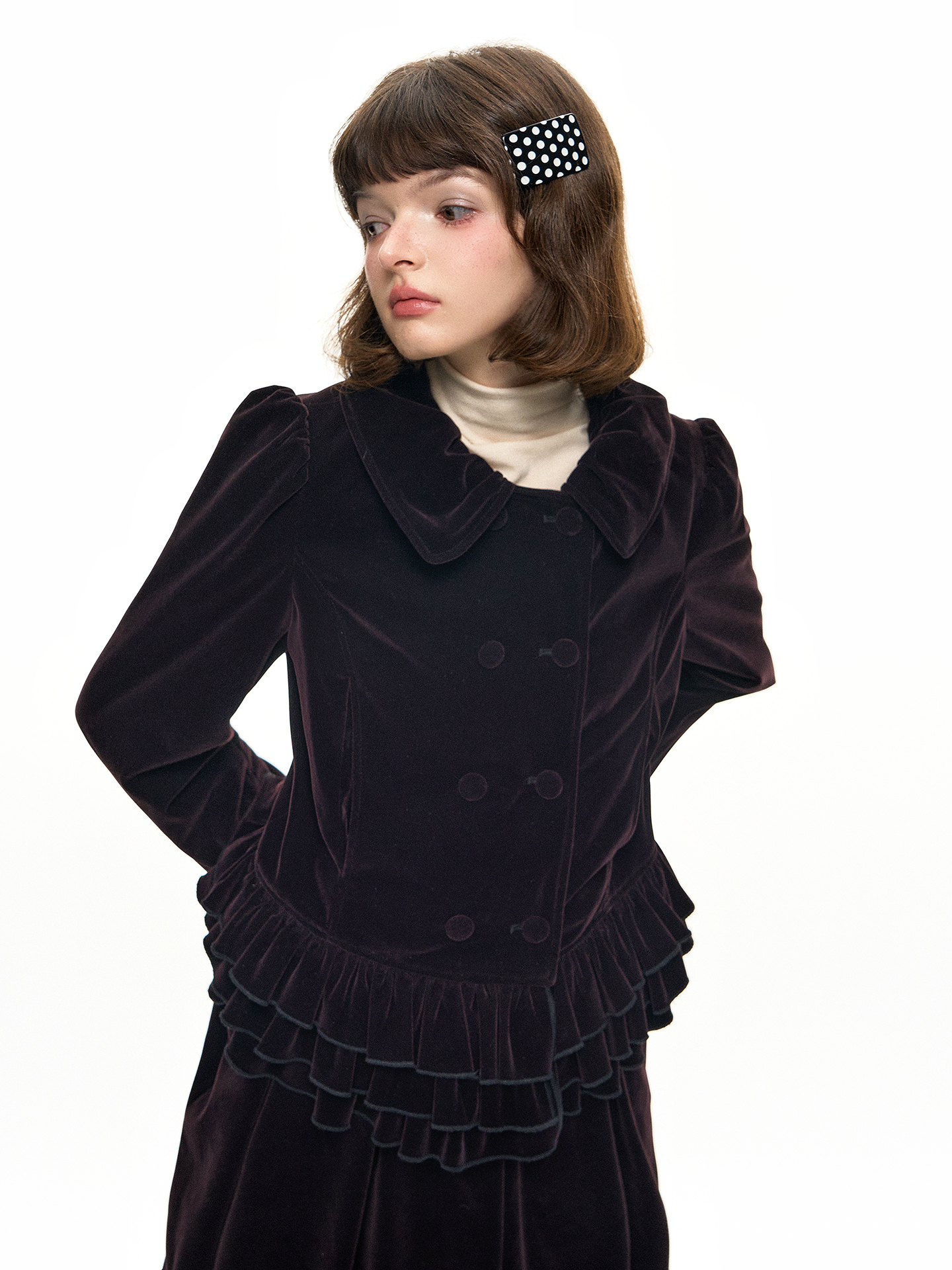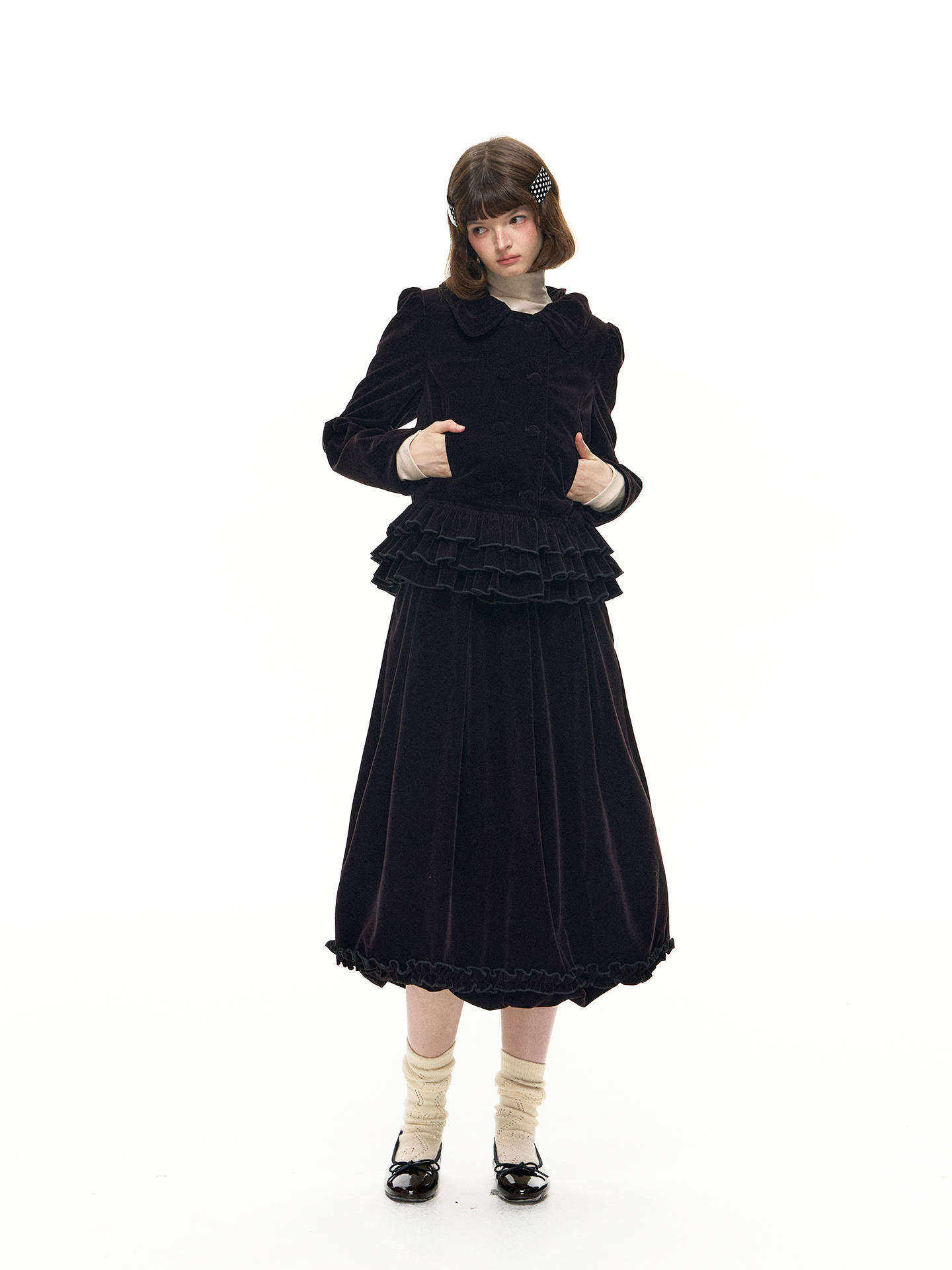 RN Velvet Flower Bud Collar Double Row Button Jacket Skirt SetNEW
