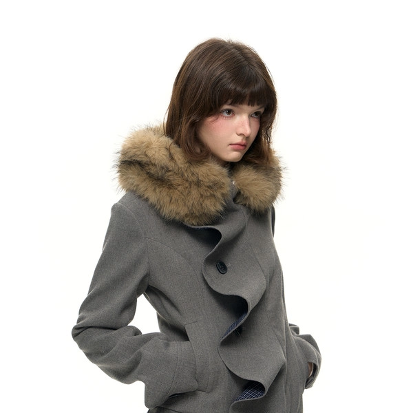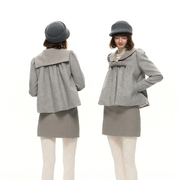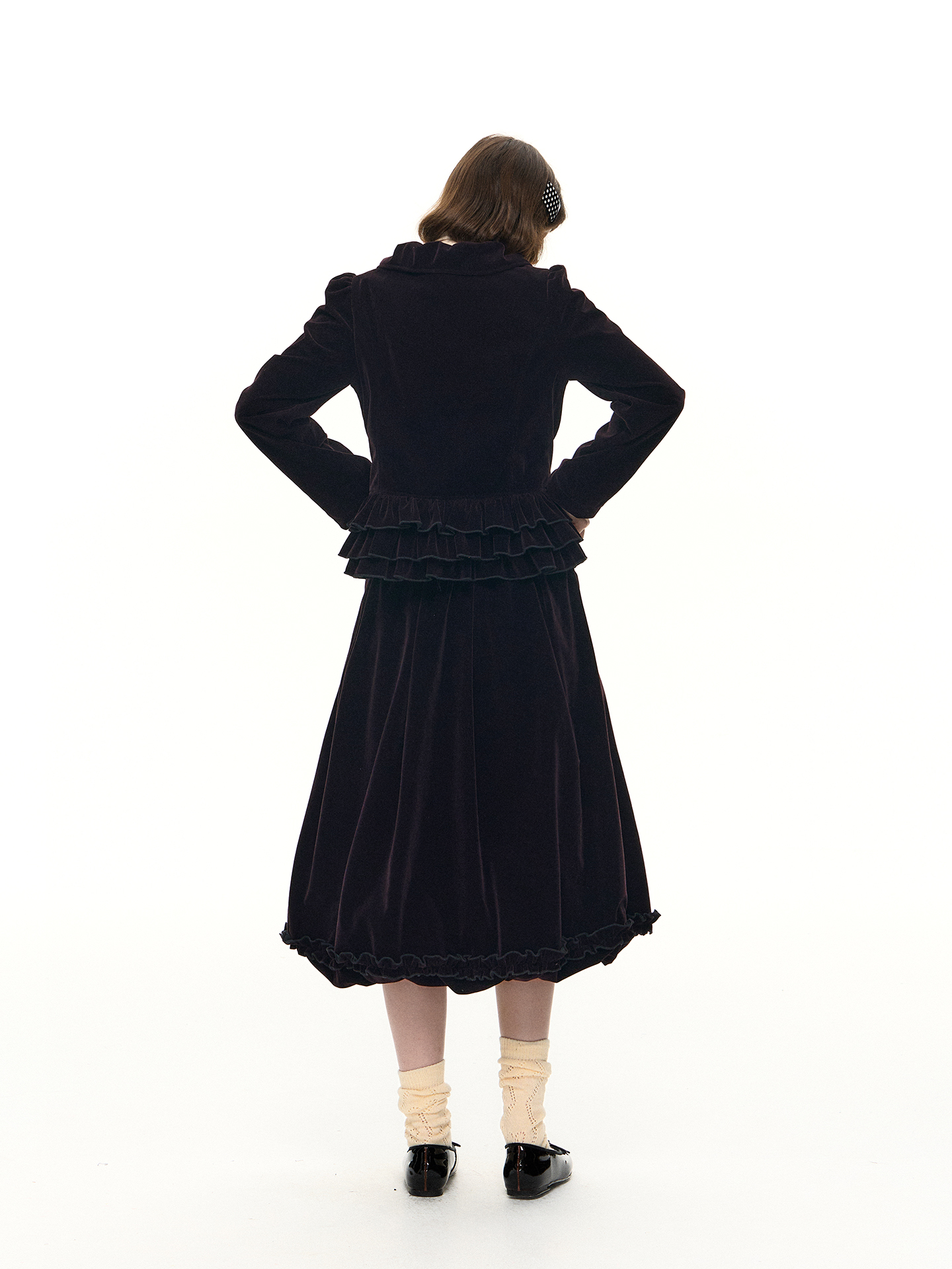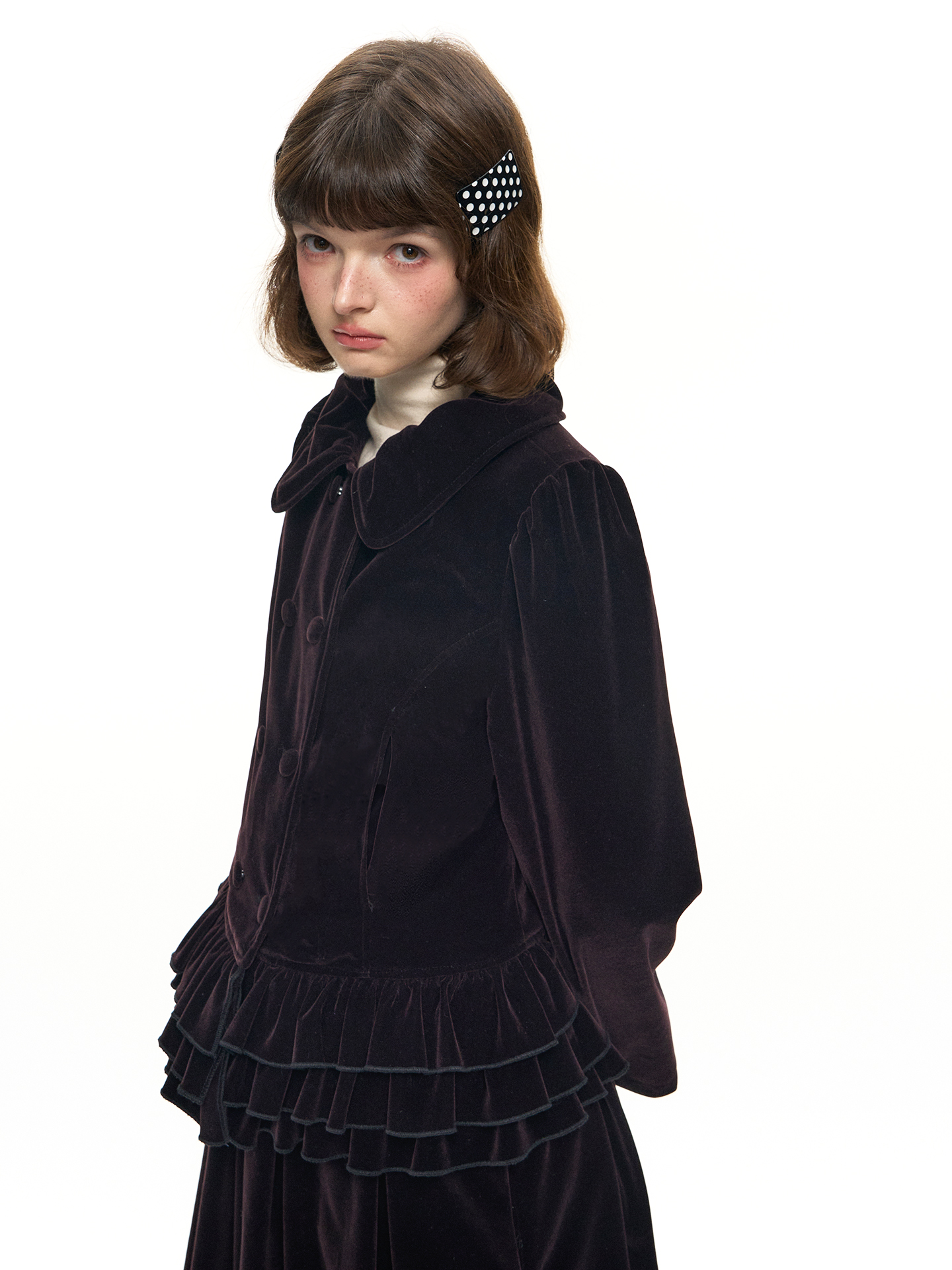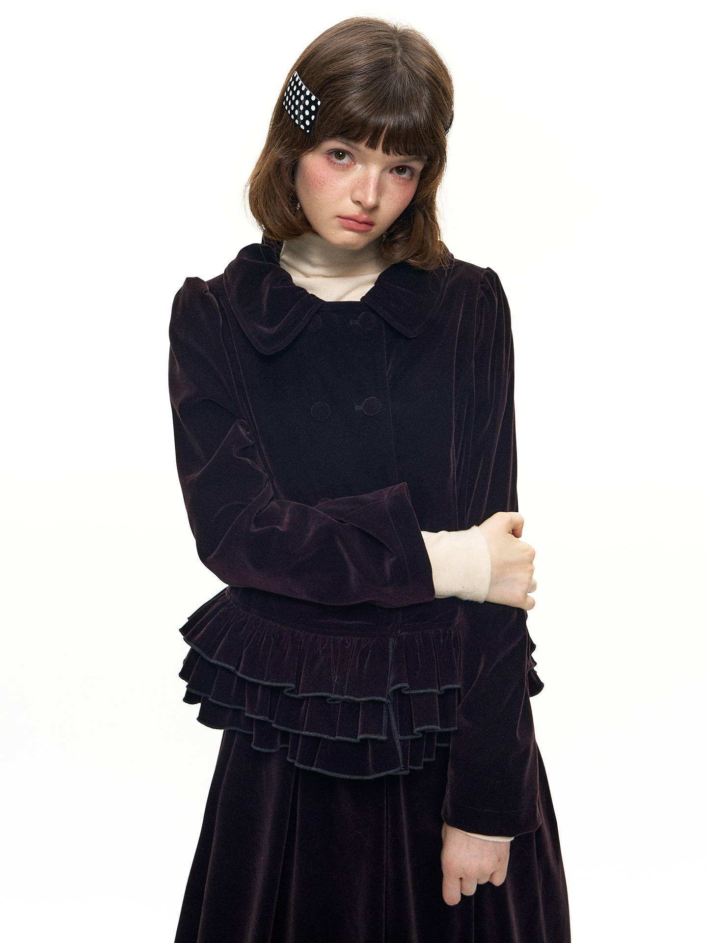 RN Velvet Flower Bud Collar Double Row Button Jacket Skirt SetNEW