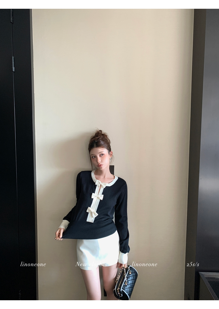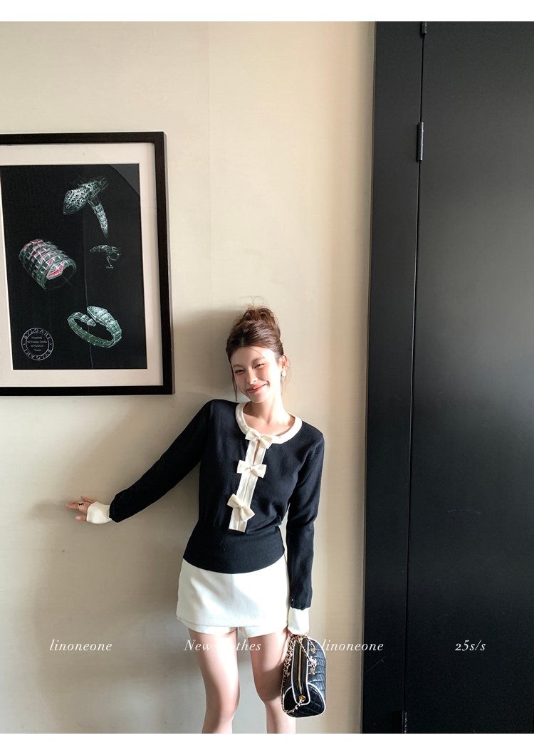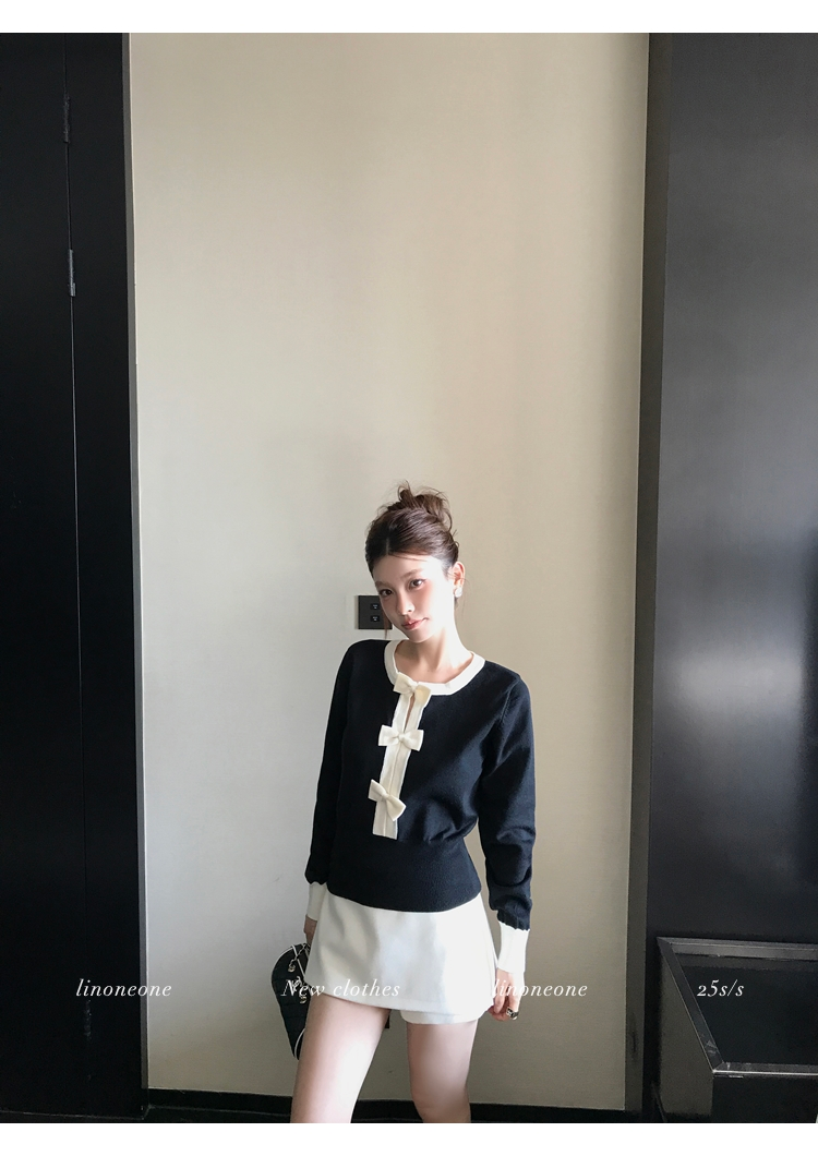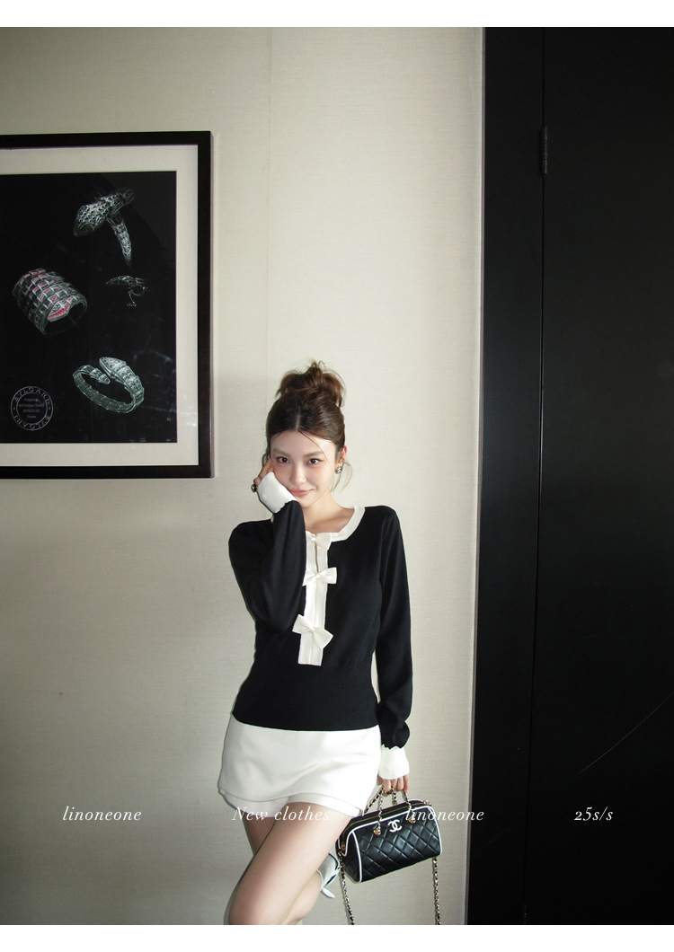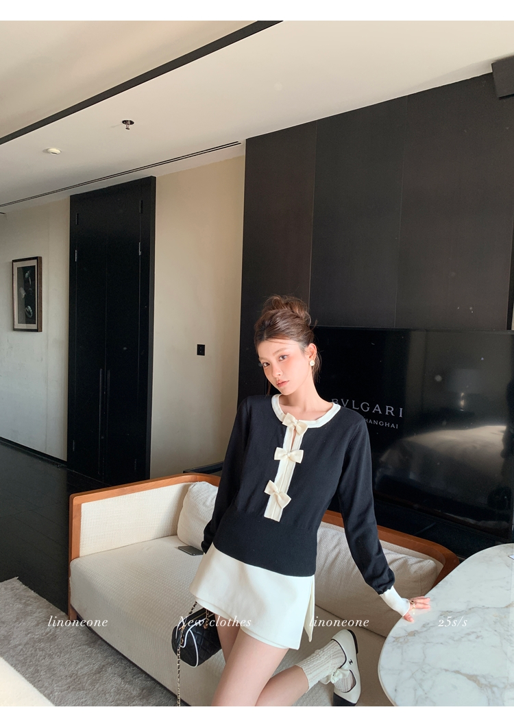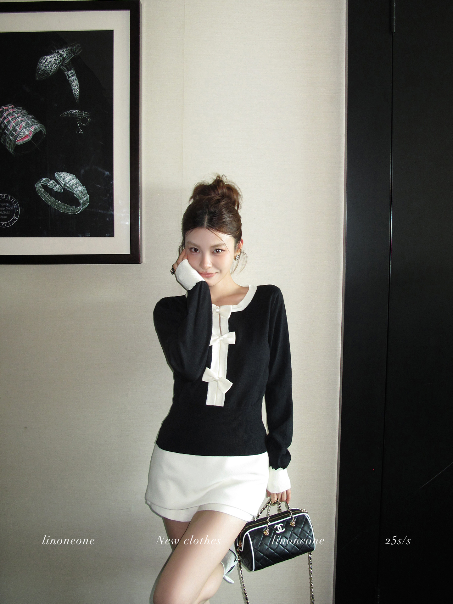 LIN Paris Fairy Elegance Bow Tie Long Sleeve Knit Sweater