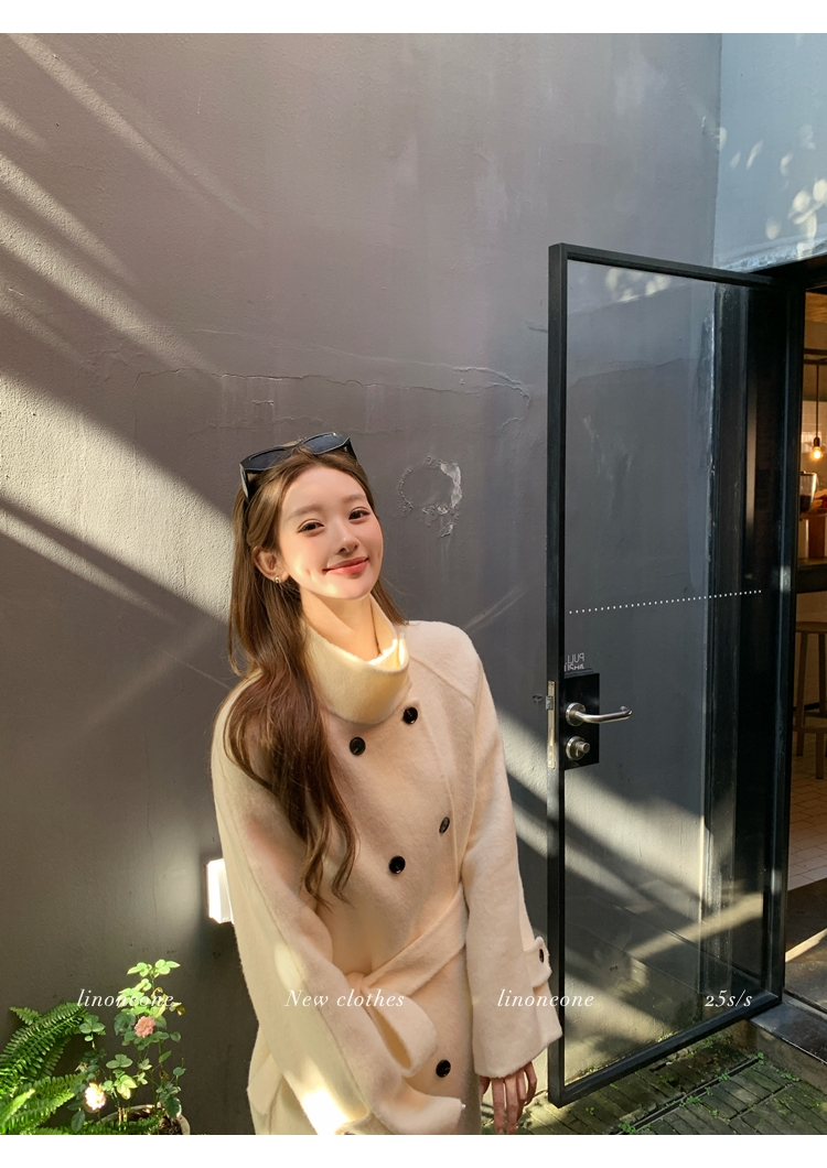 LIN Berlin Golden Double-breasted Shoulder Strap Fleece Jacket