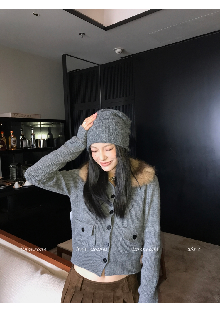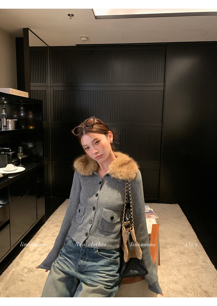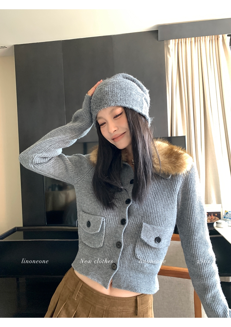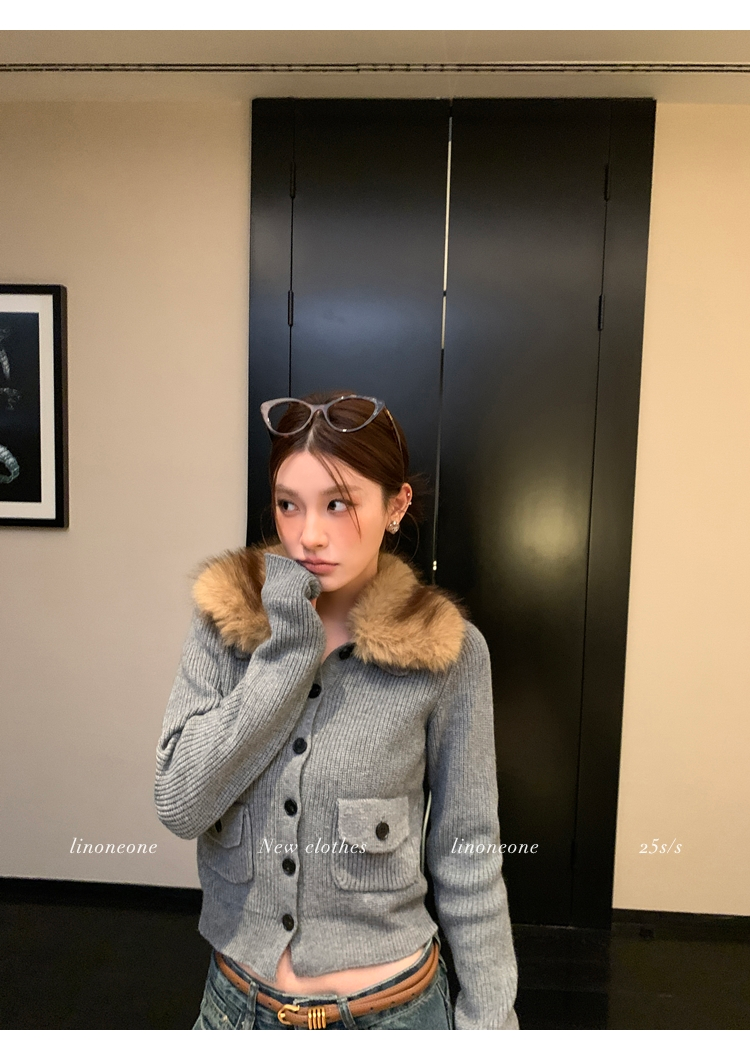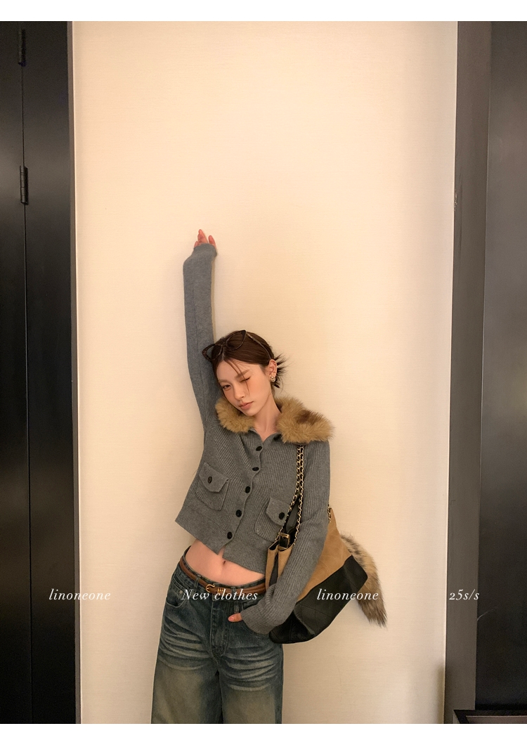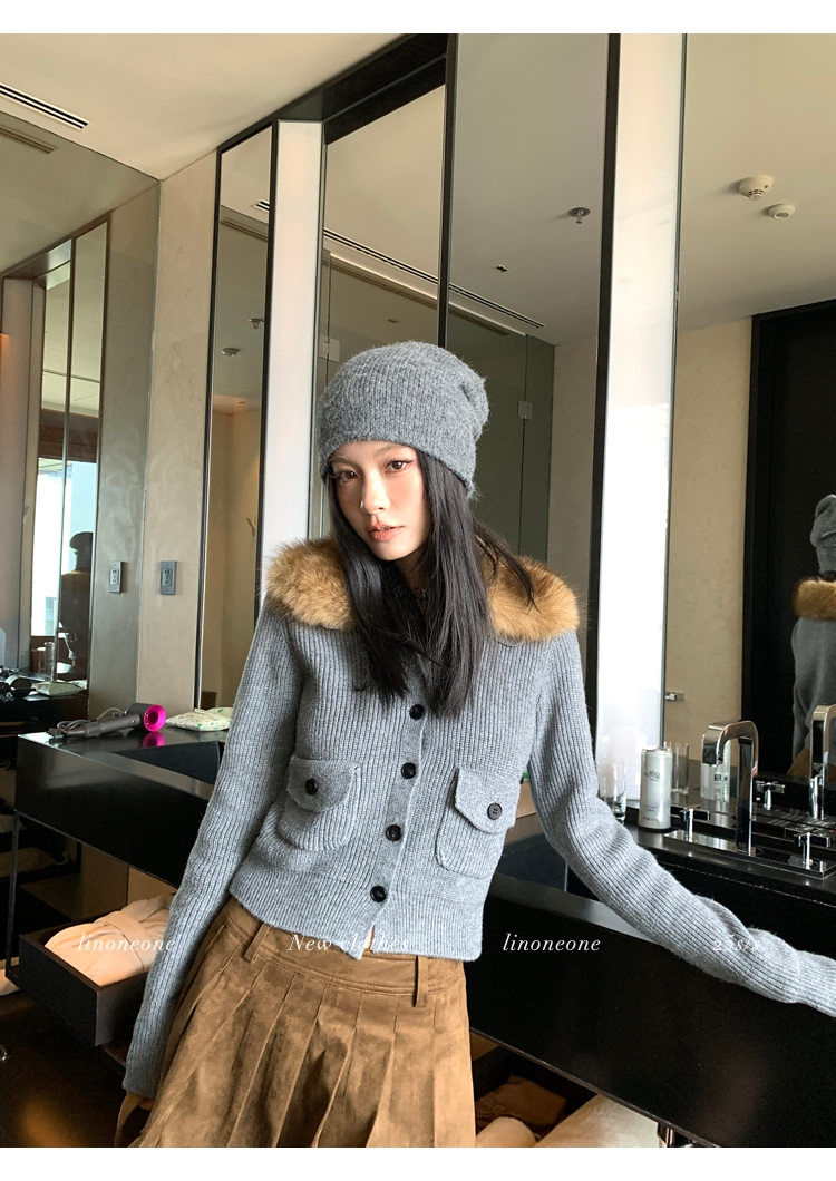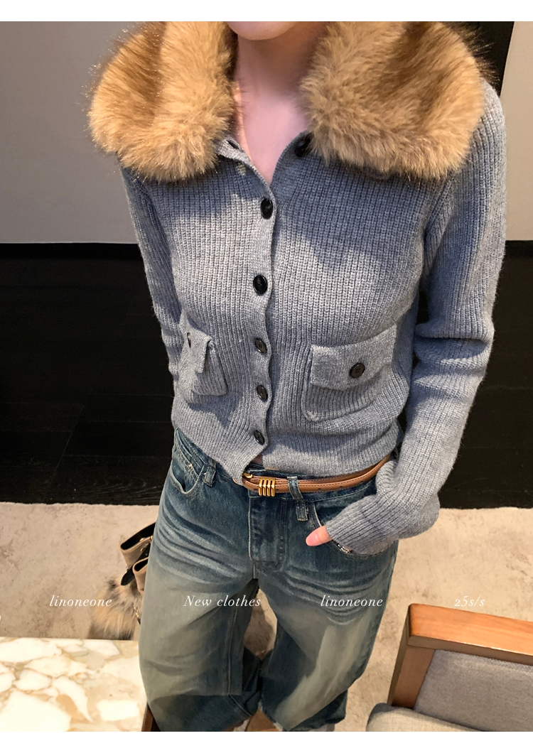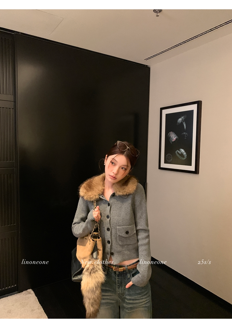 LIN City Gray Textured Sweater Jacket with Removable Collar