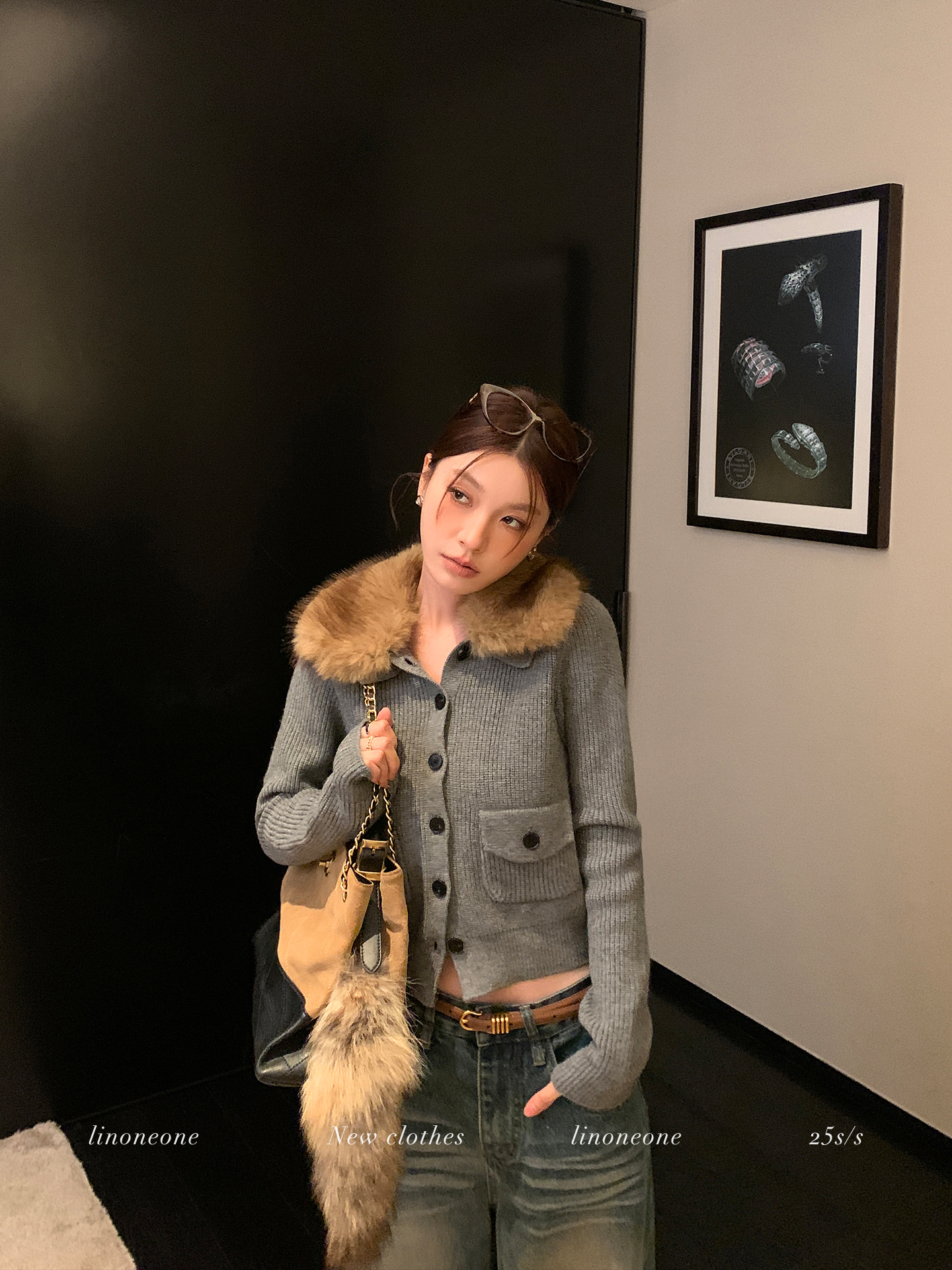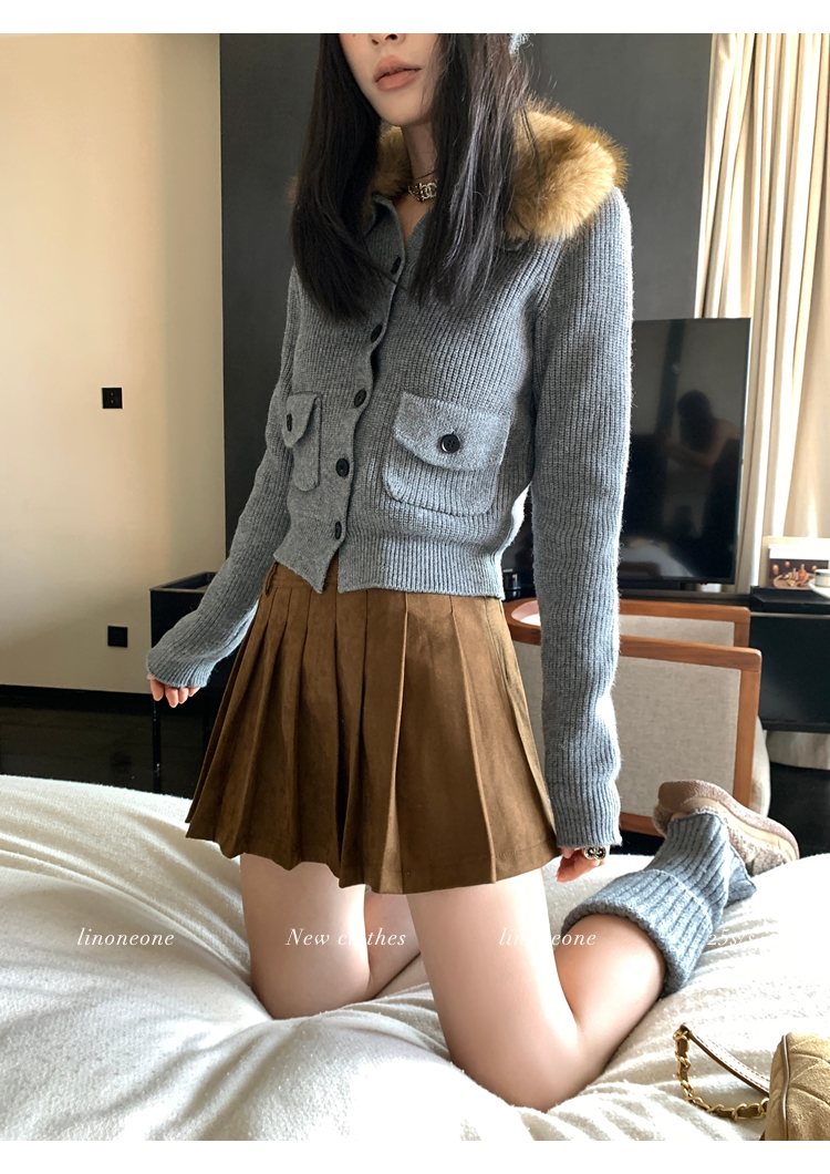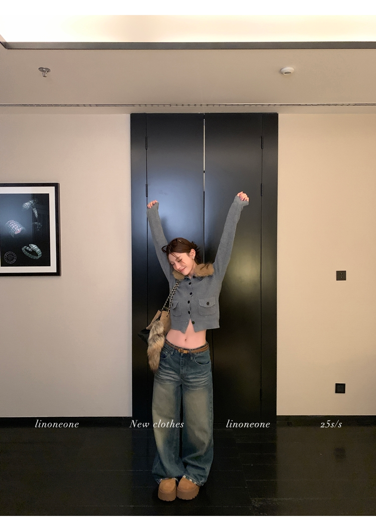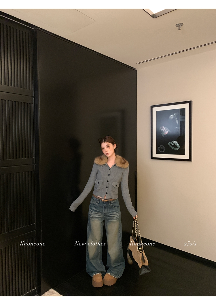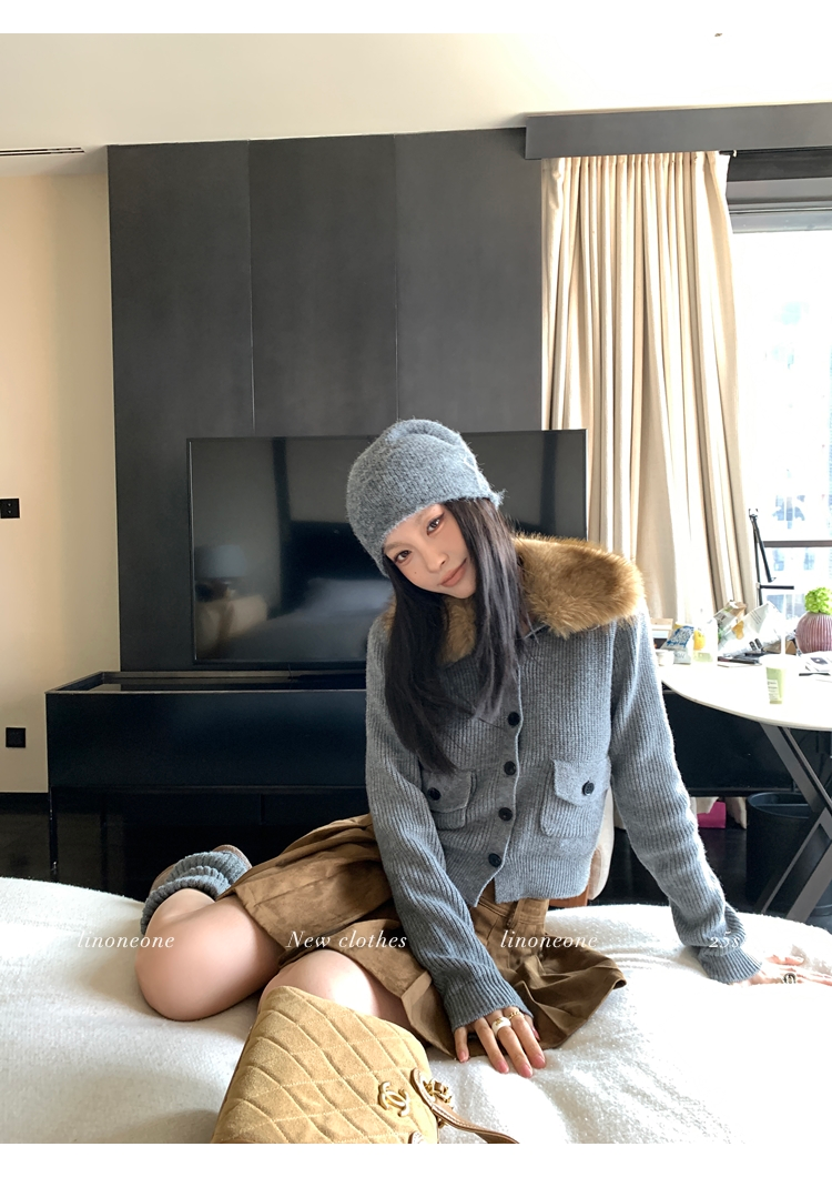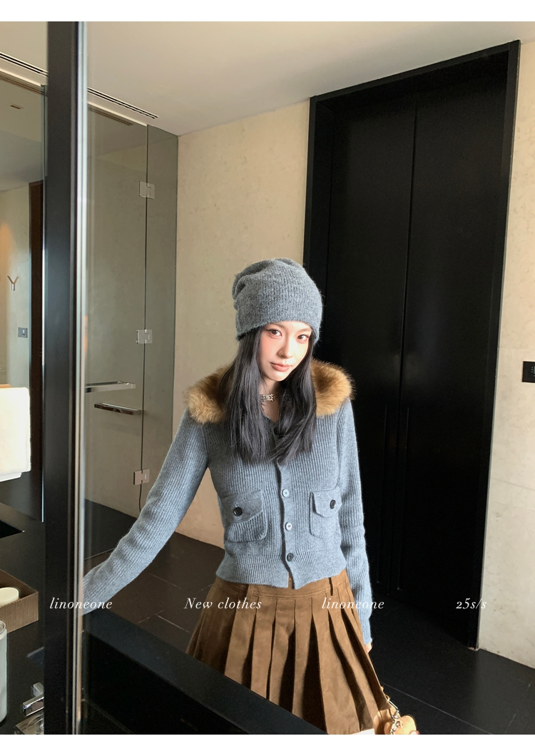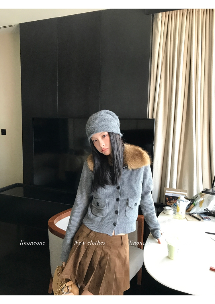 LIN City Gray Textured Sweater Jacket with Removable Collar
