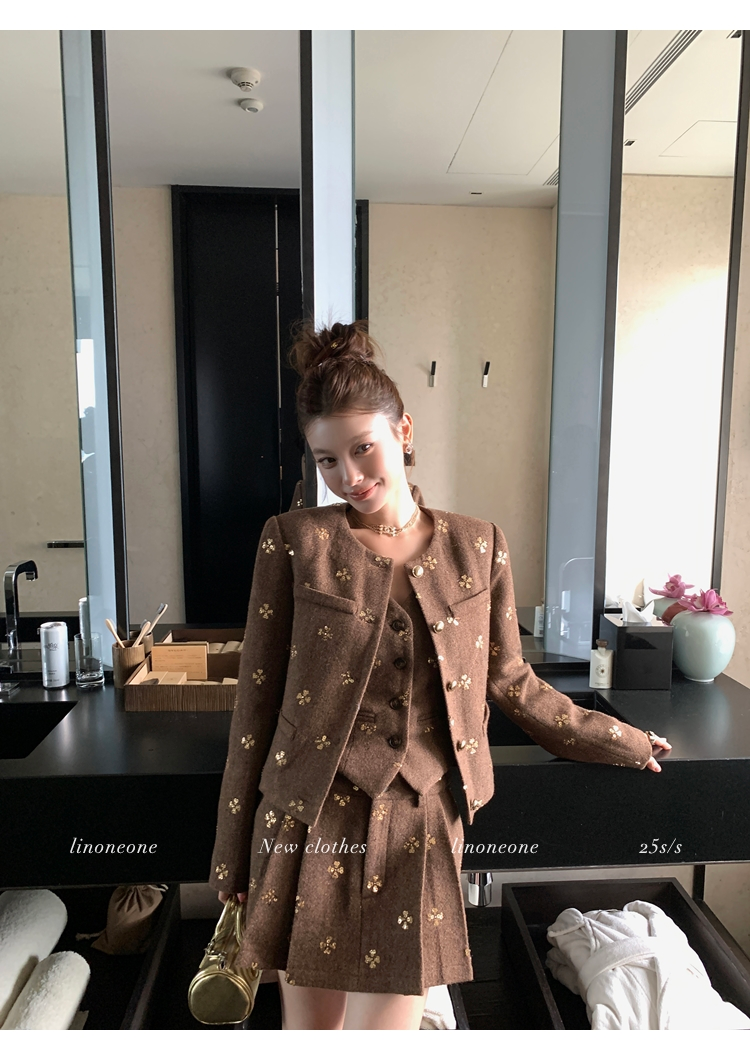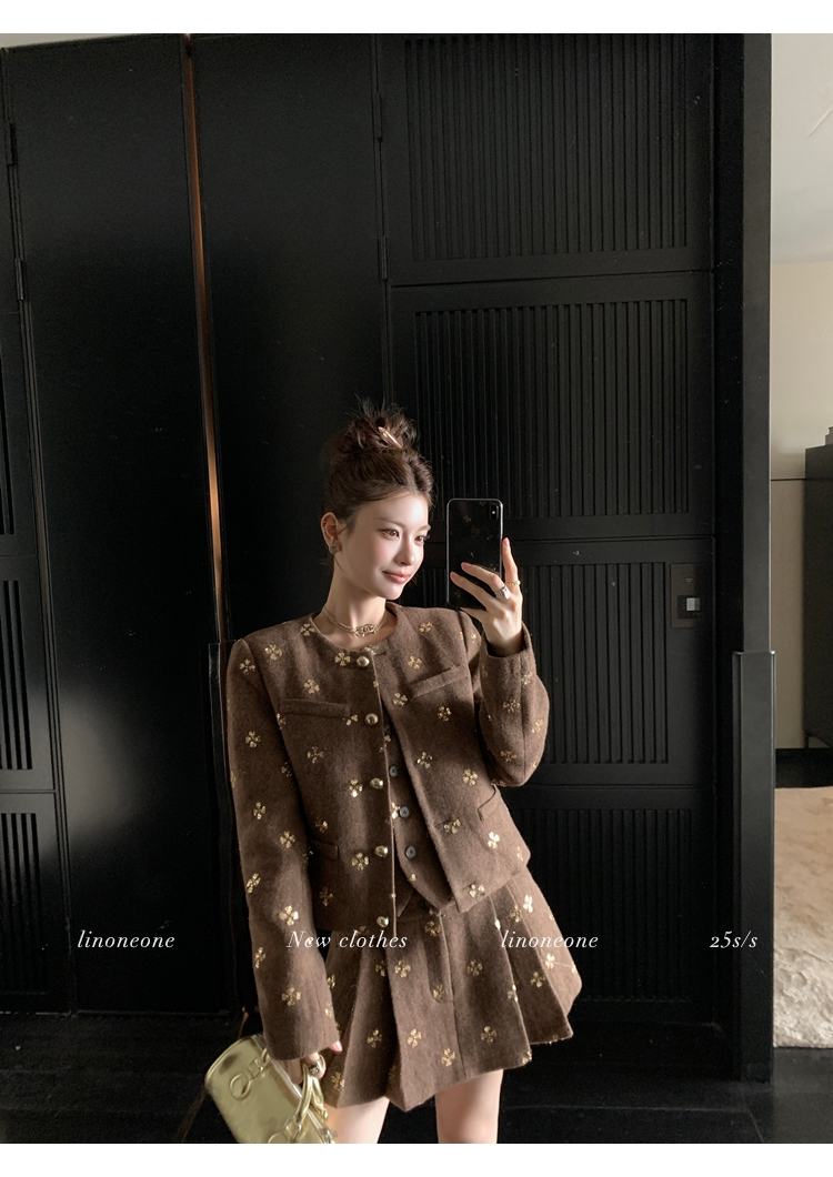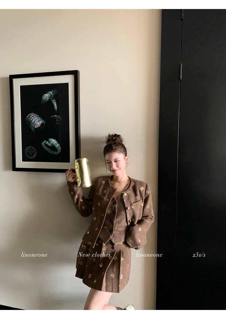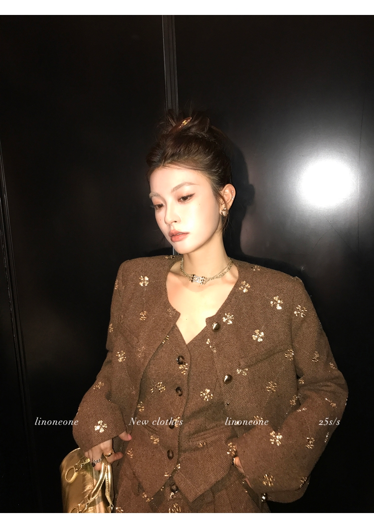 LIN Golden Sparkling Fragrant Breeze Cotton Jacket Skirt SetNEW