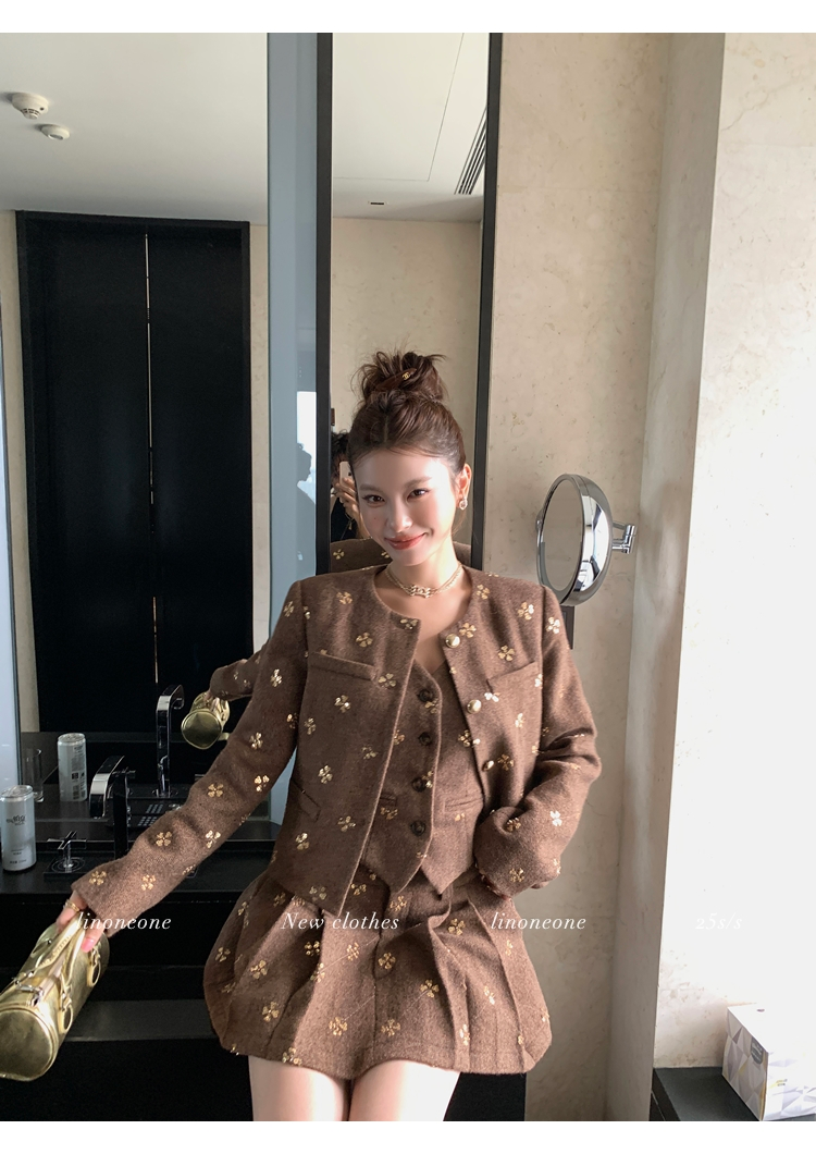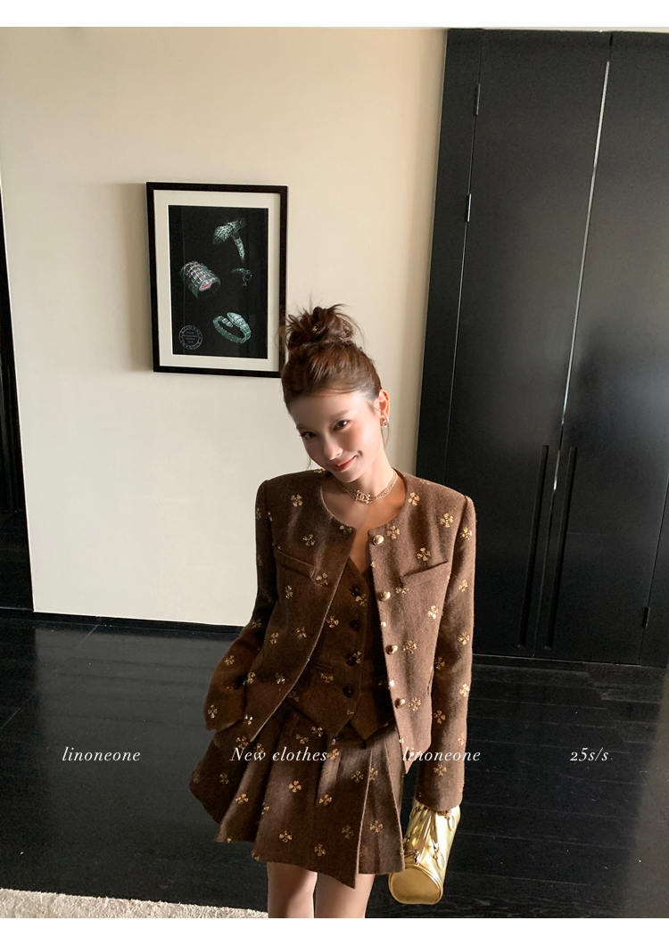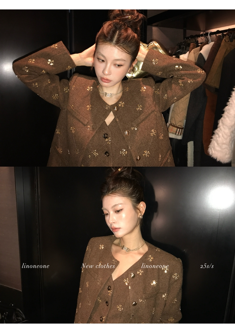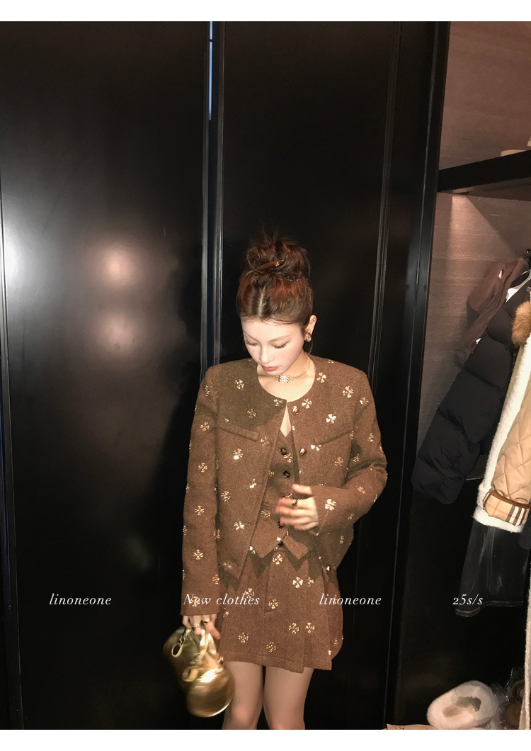LIN Golden Sparkling Fragrant Breeze Cotton Jacket Skirt SetNEW