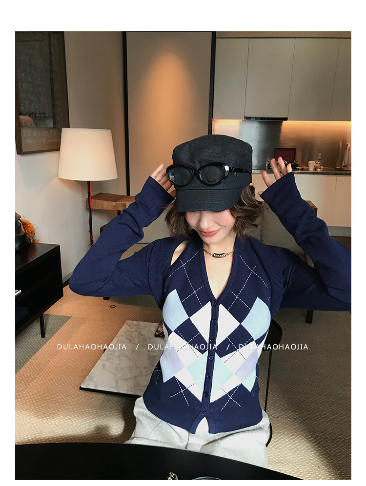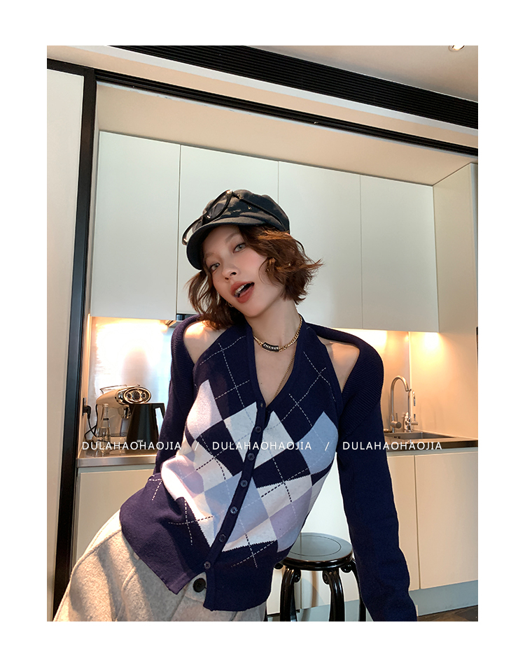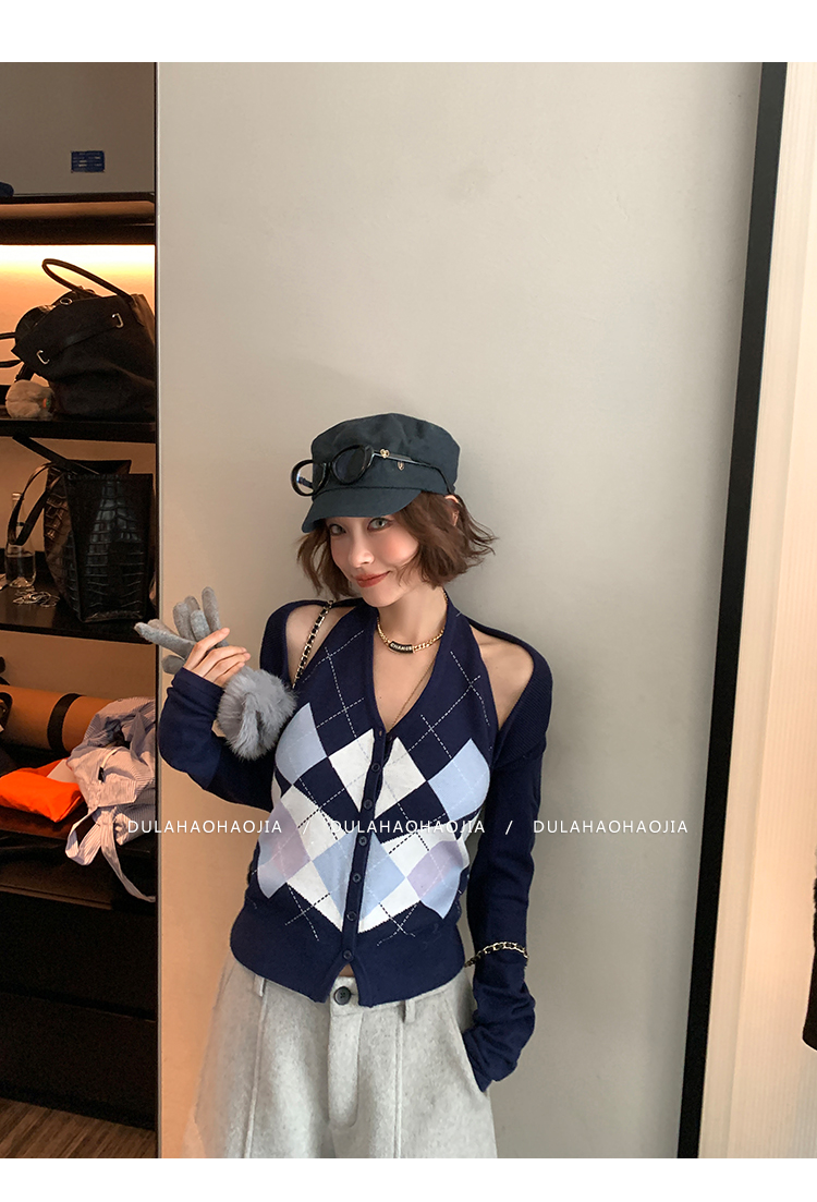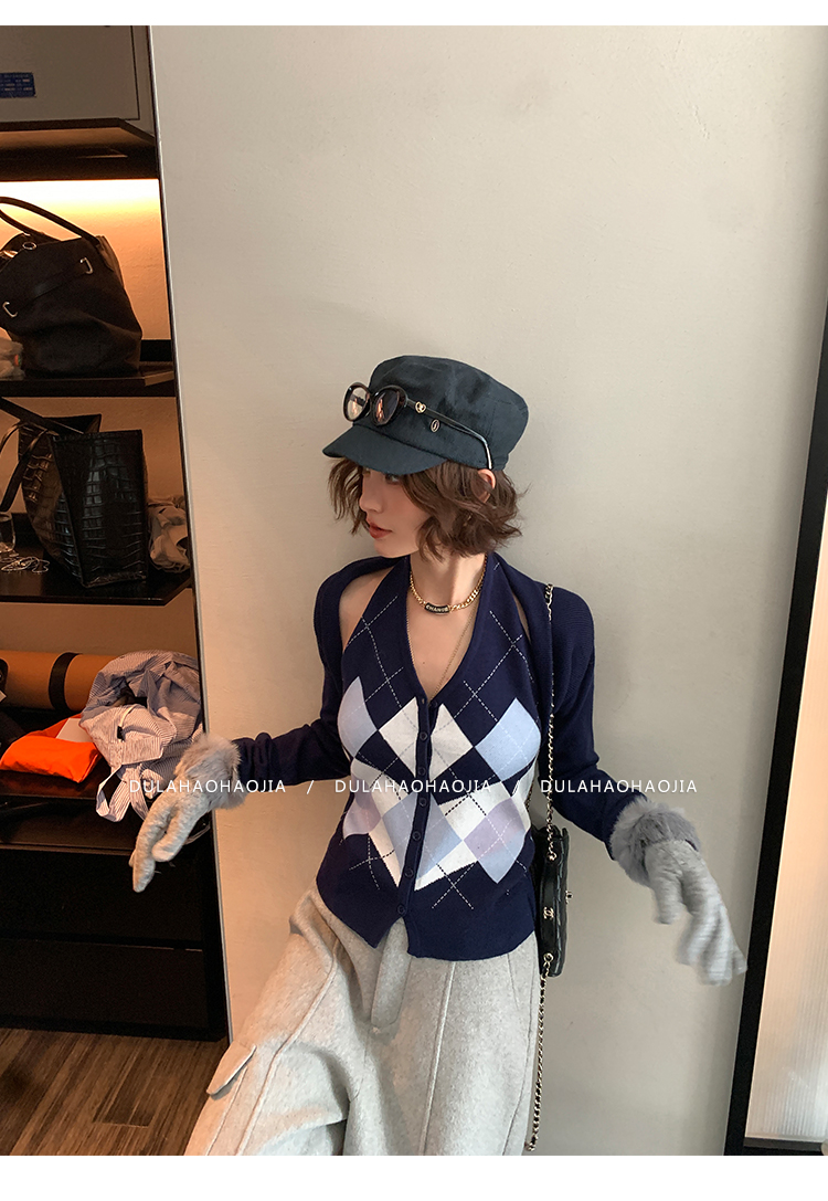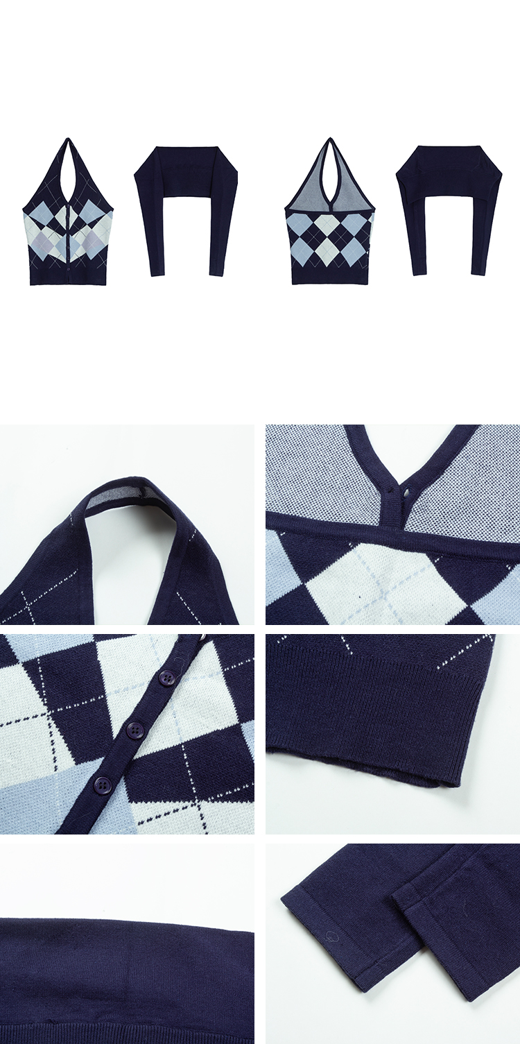 DULA Checkerboard Knit Tank Top + Shawl Set