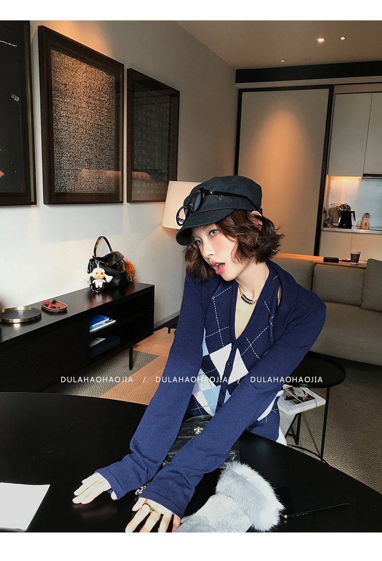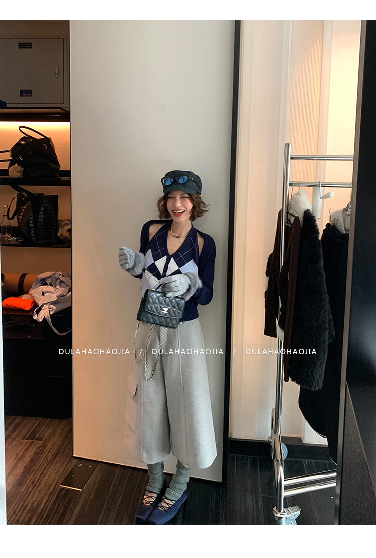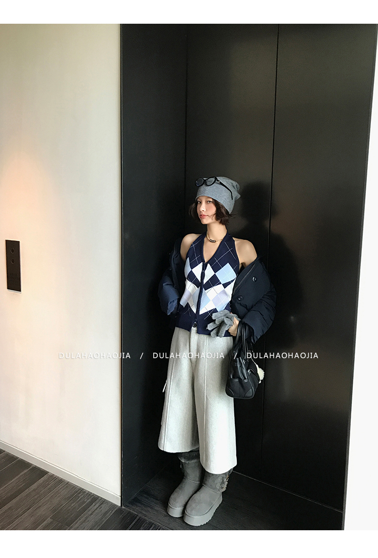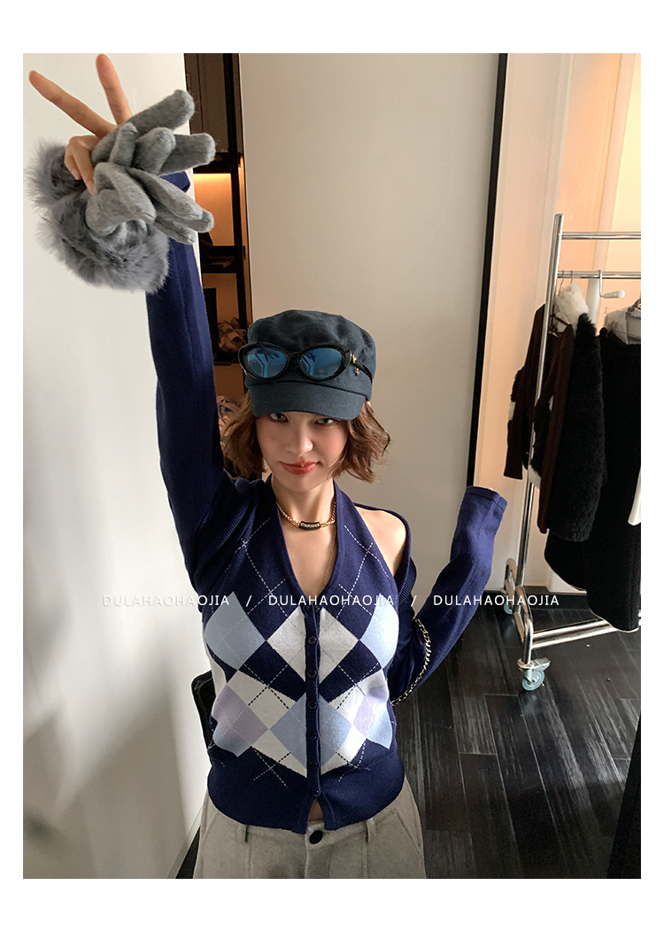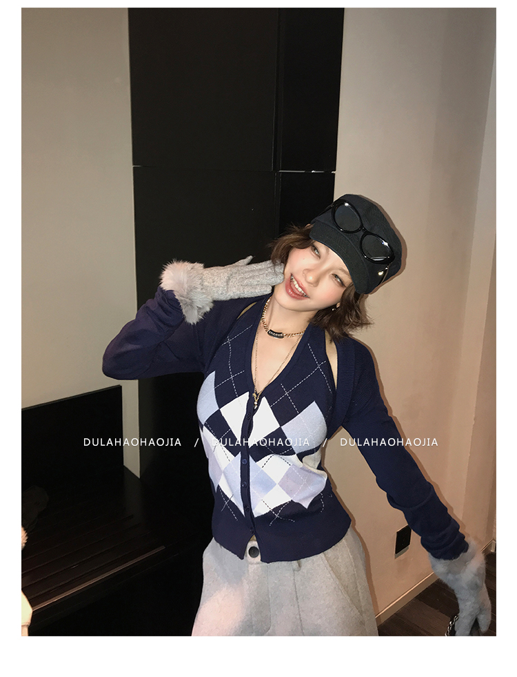 DULA Checkerboard Knit Tank Top + Shawl Set