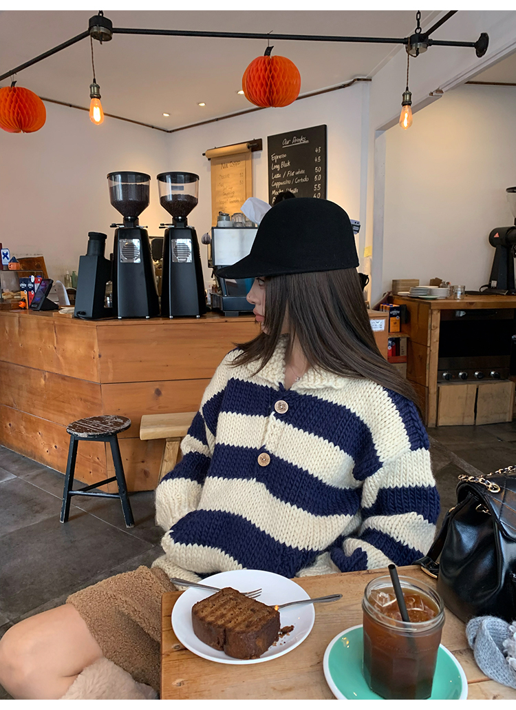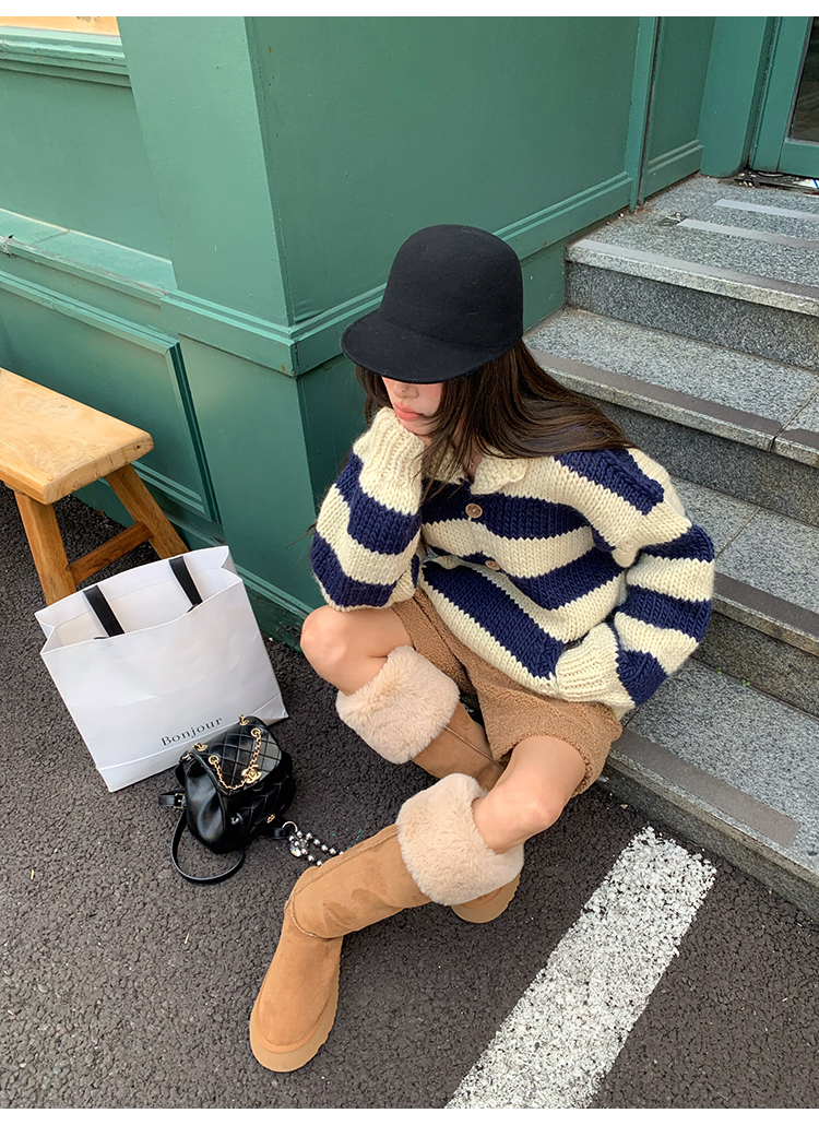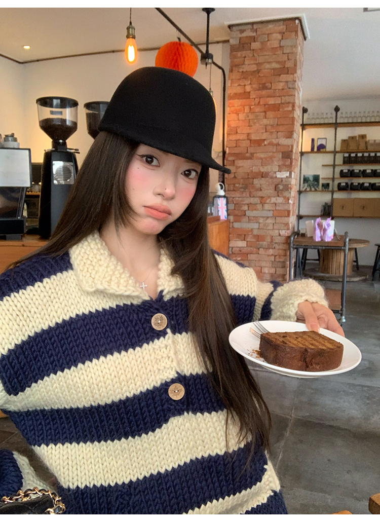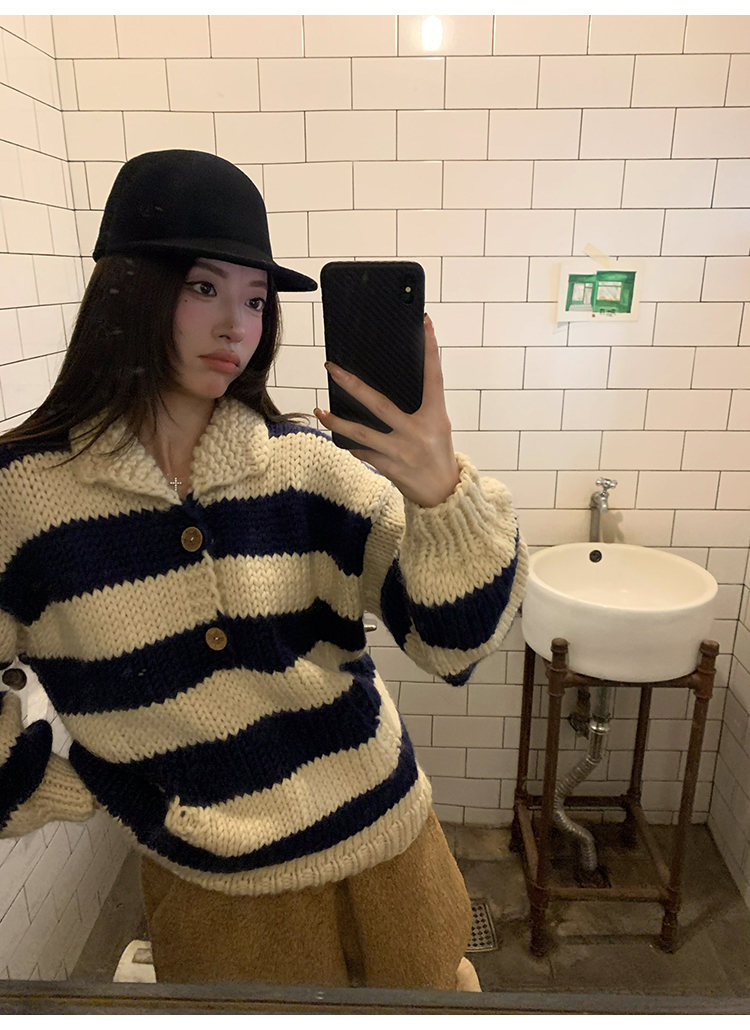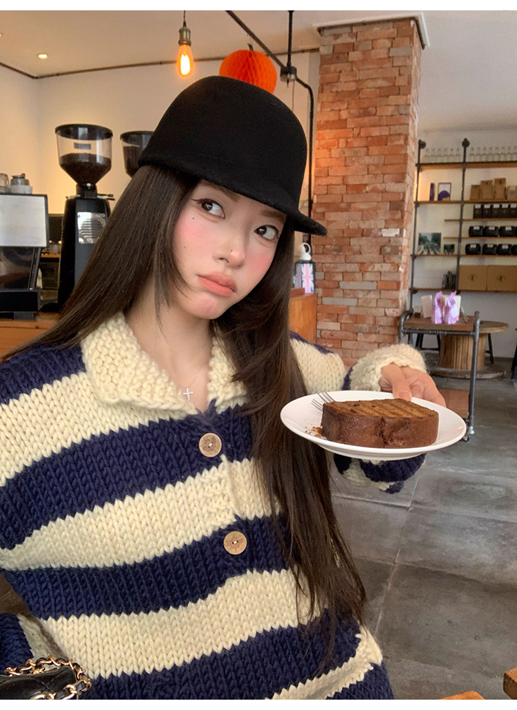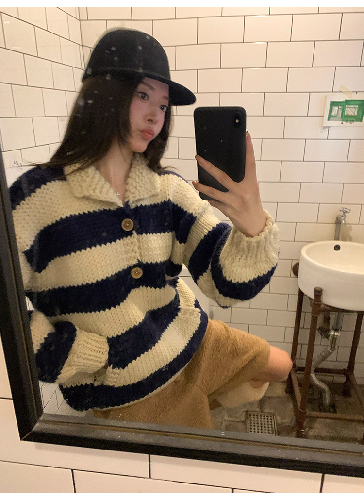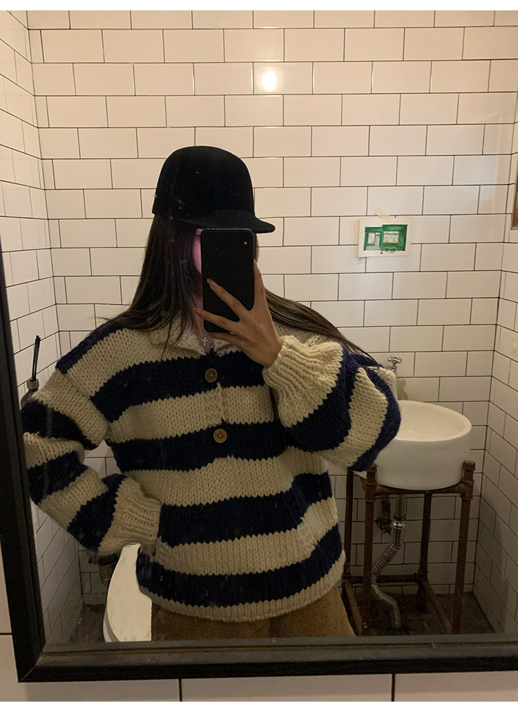 YADA Hand-Painted Striped Polo Collar Knit Sweater