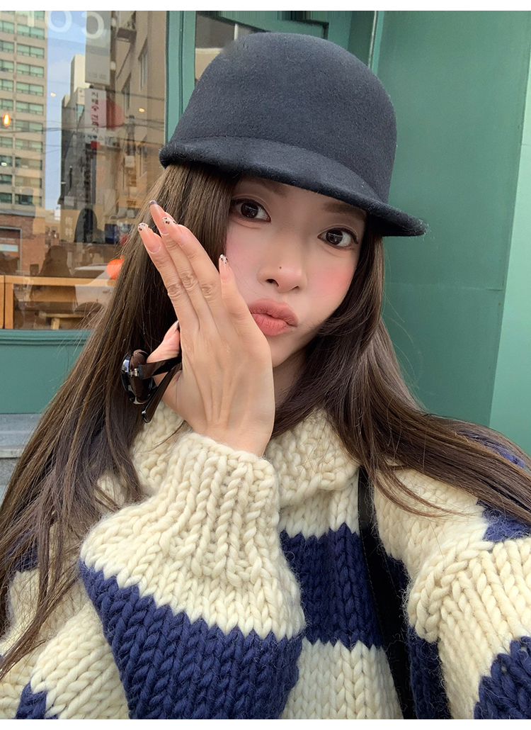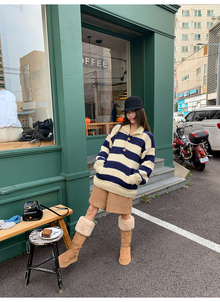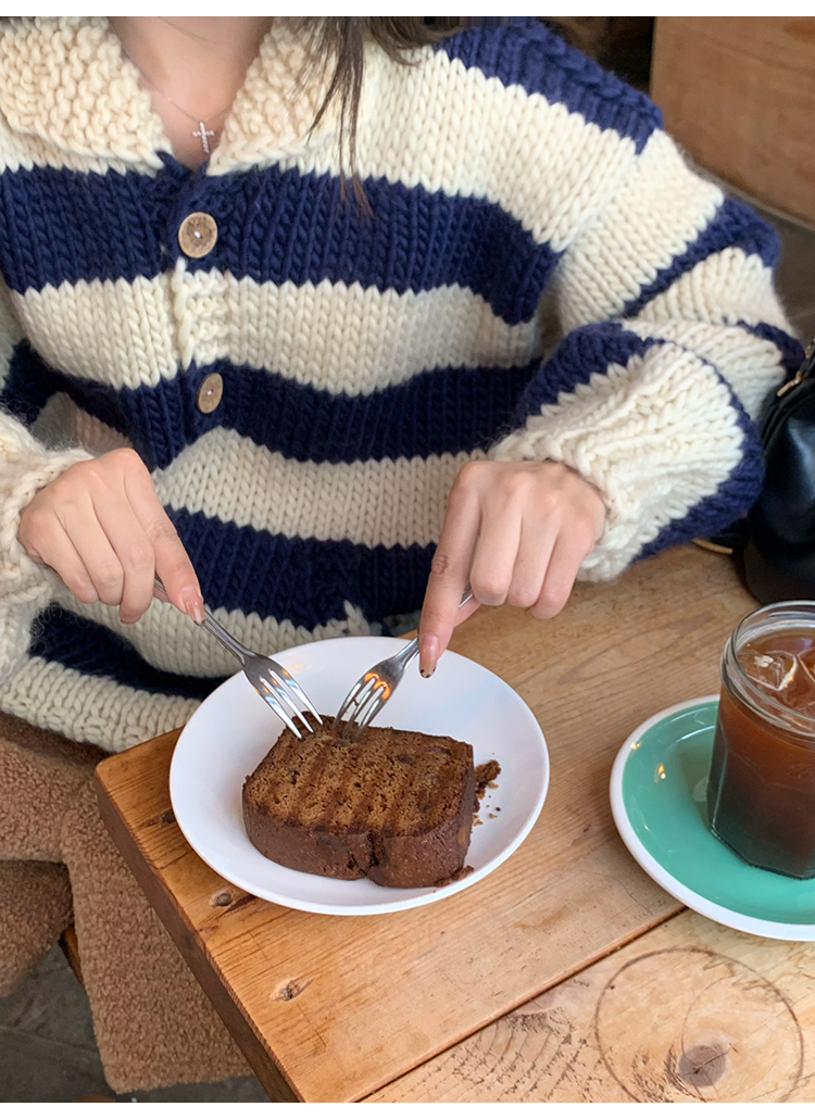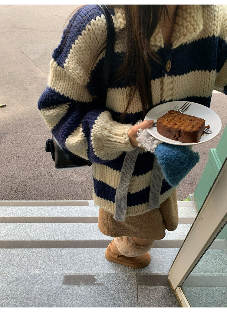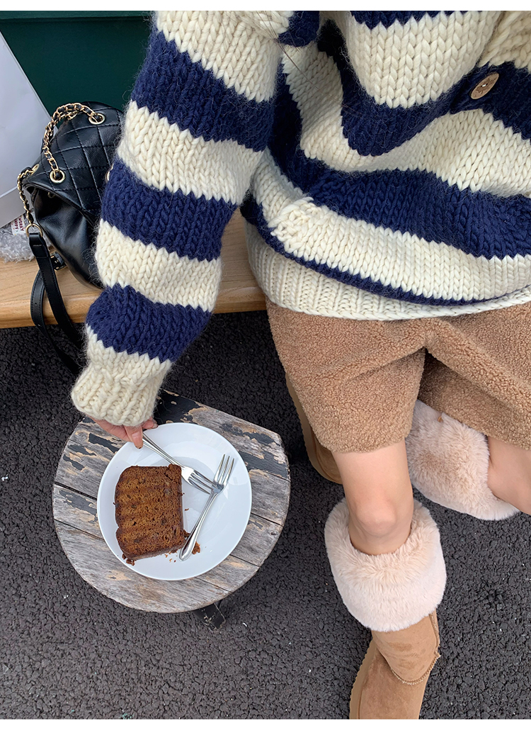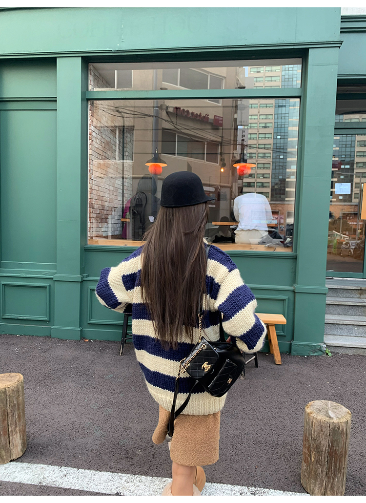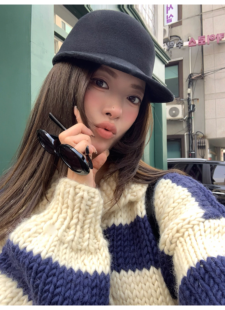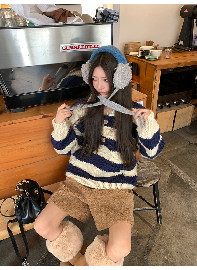 YADA Hand-Painted Striped Polo Collar Knit Sweater
