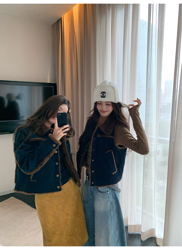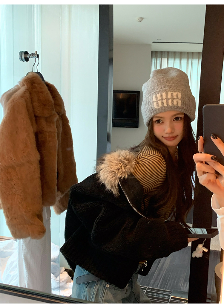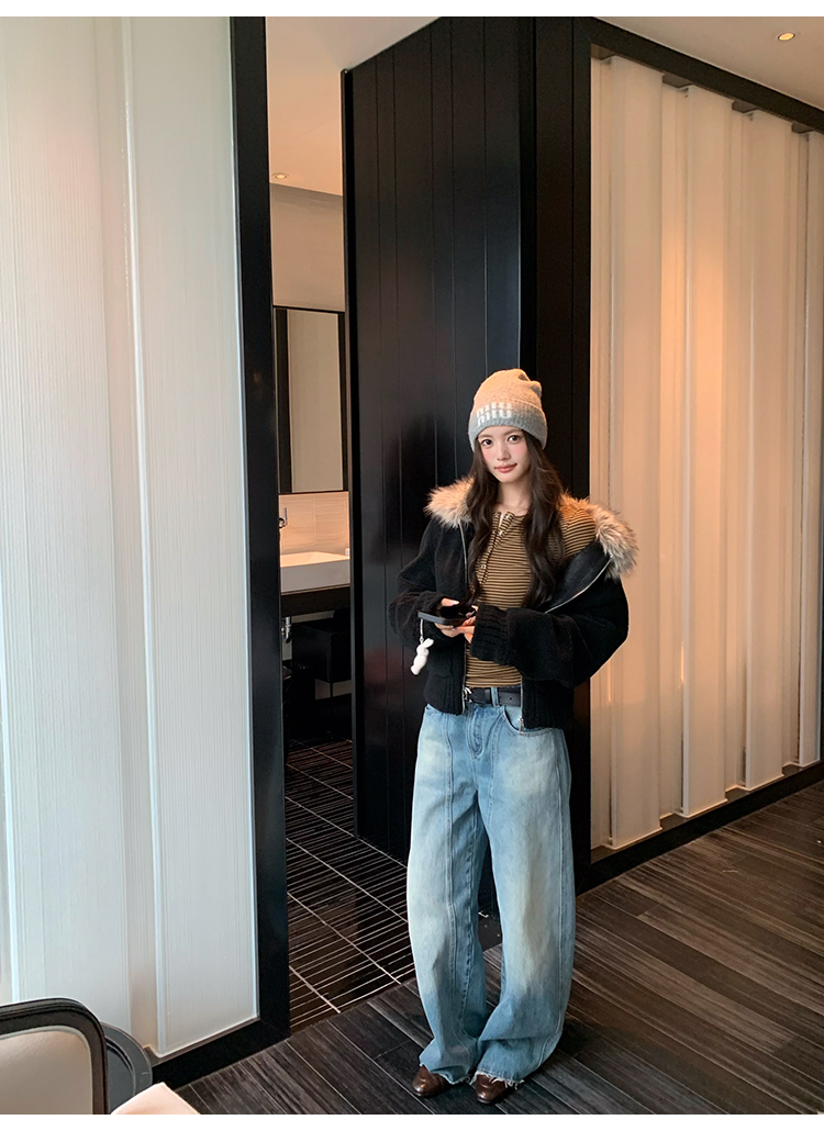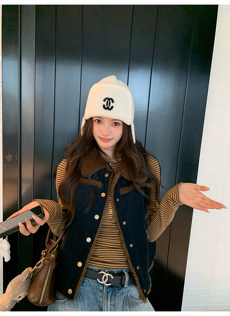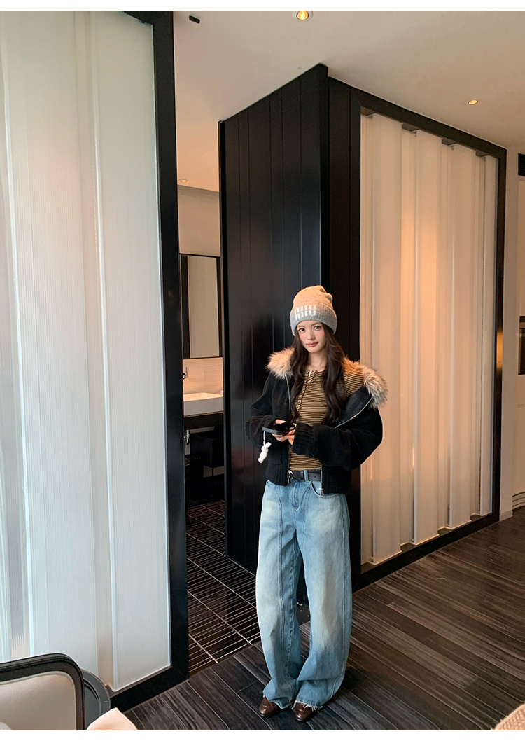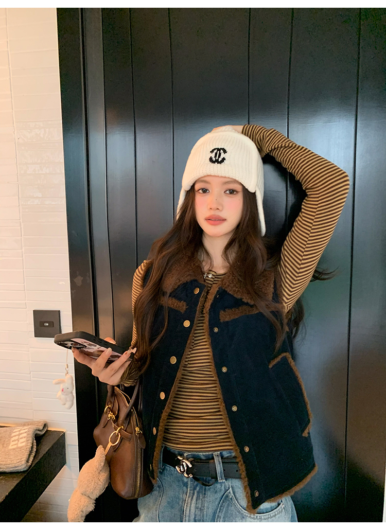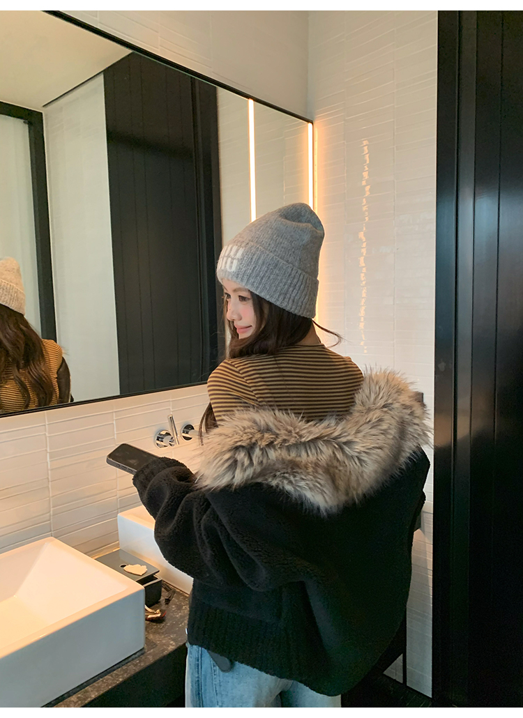 YADA fuzzy texture coffee stripes polo collar T-shirt