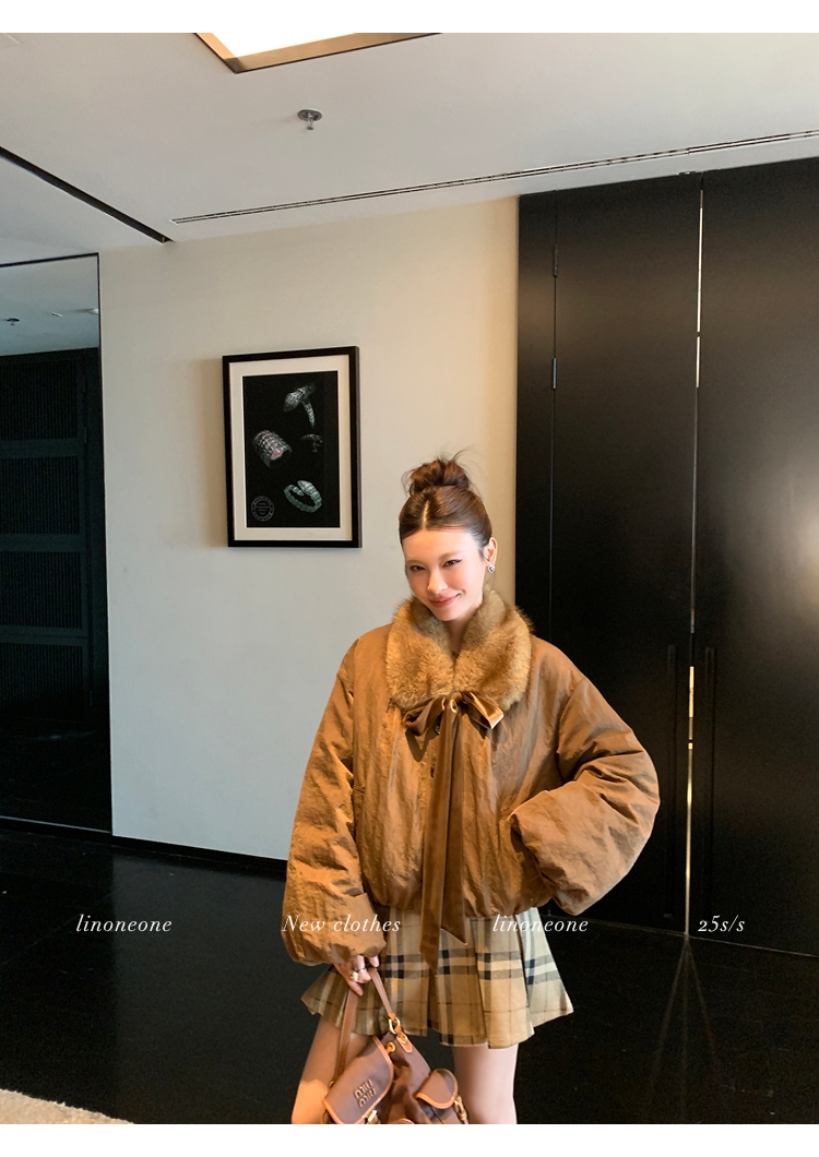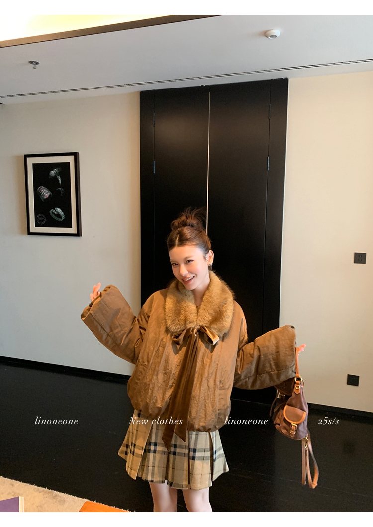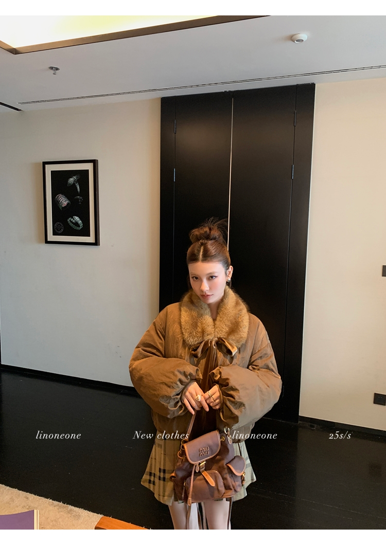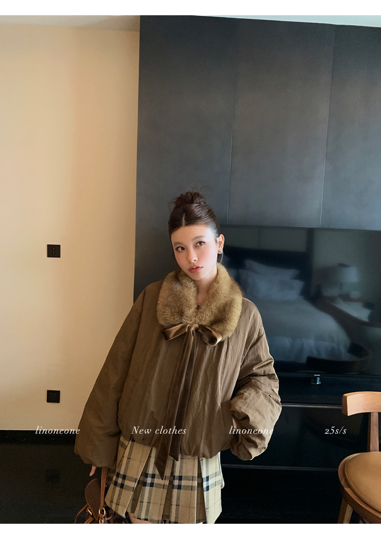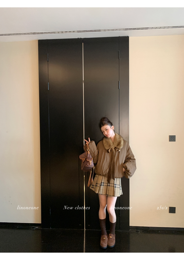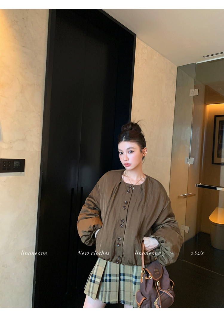 LIN Winter Warm Retro Chocolate Brown Short Down Jacket