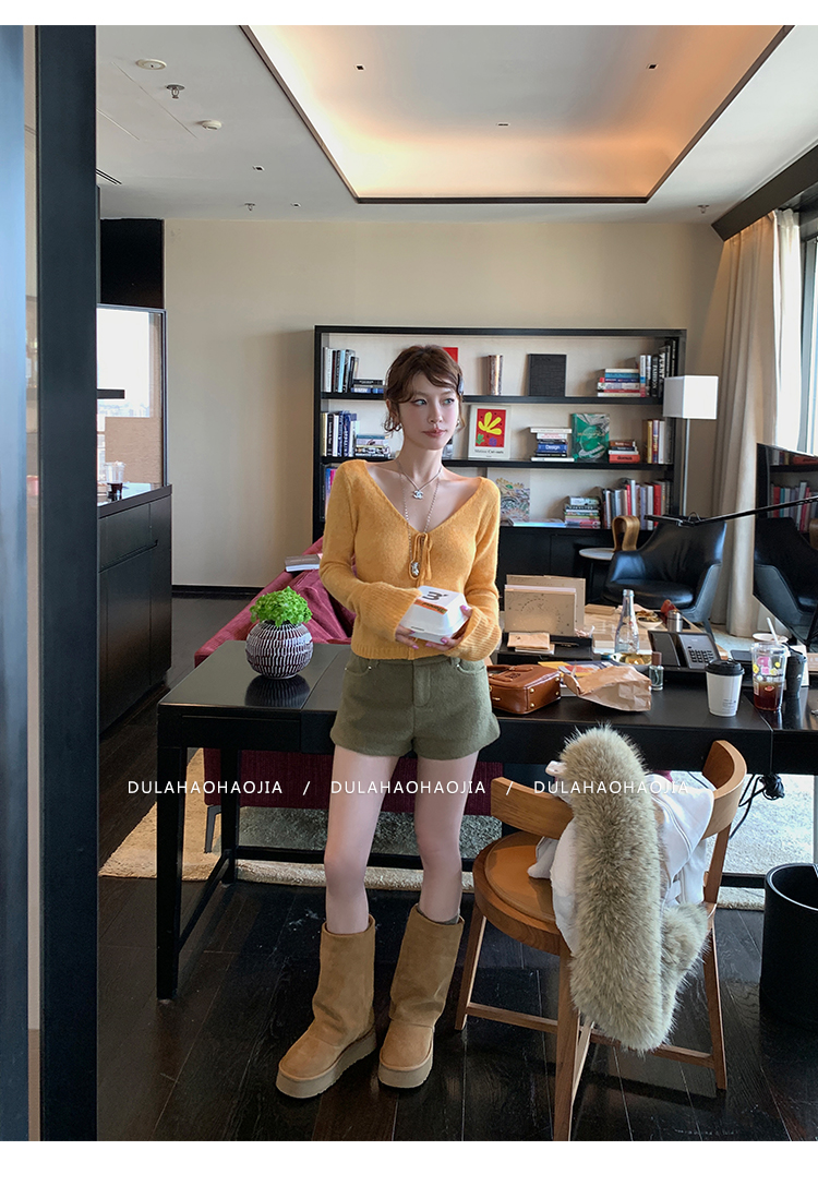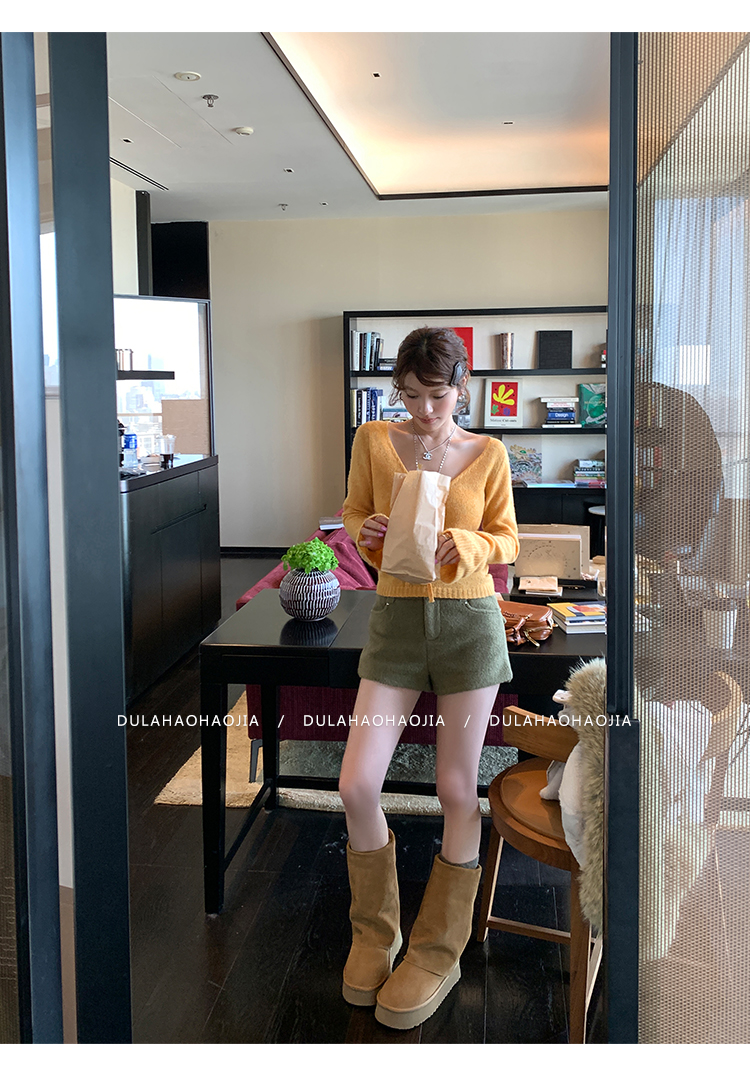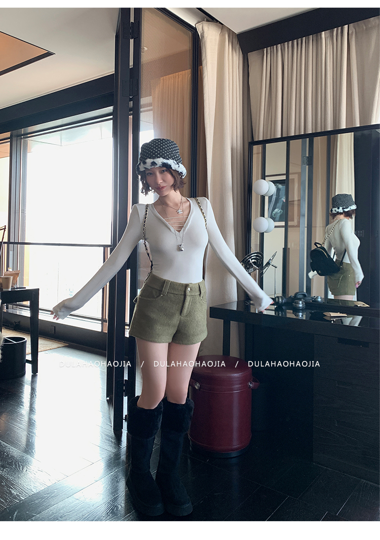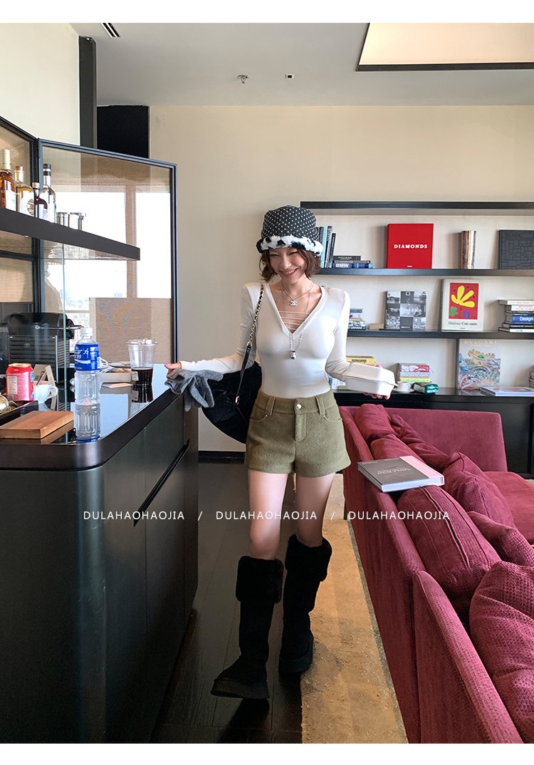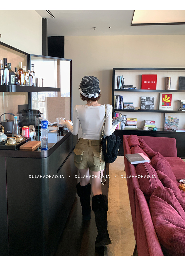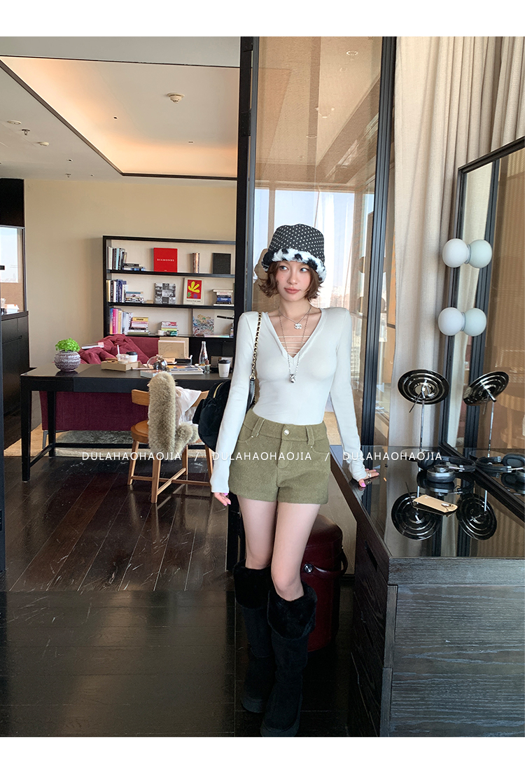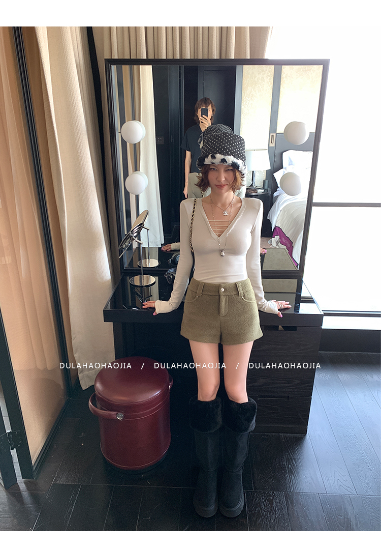 DULA High Waist Long Leg Fleece Short Pants