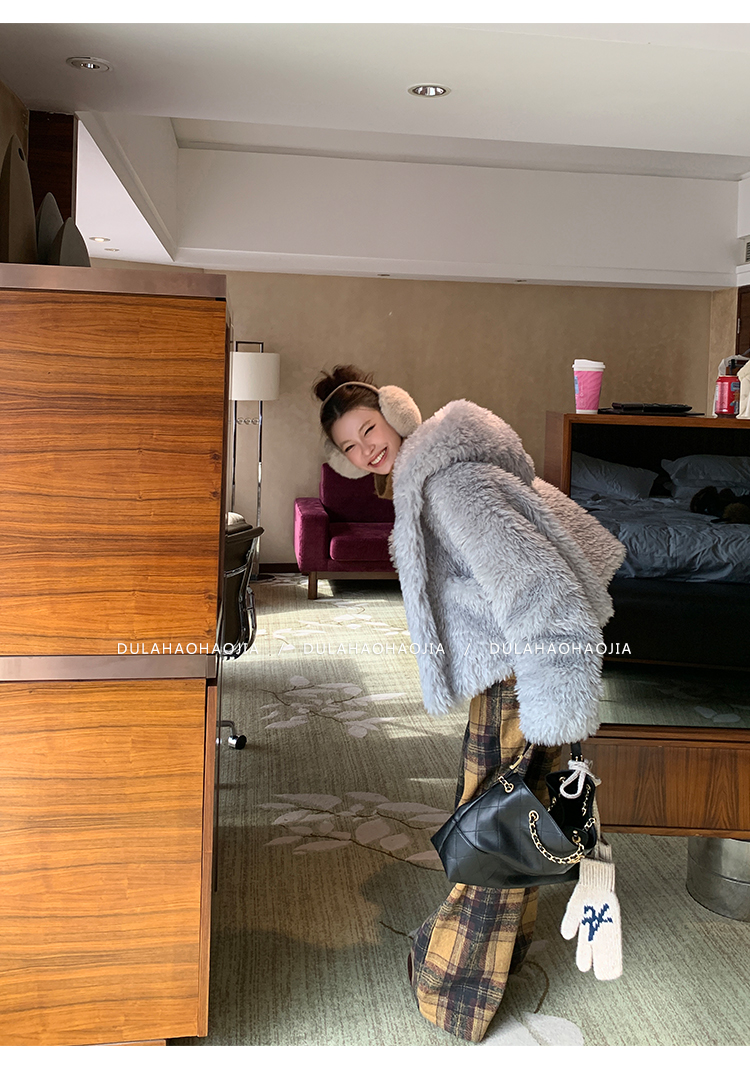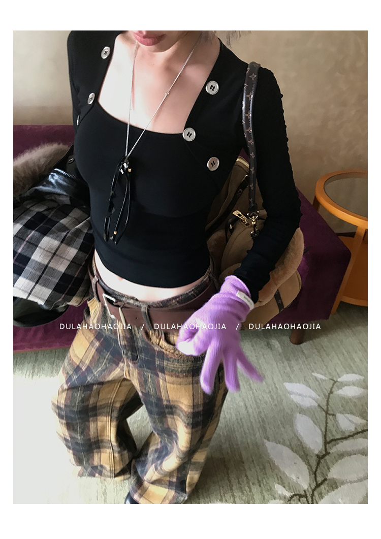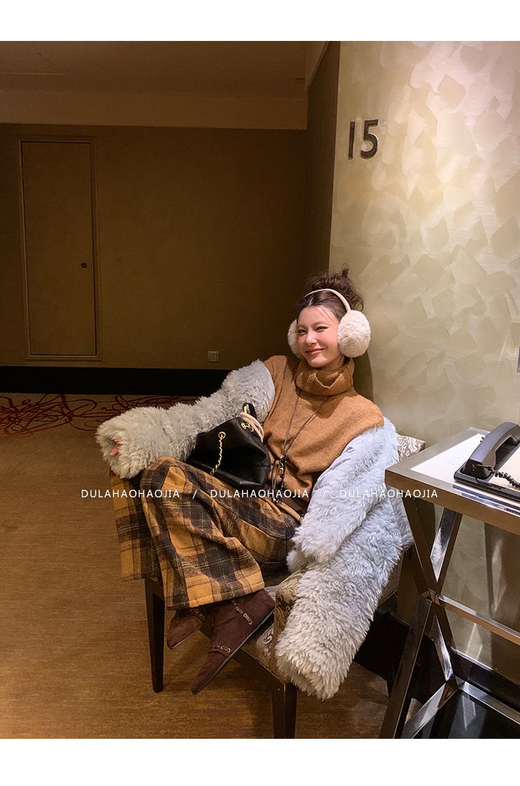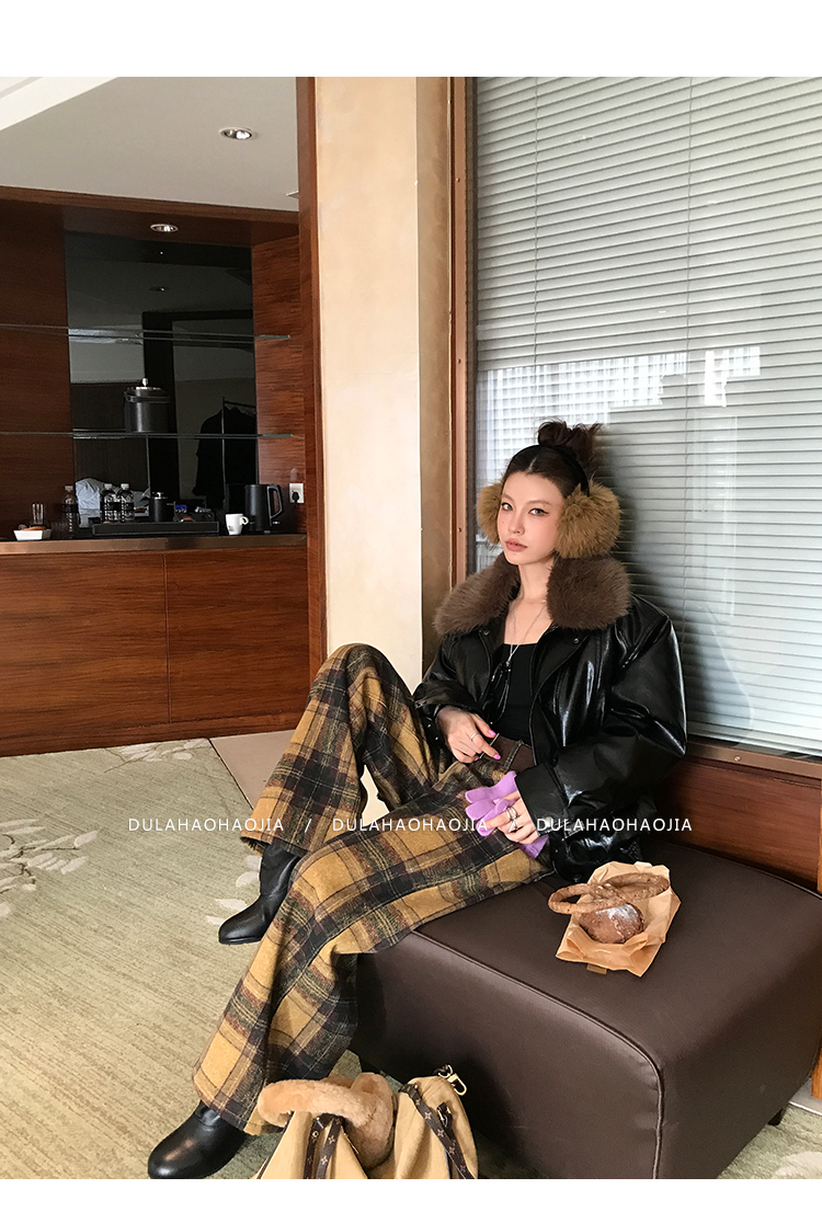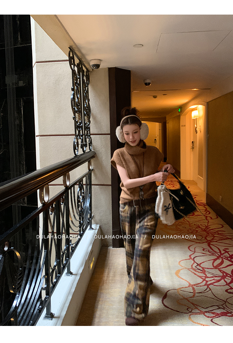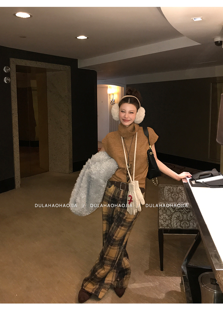 DULA Lazy Relaxation Fleece Yellow Checked Wide Leg Jeans