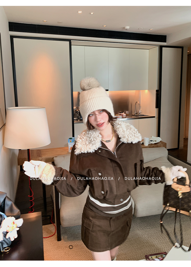 DULA Moscow Dawn Collar Cowboy Short Cotton Jacket + Skirt Set