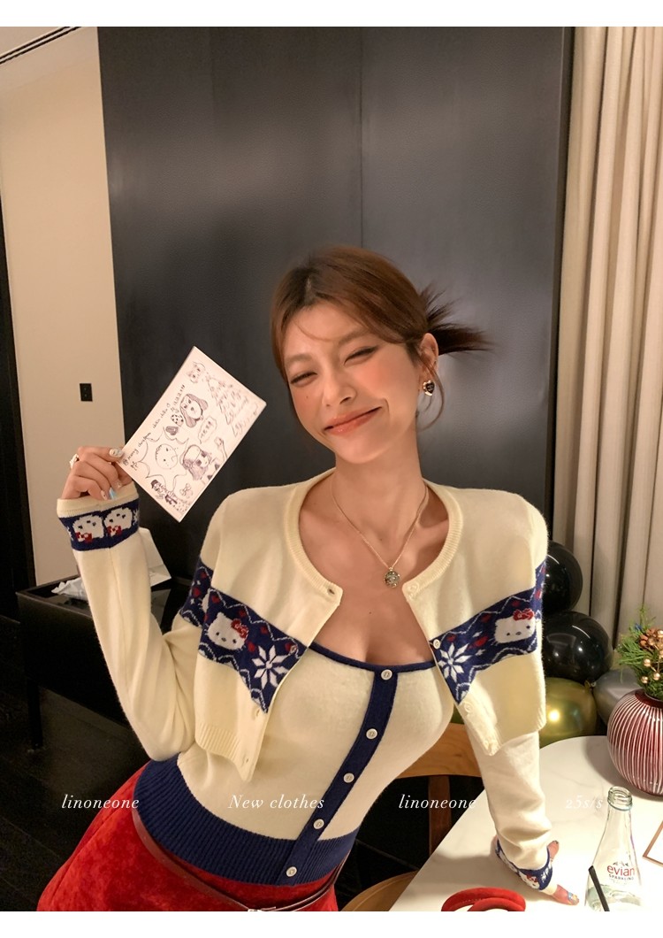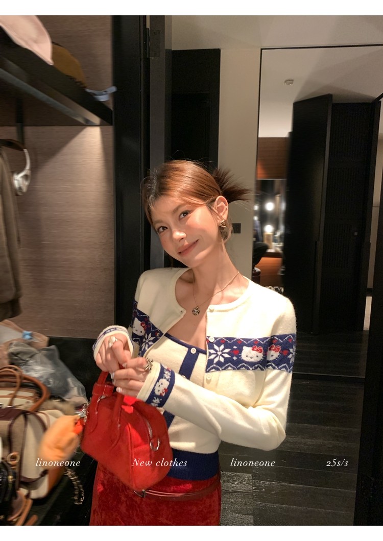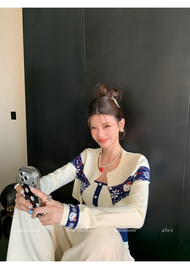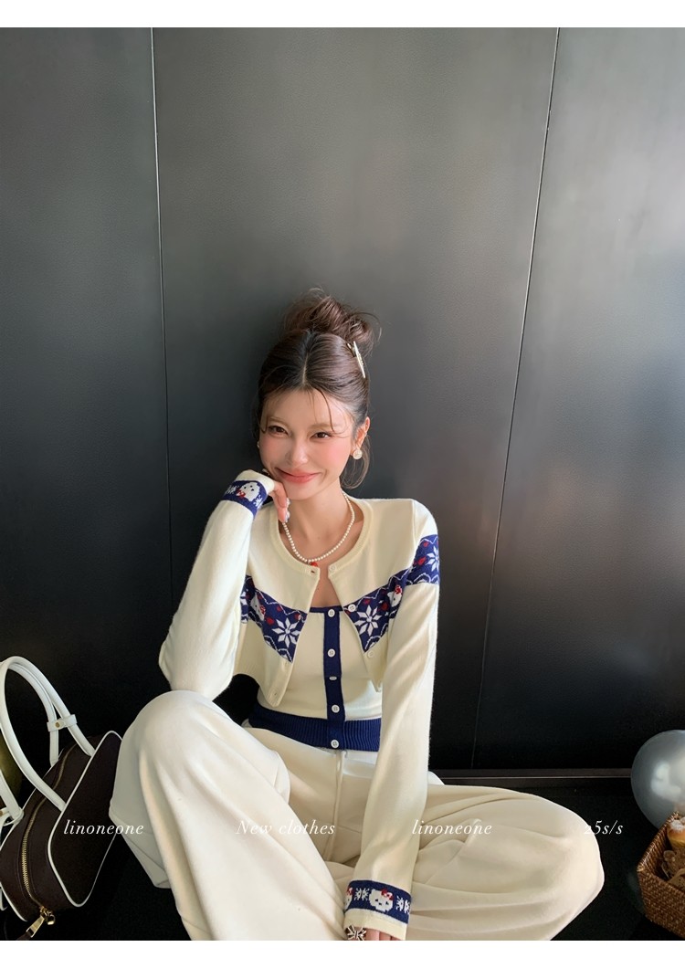 LIN Cute Beige Match Sweater and Cardigan Pants SetNEW