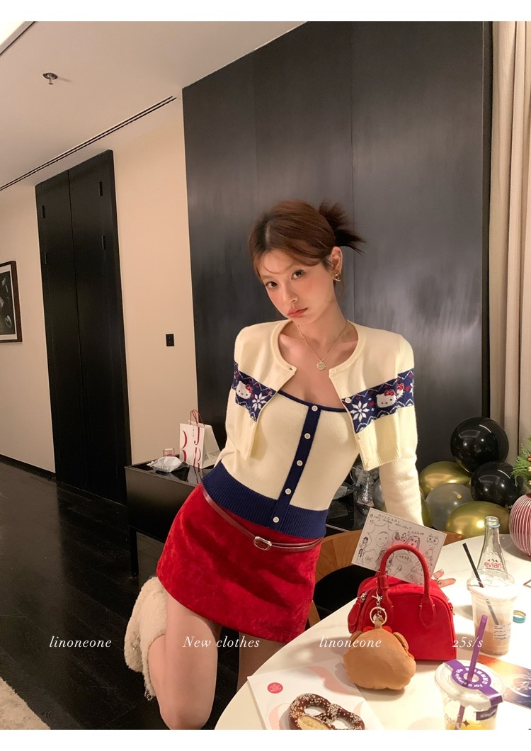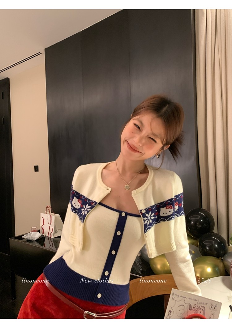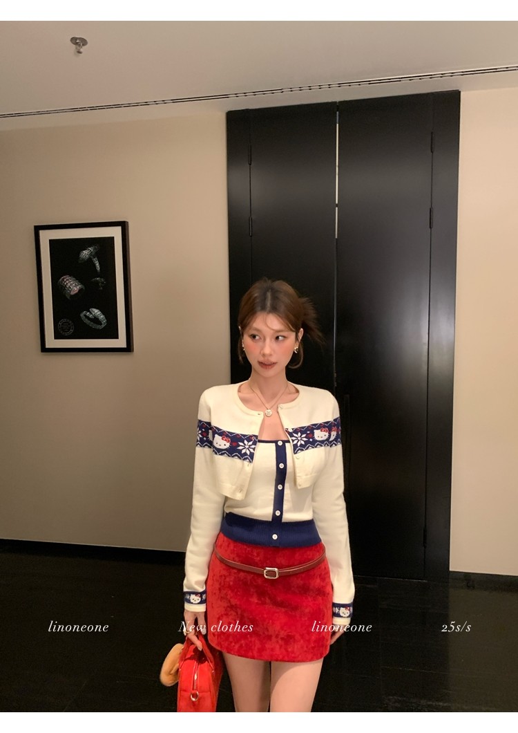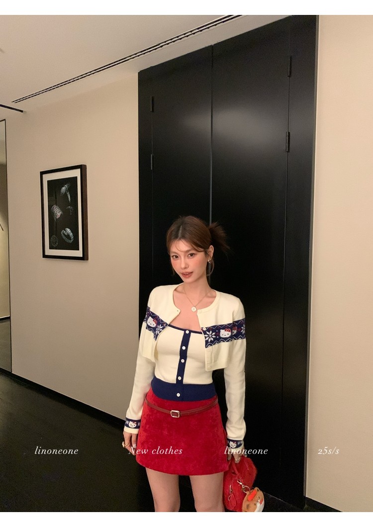 LIN Cute Beige Match Sweater and Cardigan Pants SetNEW